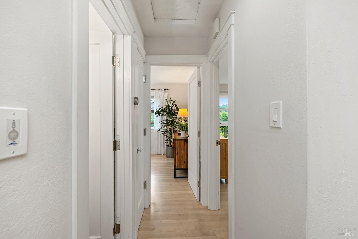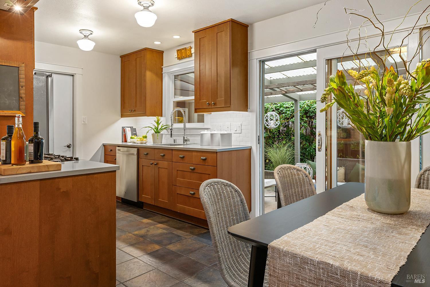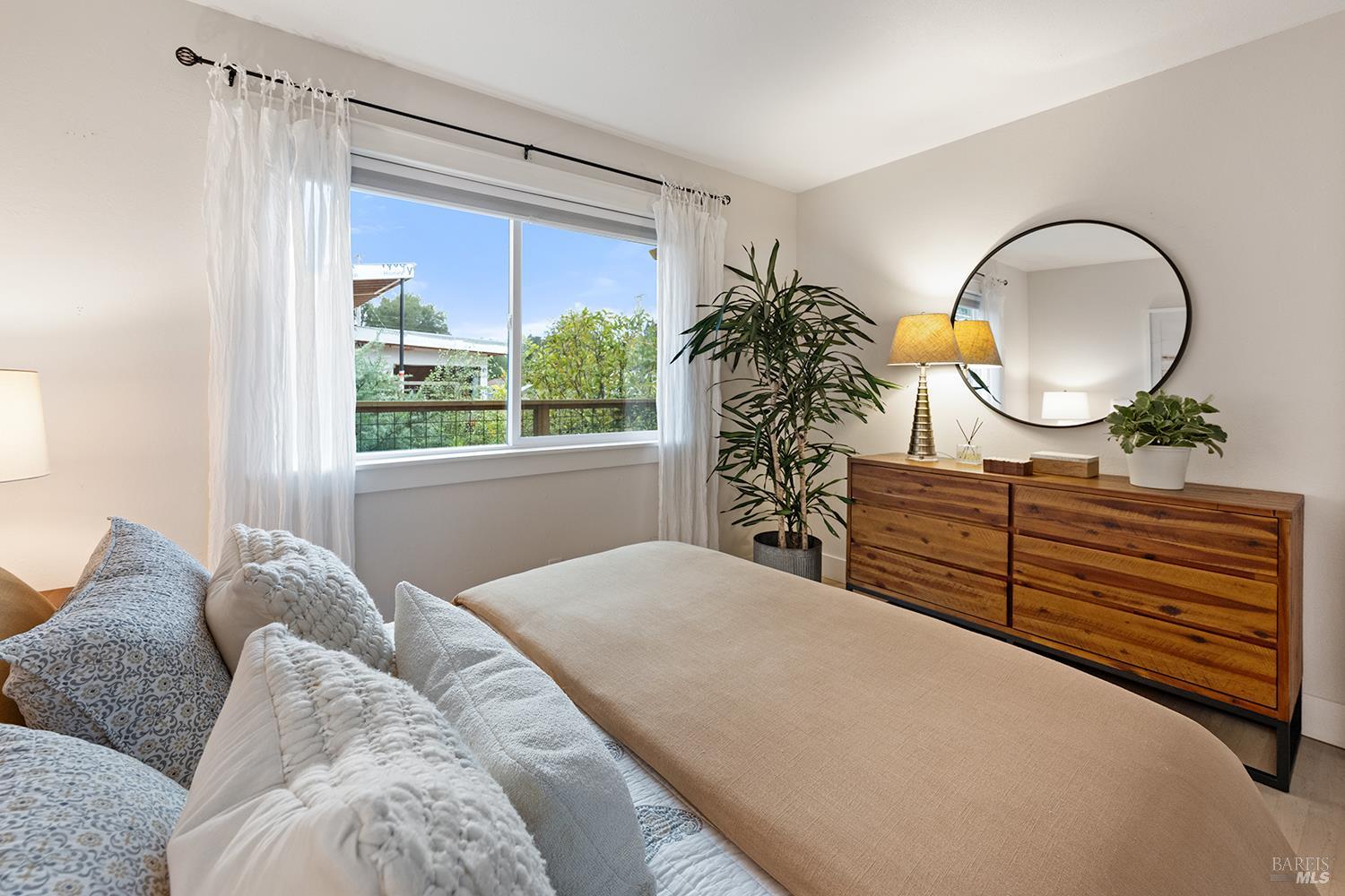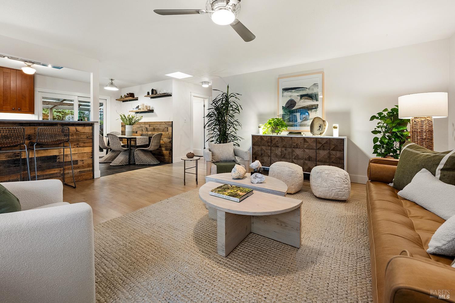 Sebastopol city living at its very best: quiet cul-de-sac location with Joe Rodota trail access just a skip down the street; stroll to restaurants, shopping, entertainment. A sweet sense of privacy and serenity in typical city density brings added value. An efficient 2 BR/1BA home has tasteful updates, a large living room, useful garage space, outdoor entertaining area, fully fenced landscaped. There's magic in the elegant terraced garden tucked like a secret at the end of the home. A sublime space for quiet contemplation.