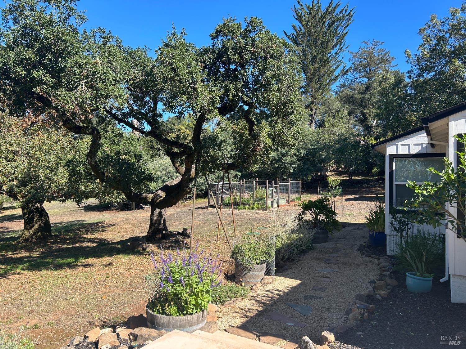 This stunning Montecito Heights mid century home is located on a private, gated, 1.6 acre parcel. This single level home is perfectly situated on the hilltop, set among majestic oaks with beautiful views and complete privacy. Formal entryway, large living room with open beam ceilings, formal dining room with custom colors and a full bar/butler's pantry off the kitchen with custom cabinetry and wine fridge. The gourmet kitchen offers top of the line stainless appliances, quartz countertops, ample cabinetry and full pantry. The spacious primary bedroom has new carpet, tons of windows to let in the views of the outdoors and an oversized closet with built in shelving and drawers. Another large bedroom full of light offers built in cabinetry and desk space, as well as a sunny window seat. The third bedroom is en suite and could also serve as an office. Long hallways, windows everywhere and a full laundry room with washer/dryer included add to the many amenities this home has to offer. Outdoors you will find a Zen courtyard with drought resistant landscaping and a peaceful water fountain. Additionally there is a small pond with another flowing water fountain with a seating area and flower garden. A large patio overlooks the backyard and is perfect for watching sunsets.