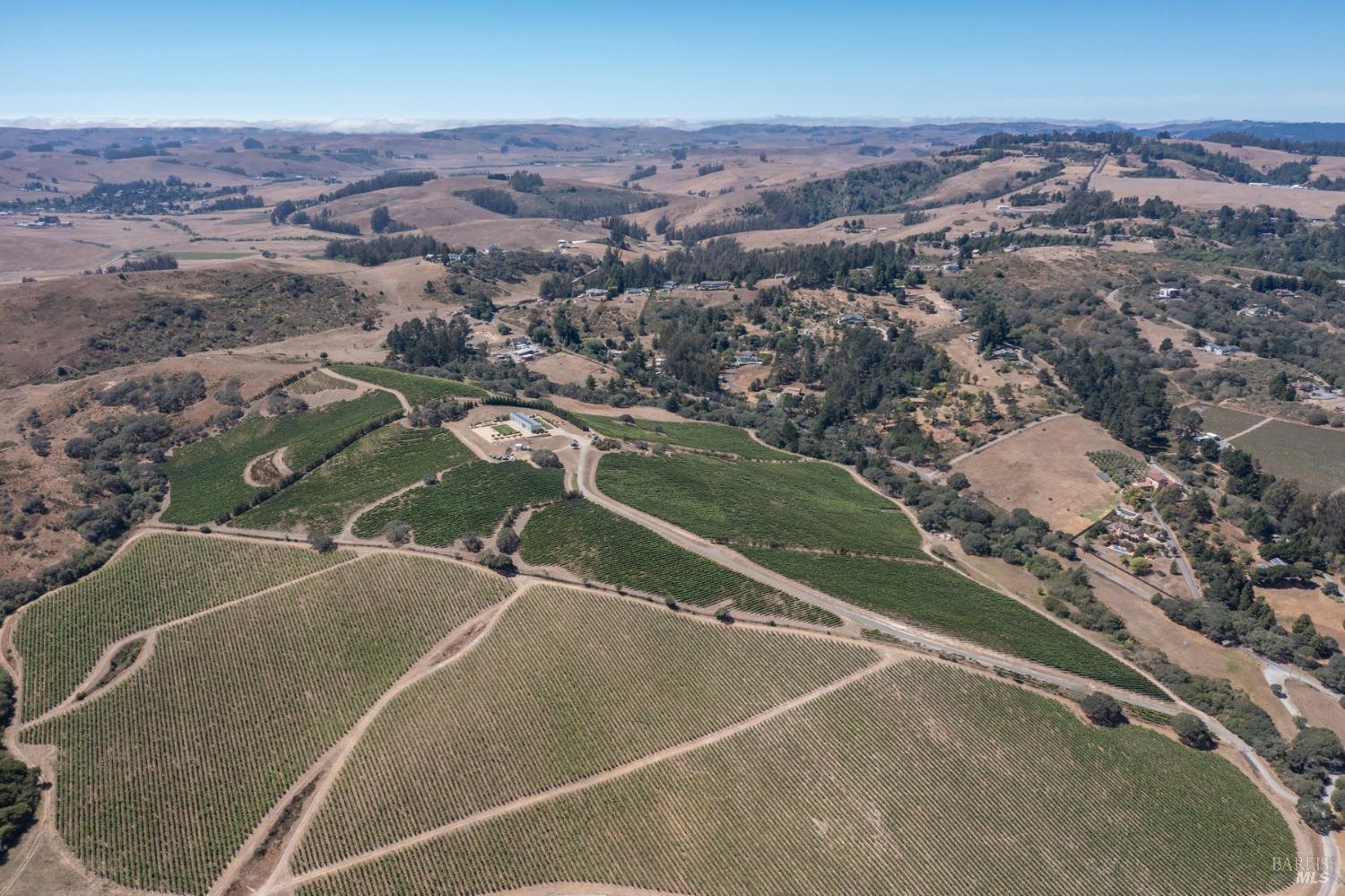 This offering represents the highest quality and best value of any Pinot & Chardonnay vineyard in the Sonoma Coast/Russian River Valley AVAs on the market today! Located 1 hour north of San Francisco on a ridge top in the hills southwest of Sebastopol lies a meticulously developed vineyard designed with a single goal in mind - to grow the most exceptional fruit for the most extraordinary bottlings. Based on the caliber of winemakers and the scores coming from the vineyard, it's clear they have succeeded - the 5 Wells Vineyard is a vineyard unlike any other in West County. This 72-acre site features 32 acres of world-class Pinot Noir and Chardonnay, with the vineyard cascading down a hillside at nearly 300 feet of elevation. Morning fog and cooling evening breezes balance the warm sun, creating a cool-climate environment that preserves acidity and defines the wines' vibrant energy and refined structure. Clonal selections harmonize with the terroir to produce fruit with concentrated flavors, crisp acidity, and a distinct expression of place. Each block's microclimate allows for a carefully timed harvest, ensuring complexity and balance. Complementing the vineyard is an architecturally significant modern industrial estate.