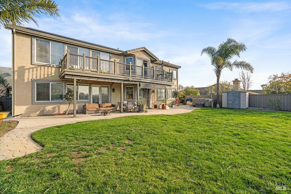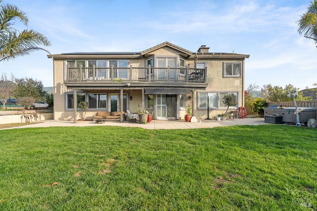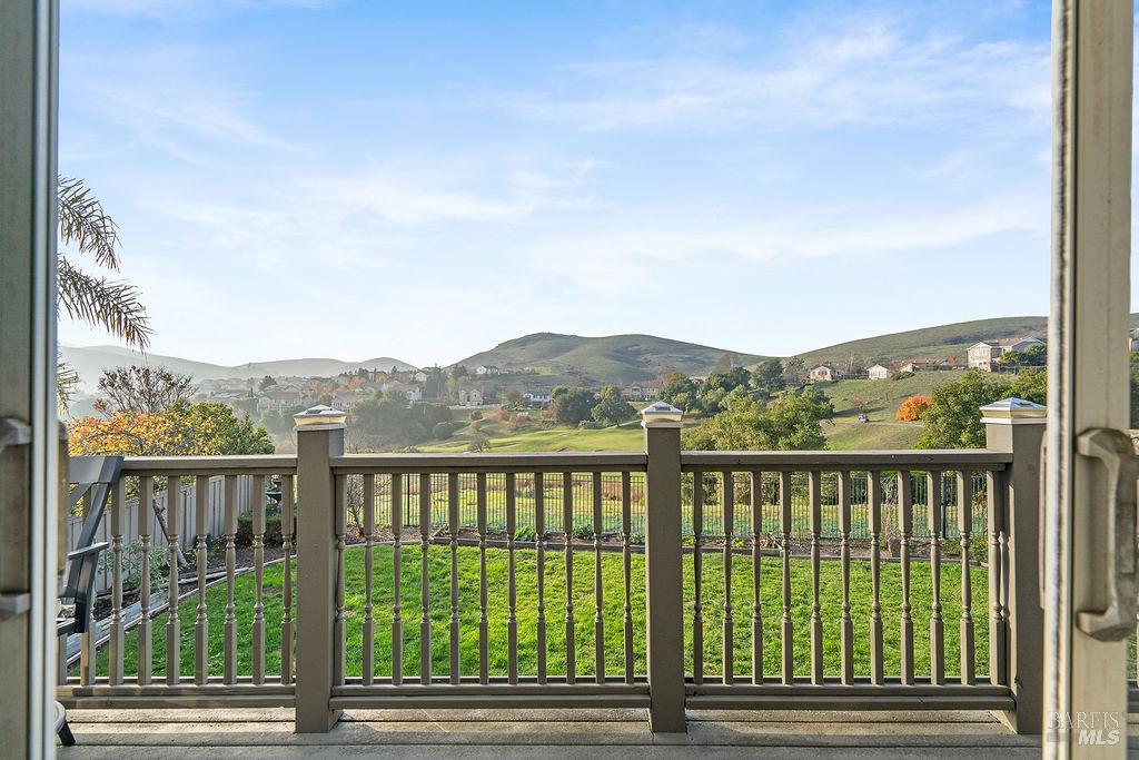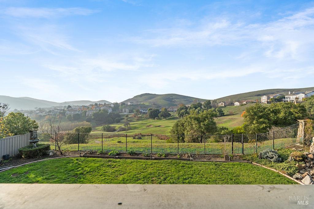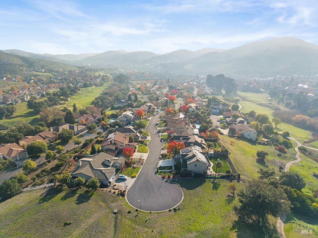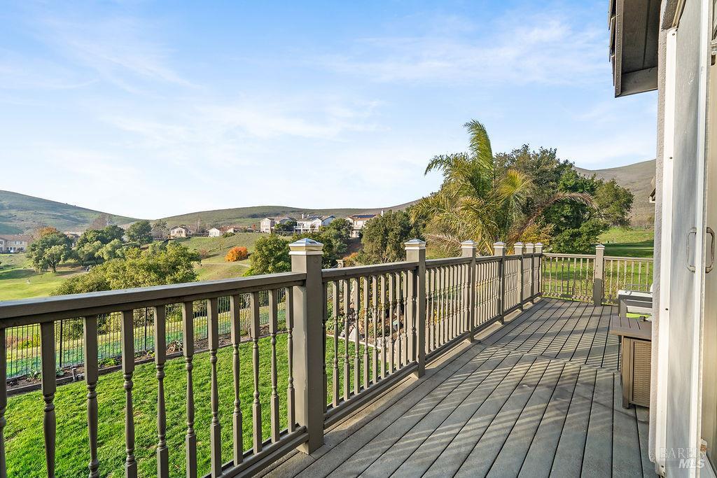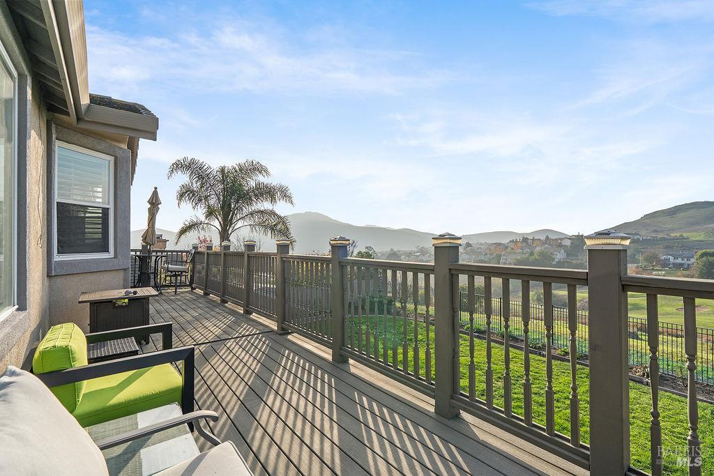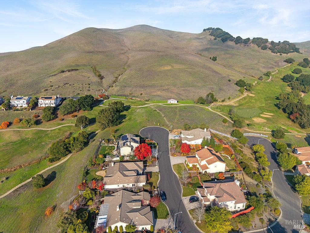Welcome to resort-style living in the desirable Hiddenbrooke community! Tucked away at the end of a peaceful cul-de-sac, this home overlooks the canyon and offers stunning views of the Arnold Palmer-designed 16th hole and the surrounding natural hillside. This well-designed residence features 3,455 square feet of living space, including three bedrooms plus a versatile multi-purpose room. The kitchen boasts custom cabinetry, stone countertops, plantation shutters, stainless steel appliances, a bar-top counter, and a breakfast area with easy access to the outdoors. A separate formal dining room is highlighted by custom molding, French doors, and plantation shutters. Expansive rear windows fill the spacious living room with natural light and picturesque views. French doors with plantation shutters open to the outdoor patio, while the adjacent family room offers a cozy wood-burning fireplace with a custom mantel and built-in shelving. A full bath and a large laundry room with cabinets and a sink complete the main level. Upstairs, you'll find the generous multi-purpose room with built-in cabinetsideal for a home office or game room. The primary en-suite retreat includes a fireplace, soaking tub, glass-enclosed shower, dual vanities, and dual closets. Step outside onto your private deck to enjoy your morning coffee while taking in views of golfers and local wildlife. Outdoor living is equally inviting with nicely landscaped front and back yards, perfect for relaxing in the spa or grilling for guests. Additional features include a three-car garage with epoxy floors, finished walls, and built-in cabinets, leased solar, a water filtration system, and a tankless water heater. Enjoy Hiddenbrooke's golf course walking trails, The Mat Yoga Studio, J&O's specialty grocery store, and sweeping views of the surrounding hillsthis home truly offers the best of Hiddenbrooke living.