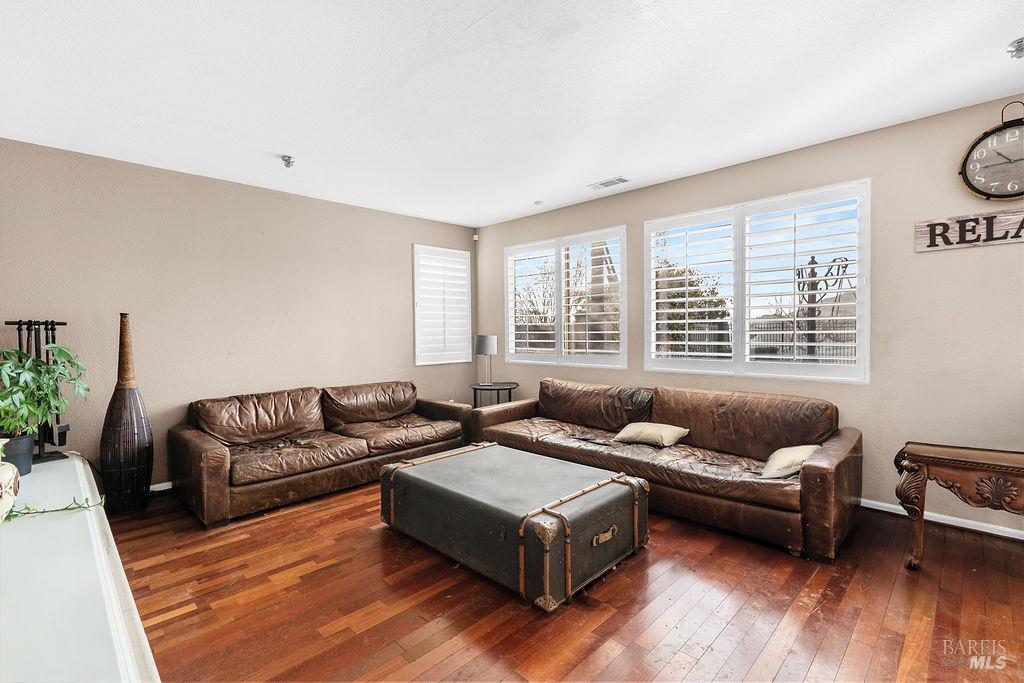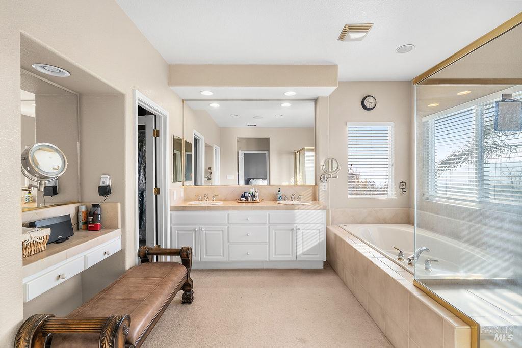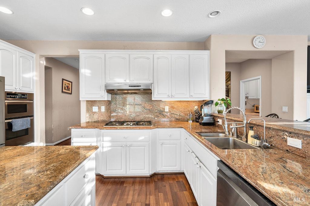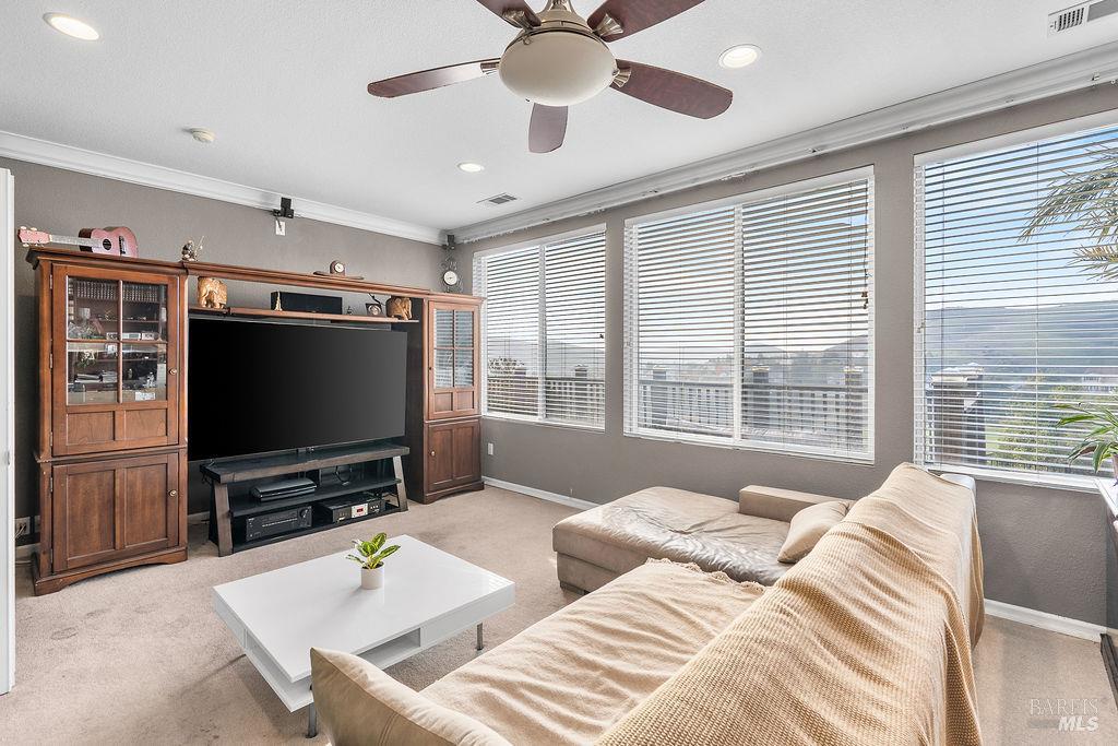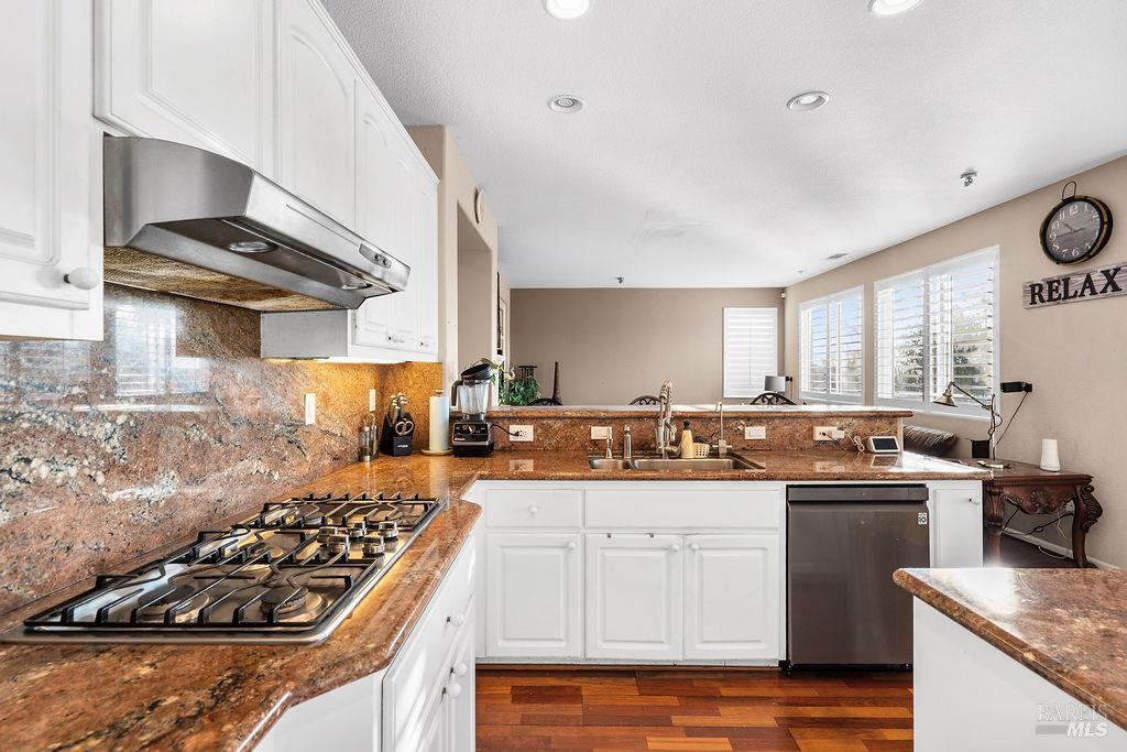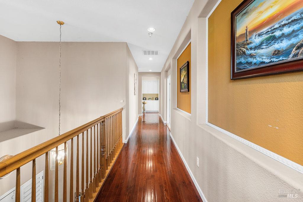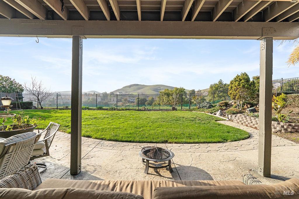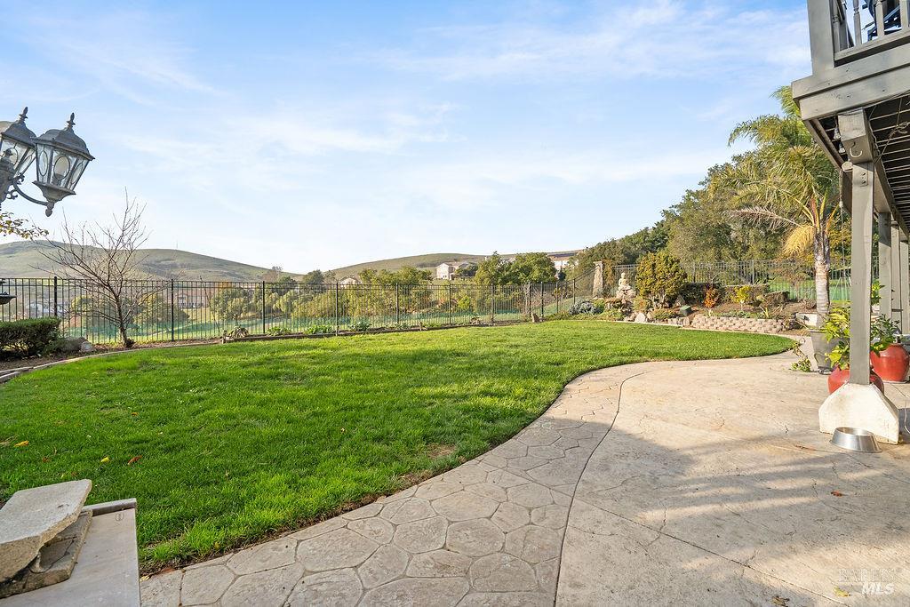 Welcome to resort-style living in the desirable Hiddenbrooke community! Tucked away at the end of a peaceful cul-de-sac, this home overlooks the canyon and offers stunning views of the Arnold Palmer-designed 16th hole and the surrounding natural hillside. This well-designed residence features 3,455 square feet of living space, including three bedrooms plus a versatile multi-purpose room. The kitchen boasts custom cabinetry, stone countertops, plantation shutters, stainless steel appliances, a bar-top counter, and a breakfast area with easy access to the outdoors. A separate formal dining room is highlighted by custom molding, French doors, and plantation shutters. Expansive rear windows fill the spacious living room with natural light and picturesque views. French doors with plantation shutters open to the outdoor patio, while the adjacent family room offers a cozy wood-burning fireplace with a custom mantel and built-in shelving. A full bath and a large laundry room with cabinets and a sink complete the main level. Upstairs, you'll find the generous multi-purpose room with built-in cabinetsideal for a home office or game room. The primary en-suite retreat includes a fireplace, soaking tub, glass-enclosed shower, dual vanities, and dual closets. Step outside onto your private deck to enjoy your morning coffee while taking in views of golfers and local wildlife. Outdoor living is equally inviting with nicely landscaped front and back yards, perfect for relaxing in the spa or grilling for guests. Additional features include a three-car garage with epoxy floors, finished walls, and built-in cabinets, leased solar, a water filtration system, and a tankless water heater. Enjoy Hiddenbrooke's golf course walking trails, The Mat Yoga Studio, J&O's specialty grocery store, and sweeping views of the surrounding hillsthis home truly offers the best of Hiddenbrooke living.