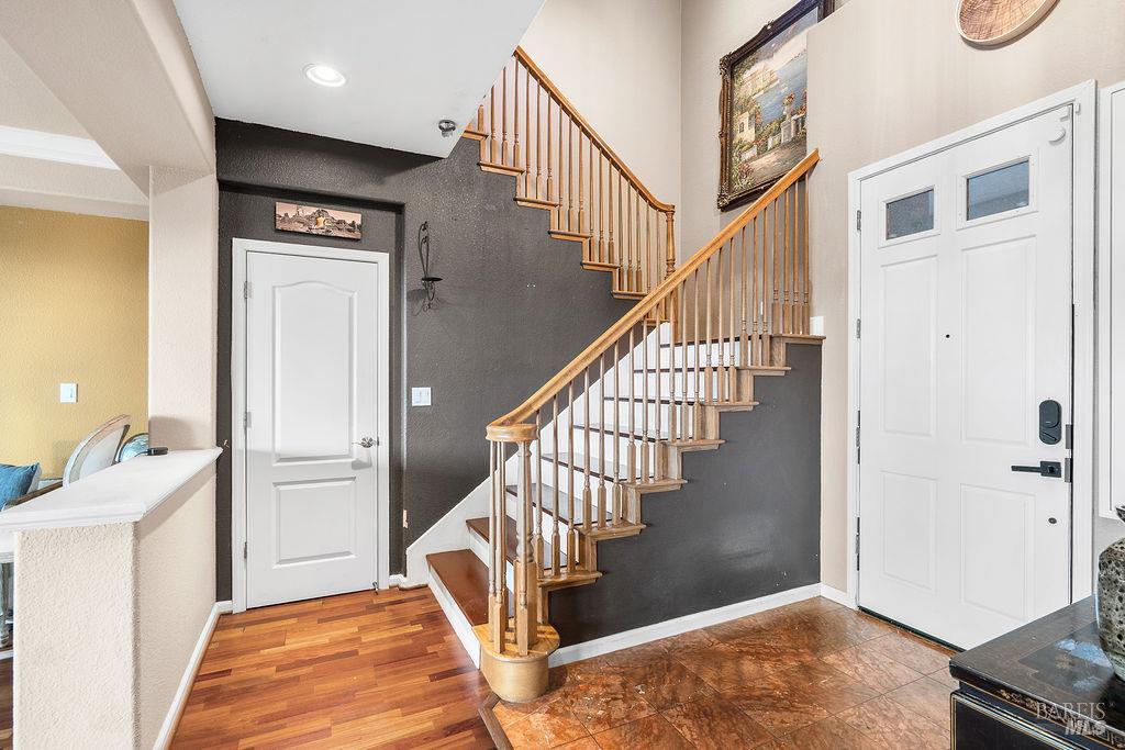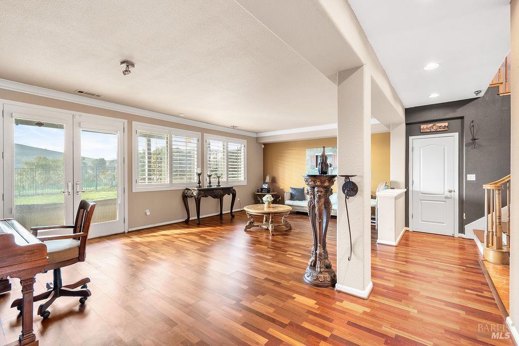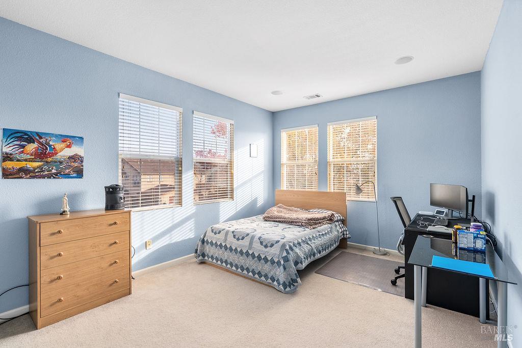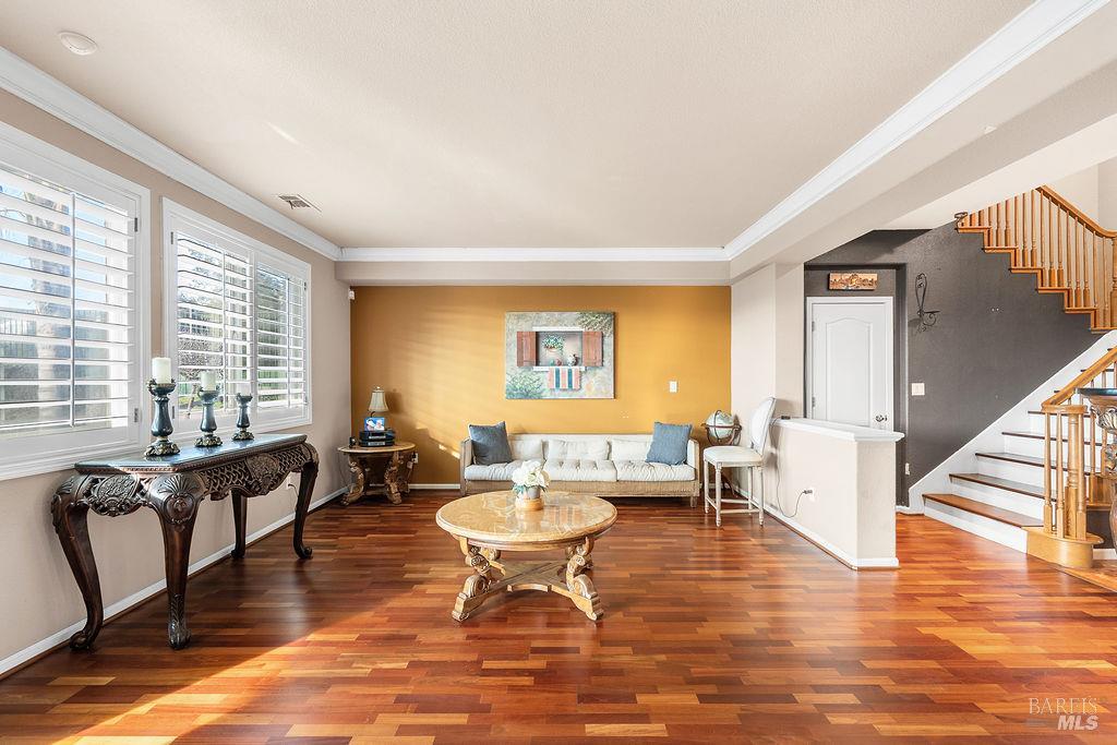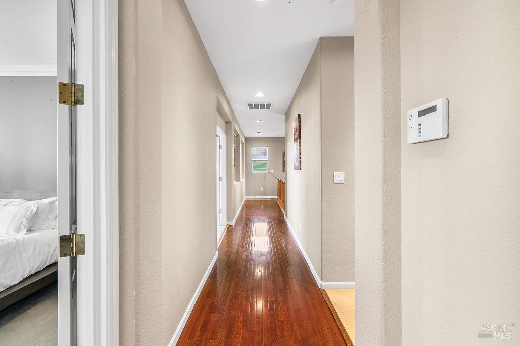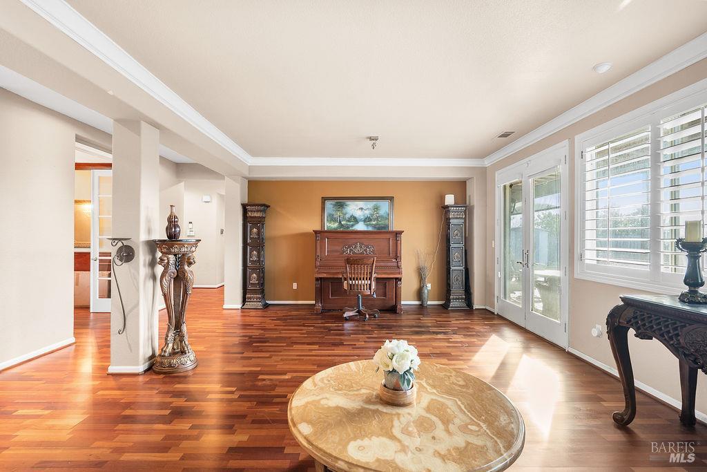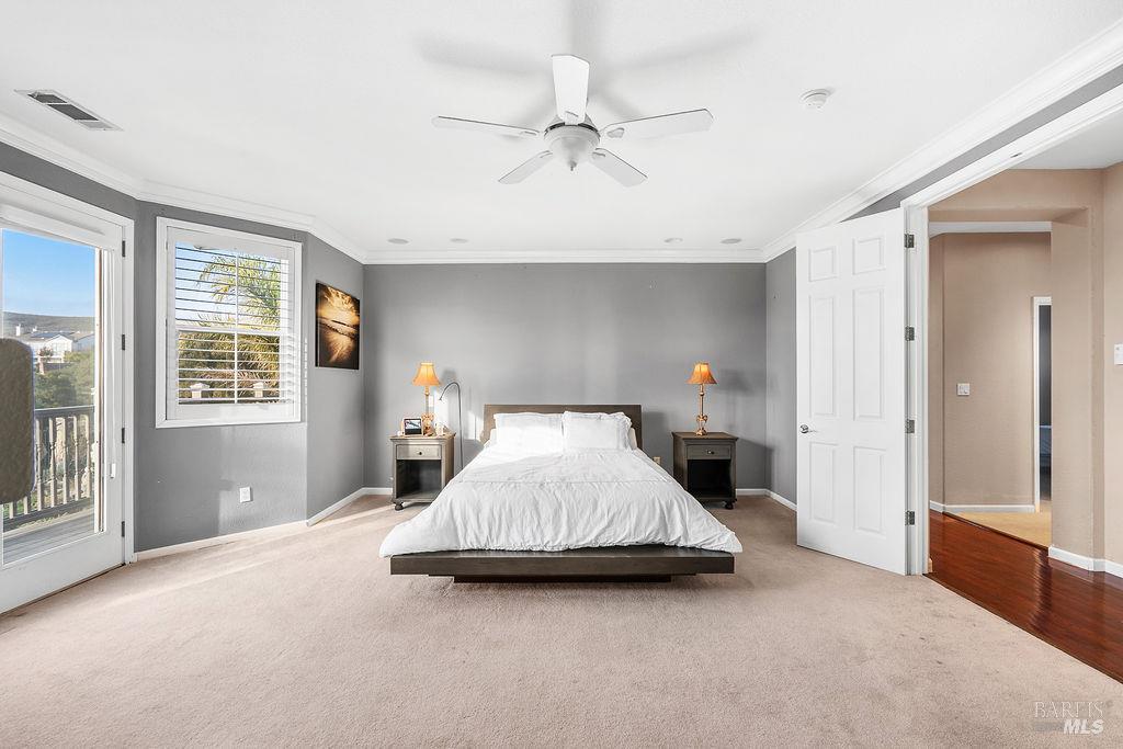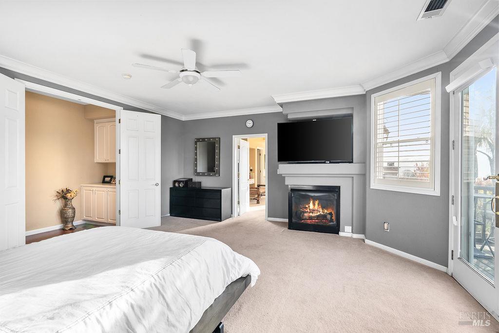 Welcome to resort-style living in the desirable Hiddenbrooke community! Tucked away at the end of a peaceful cul-de-sac, this home overlooks the canyon and offers stunning views of the Arnold Palmer-designed 16th hole and the surrounding natural hillside. This well-designed residence features 3,455 square feet of living space, including three bedrooms plus a versatile multi-purpose room. The kitchen boasts custom cabinetry, stone countertops, plantation shutters, stainless steel appliances, a bar-top counter, and a breakfast area with easy access to the outdoors. A separate formal dining room is highlighted by custom molding, French doors, and plantation shutters. Expansive rear windows fill the spacious living room with natural light and picturesque views. French doors with plantation shutters open to the outdoor patio, while the adjacent family room offers a cozy wood-burning fireplace with a custom mantel and built-in shelving. A full bath and a large laundry room with cabinets and a sink complete the main level. Upstairs, you'll find the generous multi-purpose room with built-in cabinetsideal for a home office or game room. The primary en-suite retreat includes a fireplace, soaking tub, glass-enclosed shower, dual vanities, and dual closets. Step outside onto your private deck to enjoy your morning coffee while taking in views of golfers and local wildlife. Outdoor living is equally inviting with nicely landscaped front and back yards, perfect for relaxing in the spa or grilling for guests. Additional features include a three-car garage with epoxy floors, finished walls, and built-in cabinets, leased solar, a water filtration system, and a tankless water heater. Enjoy Hiddenbrooke's golf course walking trails, The Mat Yoga Studio, J&O's specialty grocery store, and sweeping views of the surrounding hillsthis home truly offers the best of Hiddenbrooke living.