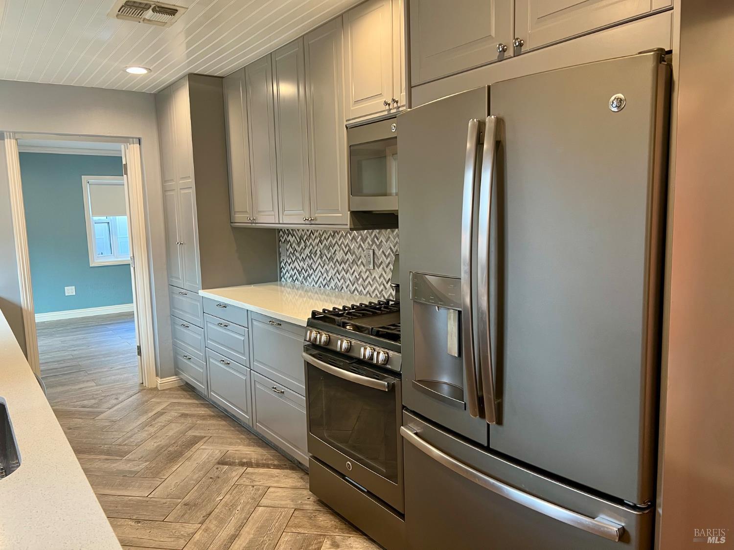 Step into this inviting four-bedroom, two-bath home featuring a grand living room filled with natural light from expansive windows, complemented by wood flooring and tasteful trim details. The living room showcases built-in cabinetry with shelving and an insert fireplace, creating a cozy yet elegant gathering space. The beautifully remodeled kitchen offers stylish gray cabinetry, abundant storage, stainless steel appliances, and a refrigerator that conveys. Enjoy outdoor living in the private backyard with a deck and no rear neighbors-- ideal for relaxing or entertaining. A comfortable home full of charm and functionality.