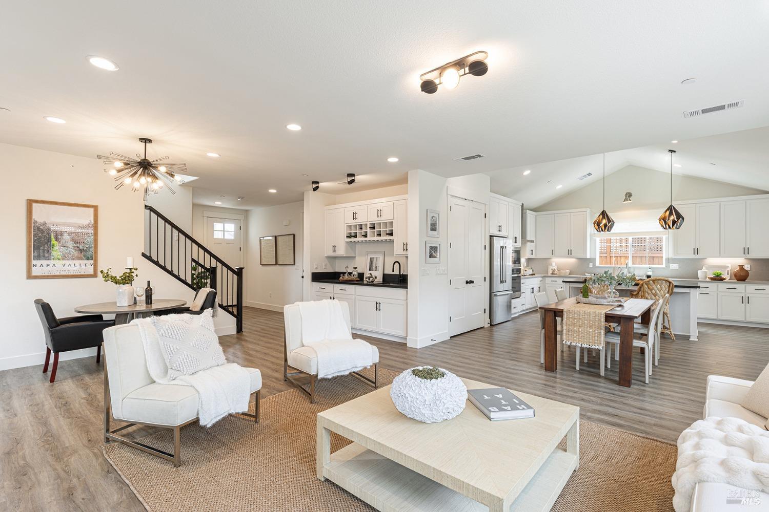 Contemporary and beautiful! Recently constructed! Great North Napa location. Recent build completed in only October 2022 with a flexible floor plan. This well-finished home offers open spaces, a sizeable primary bedroom and an attached but separate in-law unit with interior and private exterior access for guests, a home office or for rent. Bright and airy throughout, high ceilings, modern light fixtures, and wet bar. Custom backyard with multiple zones for barbequing under a pergola, covered dining and a lovely stone seating area for relaxing. Low maintenance California native plants, fruit trees, and natural boulder water fountain create calm and relaxation. Owned solar reduces electricity costs. Just blocks to the amazing Alston Park, locals' favorite Il Posto Trattoria and CA-29. Minutes to Yountville, famed Napa Valley wineries, north Napa dining & shopping, and downtown Napa. Very low maintenance home in an ideal location! Sellers looked to retire in this house but had to move to cross country. Don't hesitate to live in a comfortable house that's in a friendly neighborhood.
