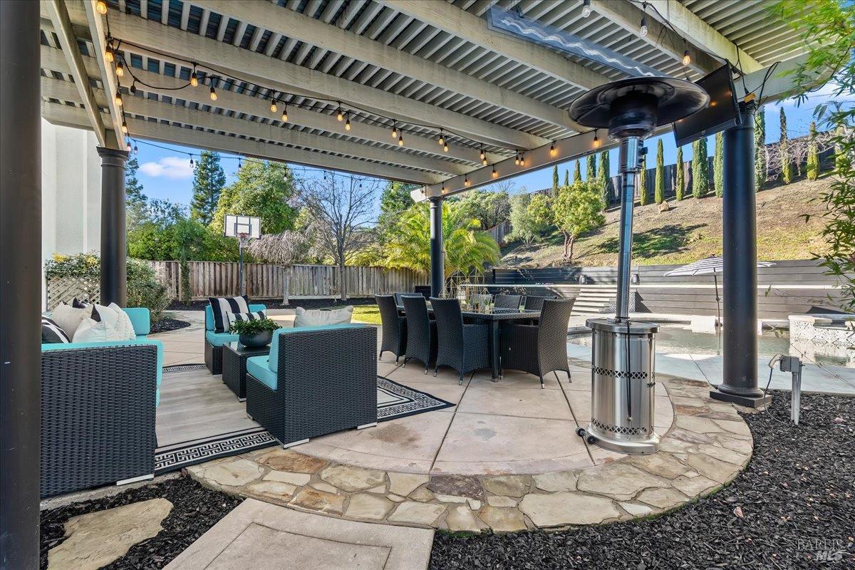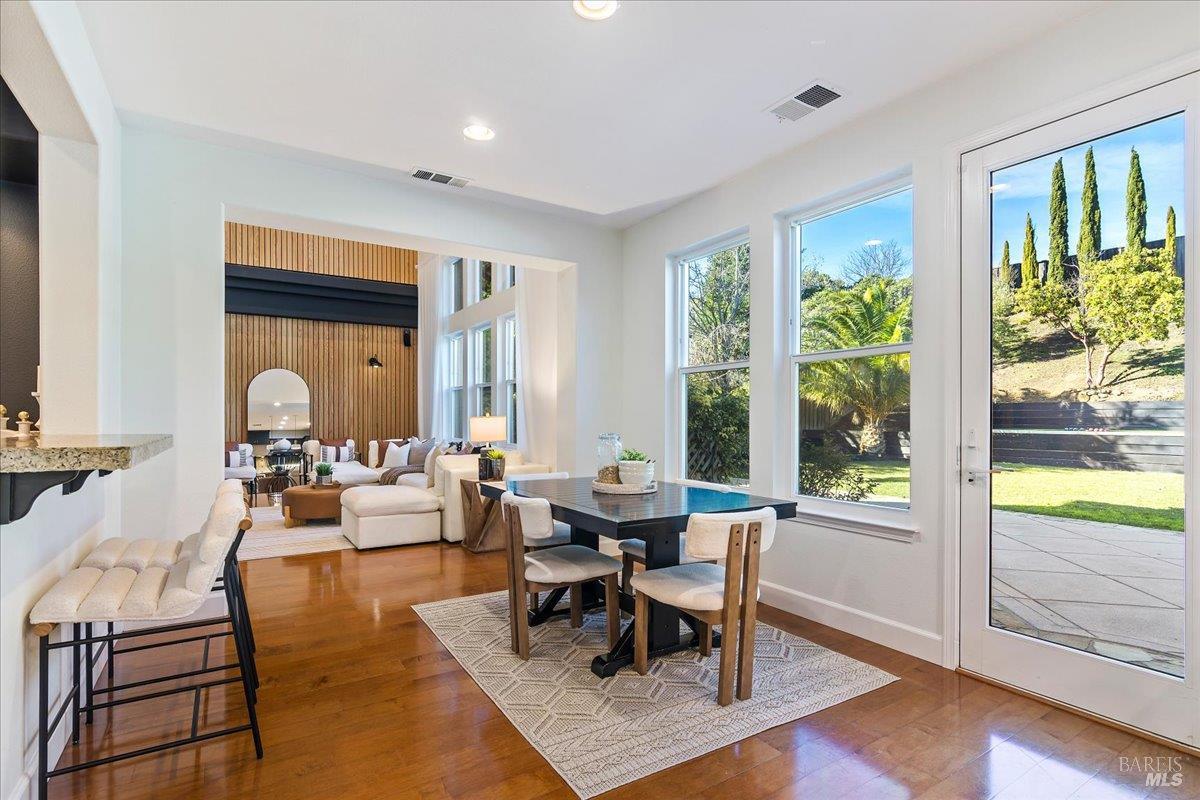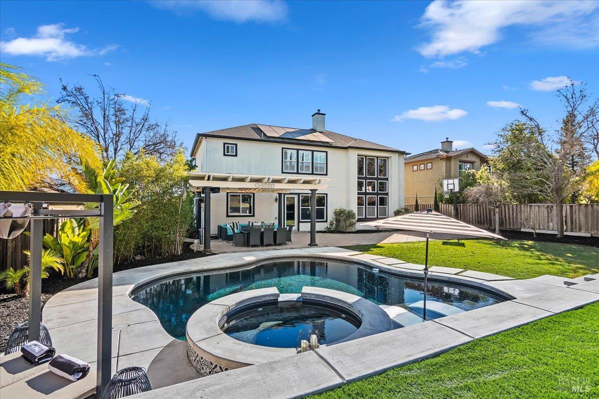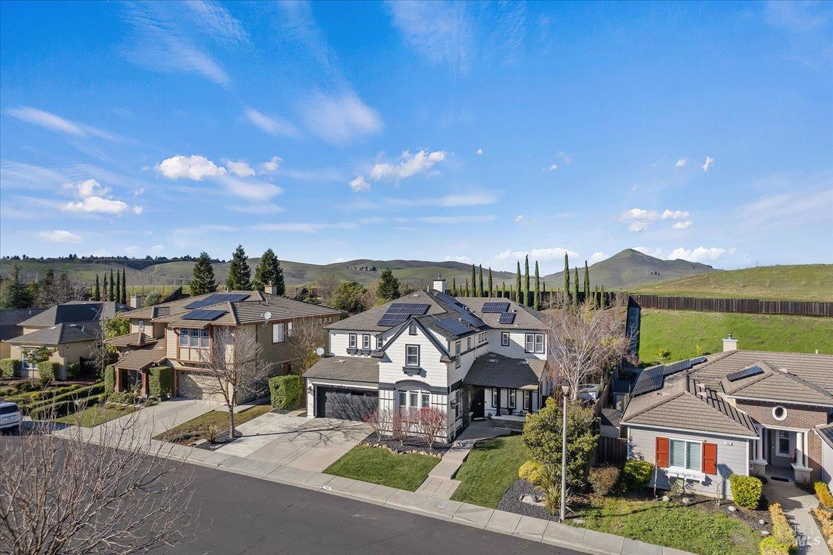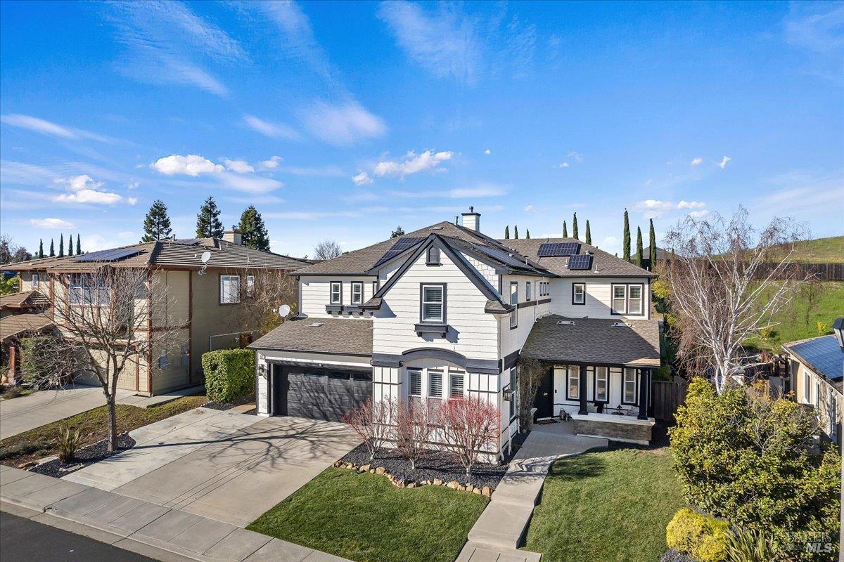 Step into a world of modern elegance with this remarkable 3,508 sq. ft. residence, perfectly curated for those who love to entertain and live boldly. Every detail speaks to refined taste and contemporary flair. From formal gatherings to casual soires, this home offers versatile living and dining areas designed to impress. A downstairs guest suite ensures comfort for visitors, while the upstairs retreat/media room creates the ultimate space for relaxation or movie nights. The heart of the home boasts a chef-inspired designer kitchen featuring under-cabinet lighting for a sleek ambiance, expansive island for culinary creativity, a 6-burner gas cooktop, double ovens, microwave and a new Samsung smart refrigerator for cutting-edge convenience. Custom design touches elevate your interiors with acoustic fluted wood accents, flocked designer wallpaper, and updated lighting fixtures throughout. A fully enclosed wet bar, strategically placed near the kitchen & family areas, makes entertaining effortless. Step outside to your private paradise spanning a lot size of 12,920 square feet, backing up to open space and Lake Herman to provide abundant privacy and space. This backyard oasis features a 5-year-old newly installed saltwater pool & spa with a spillover water feature and baja ledge, a covered patio for year-round enjoyment, and an upper-level turf area, perfect for Bocce Ball or lounging. Enjoy smart and sustainable living with a fully finished tandem 4-car garage with a 220 EV charger, powered by a paid-off 54-panel solar system from Freedom Forever. Additional highlights include a freshly painted interior, an exterior refresh in 2019, Hunter Douglas shutters & professionally tinted windows, a newer water heater and recessed lighting throughout. This home is more than a residence, it's a statement of style, sustainability, and sophistication. Perfect for the discerning buyer who demands the best in design and functionality.