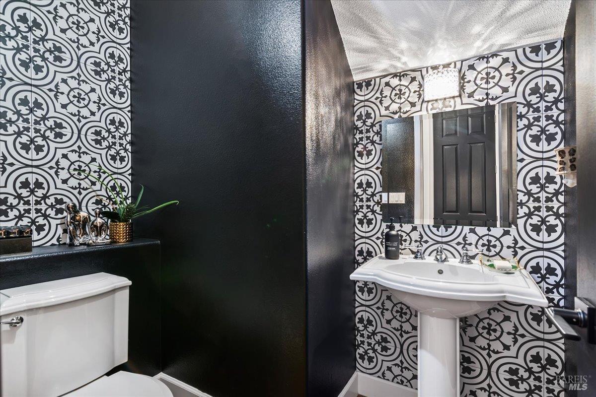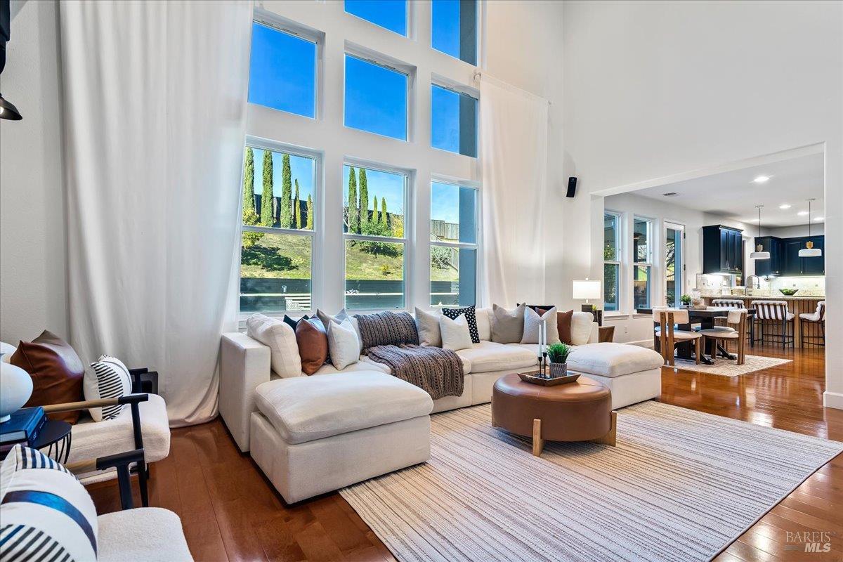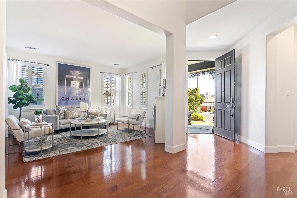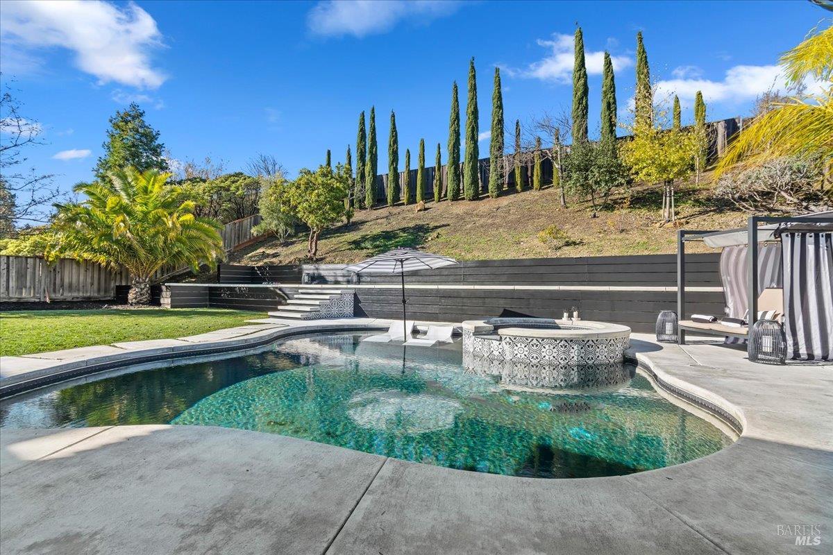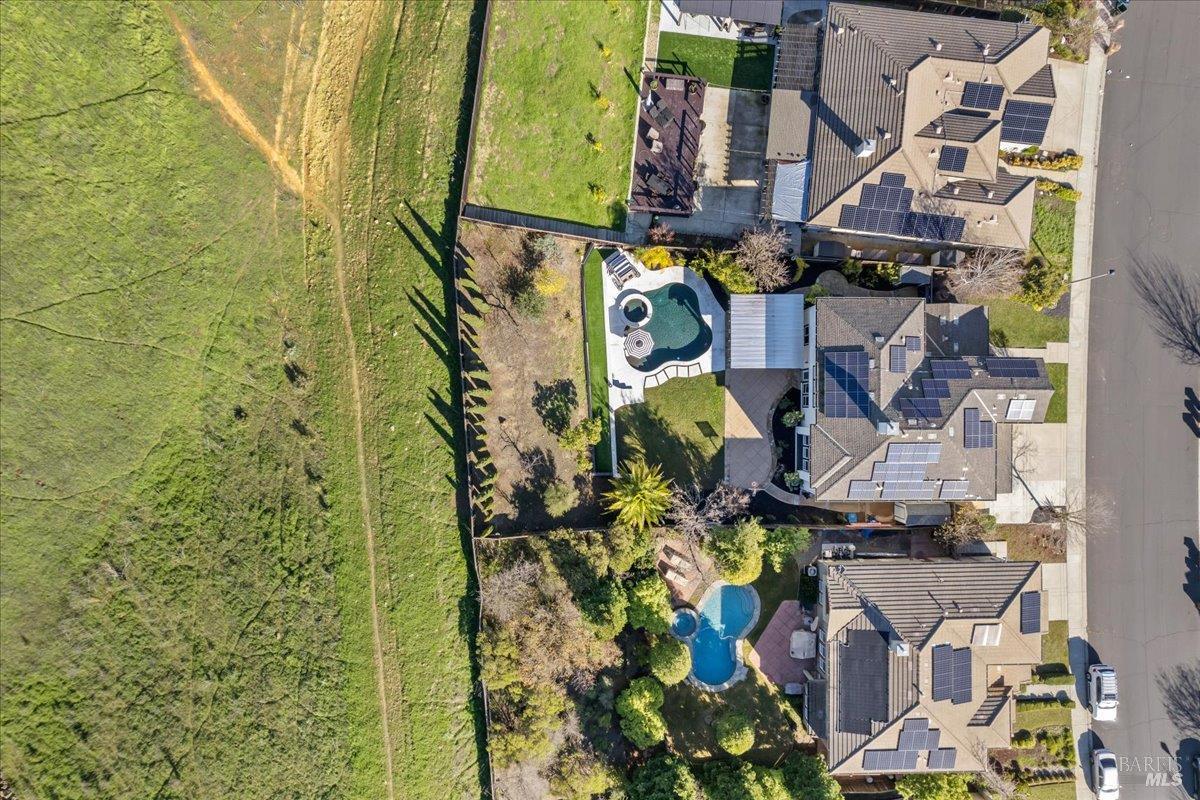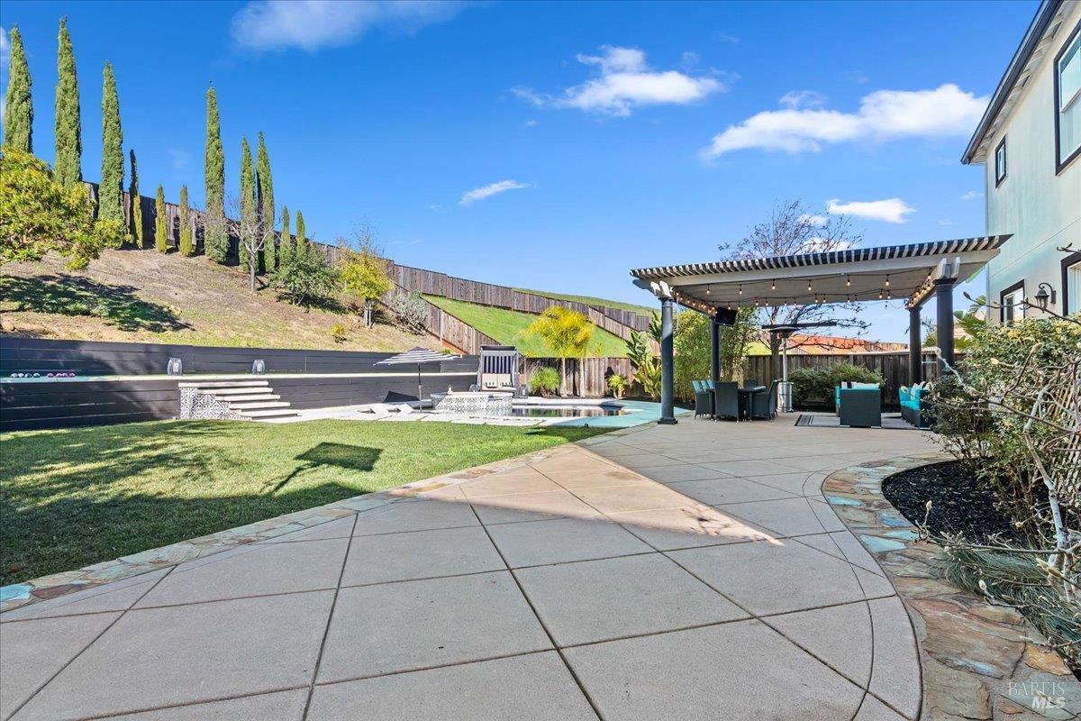 Step into a world of modern elegance with this remarkable 3,508 sq. ft. residence, perfectly curated for those who love to entertain and live boldly. Every detail speaks to refined taste and contemporary flair. From formal gatherings to casual soires, this home offers versatile living and dining areas designed to impress. A downstairs guest suite ensures comfort for visitors, while the upstairs retreat/media room creates the ultimate space for relaxation or movie nights. The heart of the home boasts a chef-inspired designer kitchen featuring under-cabinet lighting for a sleek ambiance, expansive island for culinary creativity, a 6-burner gas cooktop, double ovens, microwave and a new Samsung smart refrigerator for cutting-edge convenience. Custom design touches elevate your interiors with acoustic fluted wood accents, flocked designer wallpaper, and updated lighting fixtures throughout. A fully enclosed wet bar, strategically placed near the kitchen & family areas, makes entertaining effortless. Step outside to your private paradise spanning a lot size of 12,920 square feet, backing up to open space and Lake Herman to provide abundant privacy and space. This backyard oasis features a 5-year-old newly installed saltwater pool & spa with a spillover water feature and baja ledge, a covered patio for year-round enjoyment, and an upper-level turf area, perfect for Bocce Ball or lounging. Enjoy smart and sustainable living with a fully finished tandem 4-car garage with a 220 EV charger, powered by a paid-off 54-panel solar system from Freedom Forever. Additional highlights include a freshly painted interior, an exterior refresh in 2019, Hunter Douglas shutters & professionally tinted windows, a newer water heater and recessed lighting throughout. This home is more than a residence, it's a statement of style, sustainability, and sophistication. Perfect for the discerning buyer who demands the best in design and functionality.