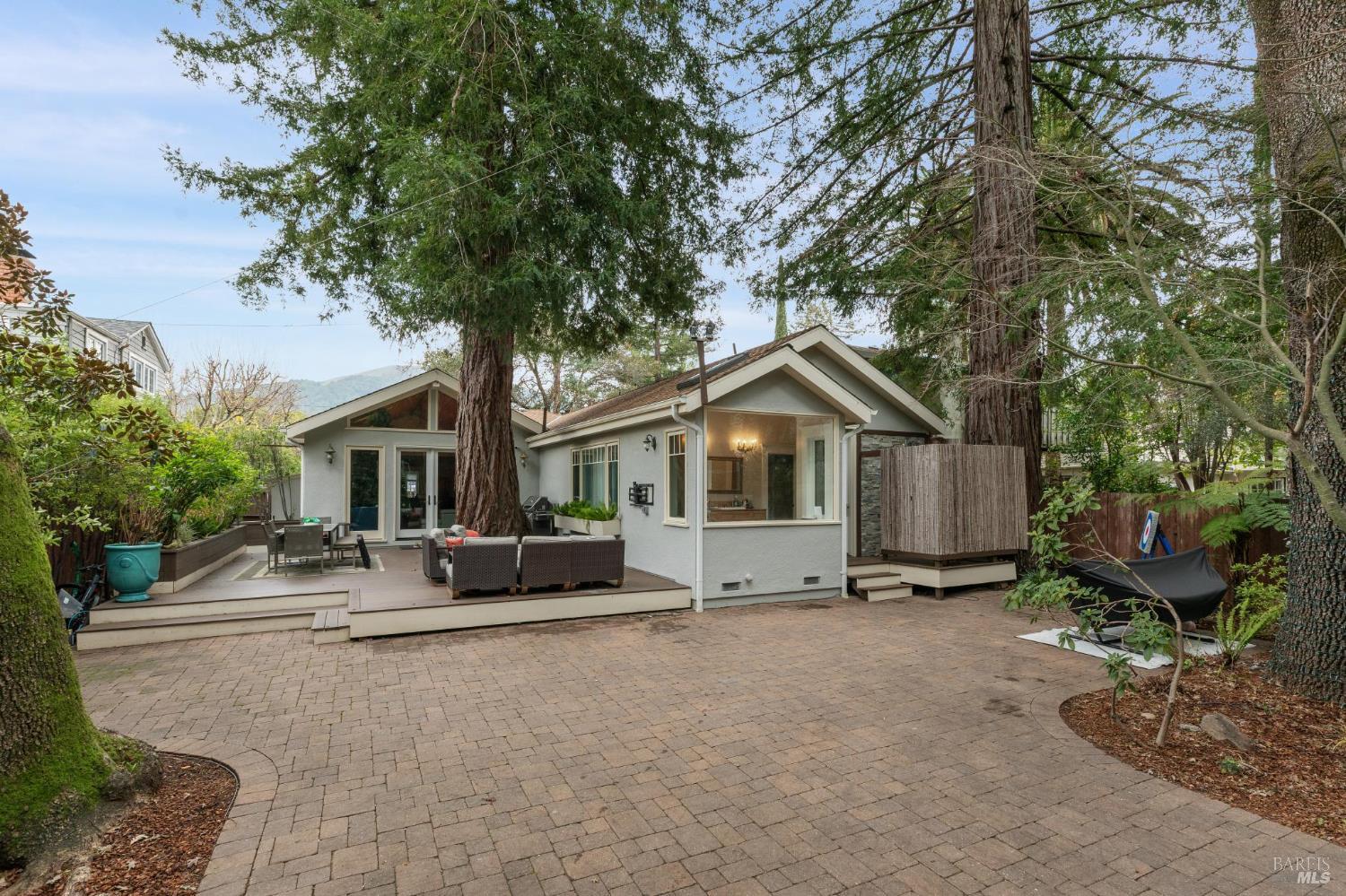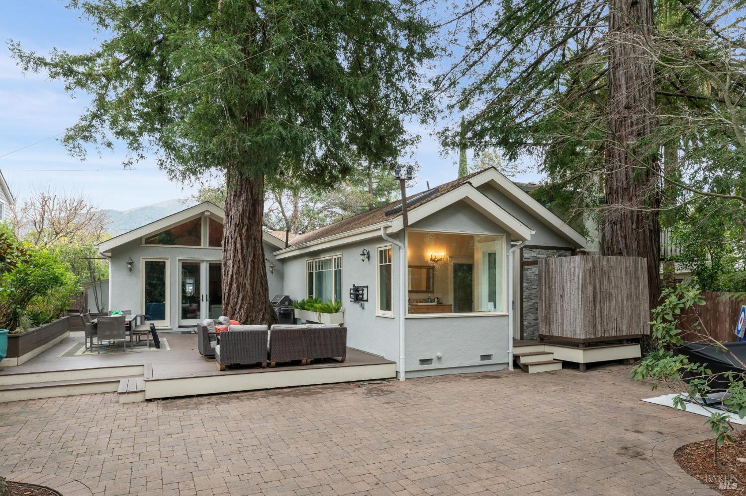 A rare and exciting entry into the coveted Ross lifestyle. This enchanting single-level home offers 3 bedrooms and 2.5 baths, anchored by a dramatic great room with soaring cathedral ceilings and an open, airy floor plan that blurs the line between indoors and out. A versatile home office or optional fourth bedroom adds flexibility for modern living. The serene primary suite invites relaxation with a spa-like soaking tub overlooking the lush grounds. Tucked beneath a canopy of majestic redwood trees, the property feels like a private retreat, complete with a seasonal creek that becomes a magical playground with rope swings and endless adventure. Perfectly located near the award-winning Ross K-8 School and the prestigious Branson School, this home also offers effortless access to world-class hiking and mountain biking trails, Phoenix Lake, charming San Anselmo shops and dining, and peaceful strolls along beloved Shady Lane.
