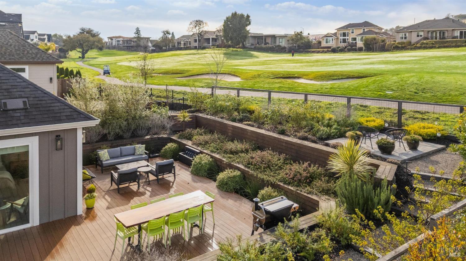 Designer style meets lock-and-go ease on the golf course. Enjoy main-floor living, fairway frontage with hill views, and luxury finishes including a chef's kitchen with Viking appliances & quartzite surfaces, wood flooring throughout, plus 4 bedrooms, including two en-suite. A showcase primary suite has access to the outdoors, built-in storage and a spa-like bathroom with soaking tub, roomy shower, dual sinks plus vanity area. A true standout: the large, newly created entertainer's backyard with lush landscaping and views, perfect for relaxing and hosting. Upgrades throughout! This beautiful custom home offers elevated, easy living in a premier golf-course setting. A wonderful opportunity to live in a pristine neighborhood featuring multi-million dollar homes.