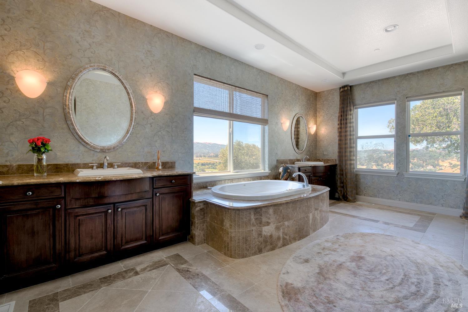 Coveted Luxury Living at Stonetree - Unparalleled Views, Elegant Design. One of Stonetree's most desirable homes, positioned at the end of a cul-de-sac ,breathtaking panoramic views from Mt. Tamalpais to Mt. Burdell. Overlooking the prestigious Stonetree Golf Club, this home is luxury living in Marin County.Prime Location: private setting with commanding views stunning Entry: Custom driveway and flagstone path lead to a grand entrance with an upgraded front doors. Elegant Interiors: Open office with fireplace and inspiring vistas, Private guest suite on the main level, Zenella flooring throughout the main level, Formal living room with fireplace and spectacular views, Expansive dining room perfect for entertaining up to 16 guests, Gourmet Kitchen: side by side Sub-Zero refrigerators/freezers and Viking range, Custom cabinetry and spacious breakfast area, Spacious Family Room: Custom built-ins, stone fireplace, wet bar, and access to an incredible view balcony, Lower Level Luxury: Wide staircase with custom iron railings, Nearly 1,200-bottle climate-controlled wine cellar, Game room with full-size pool table and lower-level balcony, Grand primary suite with, Sitting area, fireplace, Spa like bathroom, jetted tub, two walkin closets. Rare outdoor patio area. So much quality !