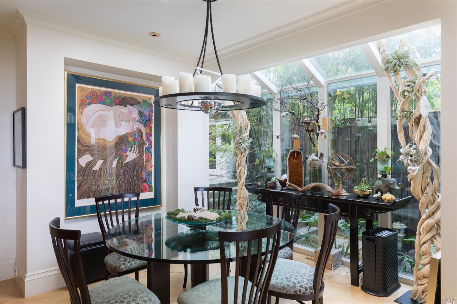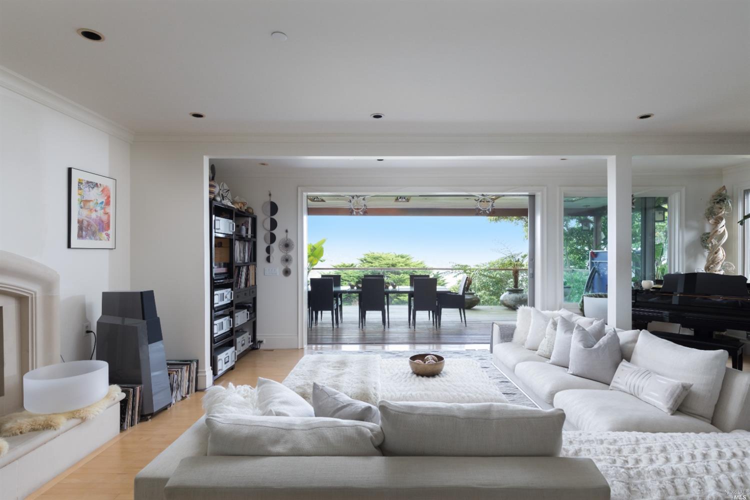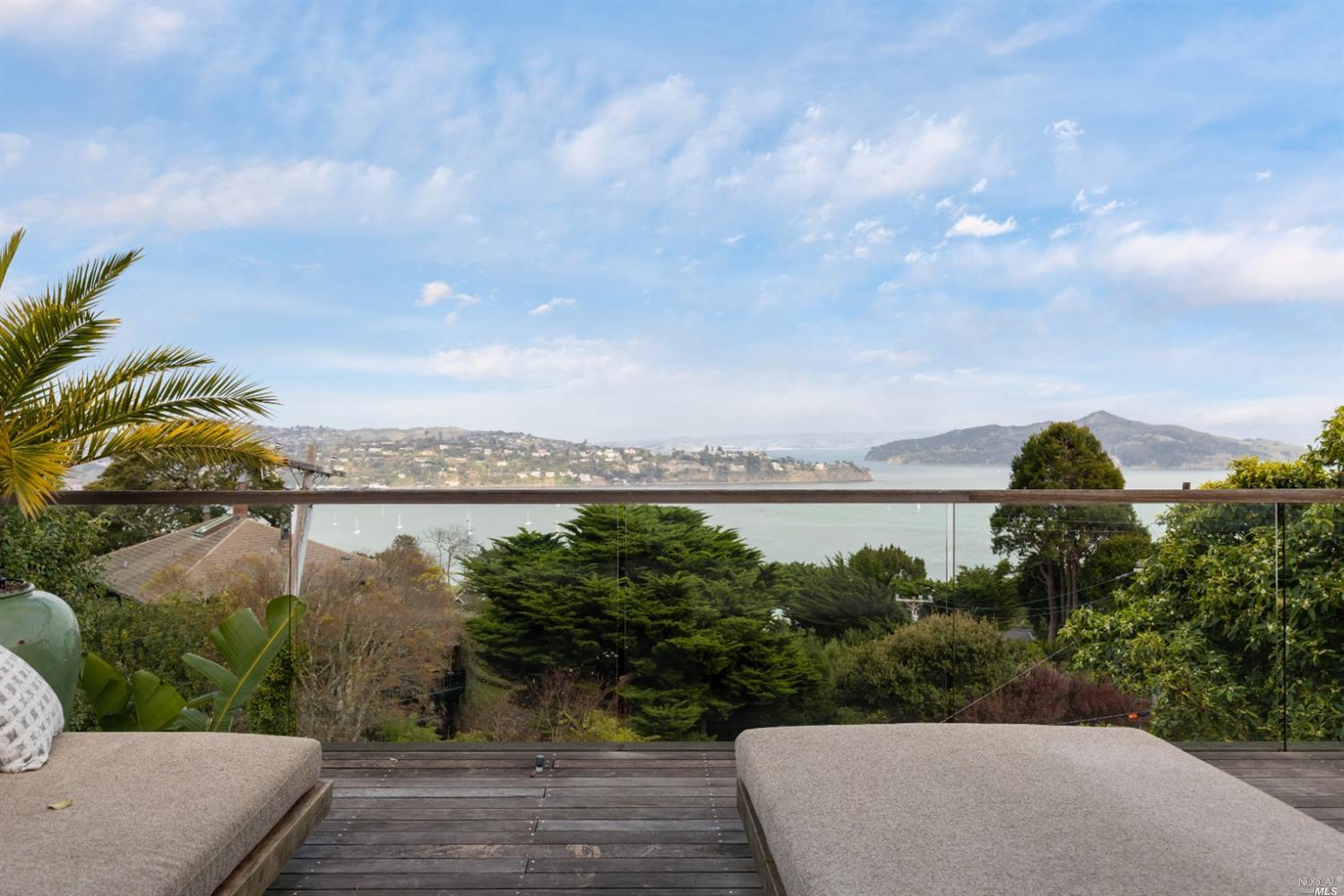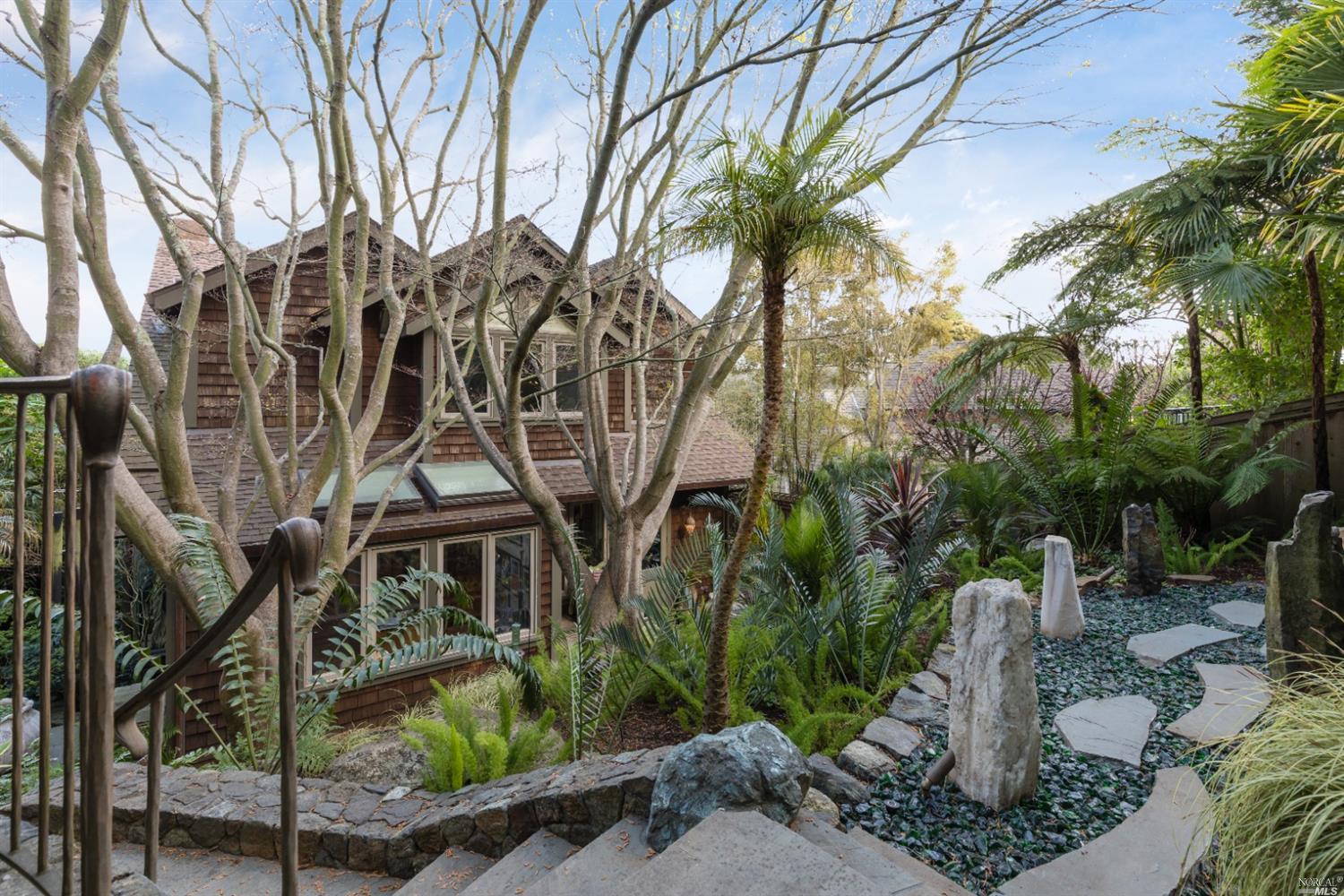 Experience San Francisco Bay living in this updated Contemporary Shingle single family home located above down town Sausalito in the highly desirable Banana Belt location. Enjoy water views of Belvedere and Angel Island in this entertainer's dream floor plan with large double decks and great room with stone surround fire place. Chef's kitchen, stone counter tops, food prep island. Penthouse primary with fireplace, vaulted ceilings with skylights, large private deck and outdoor tub. Lower level has 2 bedrooms, media area and sun room for relaxation or a yoga area. Well-established tranquil fenced off Balinese garden with large Japanese Maple trees, water feature and well-appointed landscaping. Separated detached cottage that has the 5th bedroom or guest suite. Updates include built-in backup power generator. Convenient off-street parking & 2-car garage, easy access to 101 for commute to the City or Wine Country.