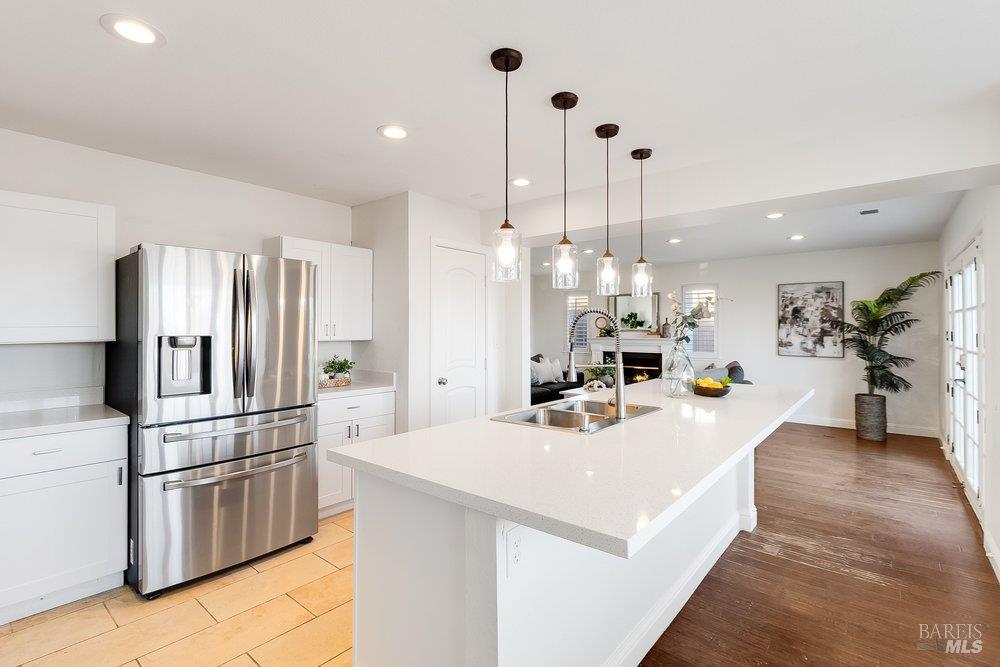 Welcome to this beautiful, turnkey Premiere home in one of Benicia's most coveted neighborhoods. Boasting an open-concept floor plan with soaring cathedral ceilings, this 3-bedroom plus bonus room home is the perfect blend of style and function. Recently updated with a brand-new kitchen, plush new carpeting, and fresh interior and exterior paint, this residence is truly move-in ready. The heart of the home features a centralized office/bonus room, a stylish wet bar and a bright breakfast nook. Upstairs, enjoy panoramic views of the water and city lights from the spacious primary suite. Additional amenities include a finished 2-car garage ideal for a home gym, an interior laundry room, and a large gated side yard with RV/boat access, a tough shed and a dog run. The drought-resistant landscaping and new fencing provide a low-maintenance retreat and the raised garden beds make for a gardener's delight. Located just steps from the Big Slide Park and Matthew Turner Elementary, and minutes from the historic charm of First Street's shopping and dining. Your Benicia dream starts here!