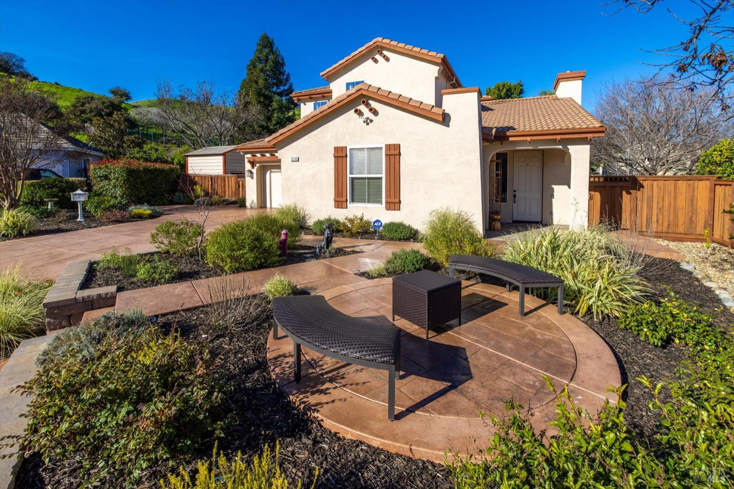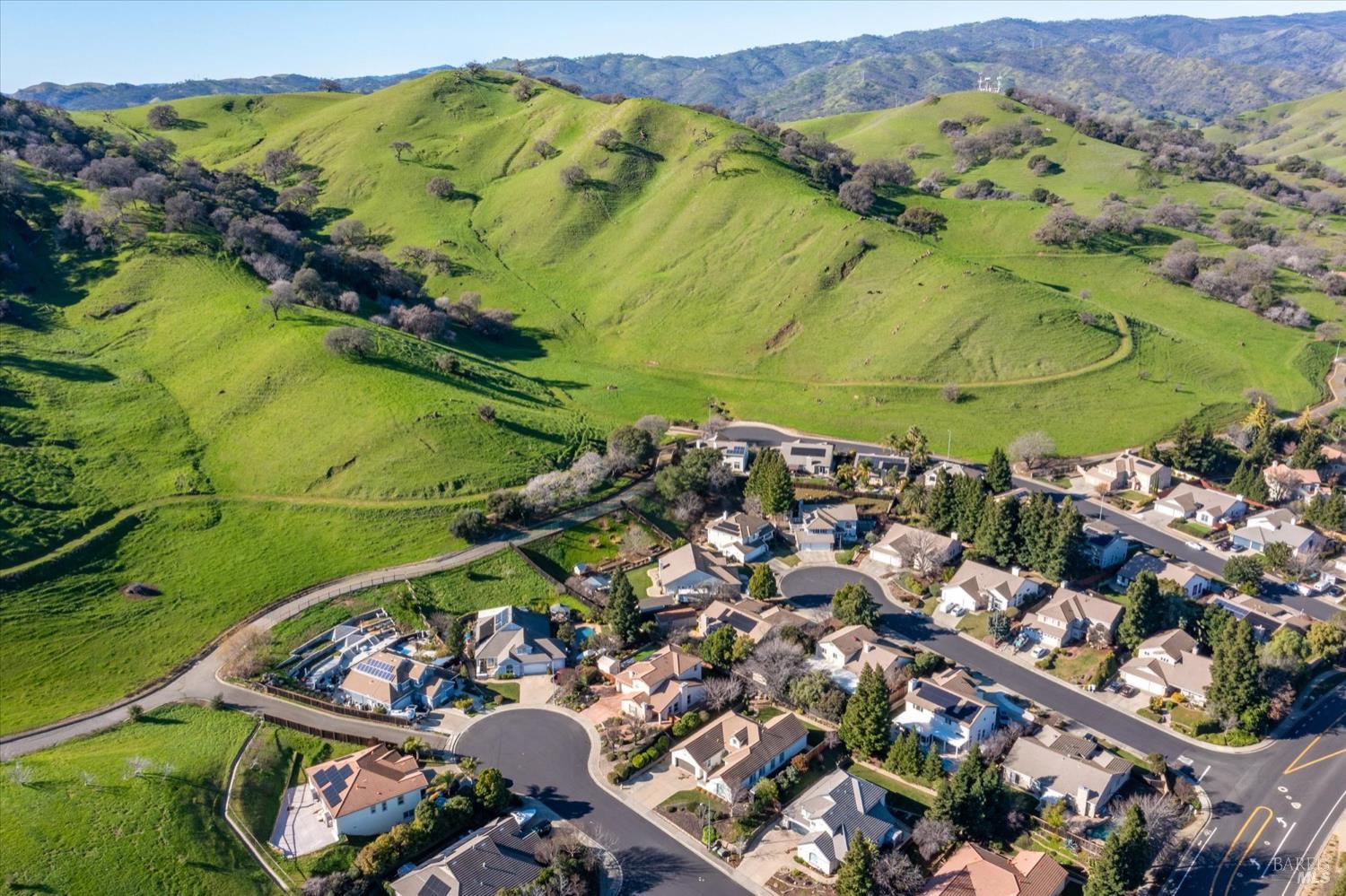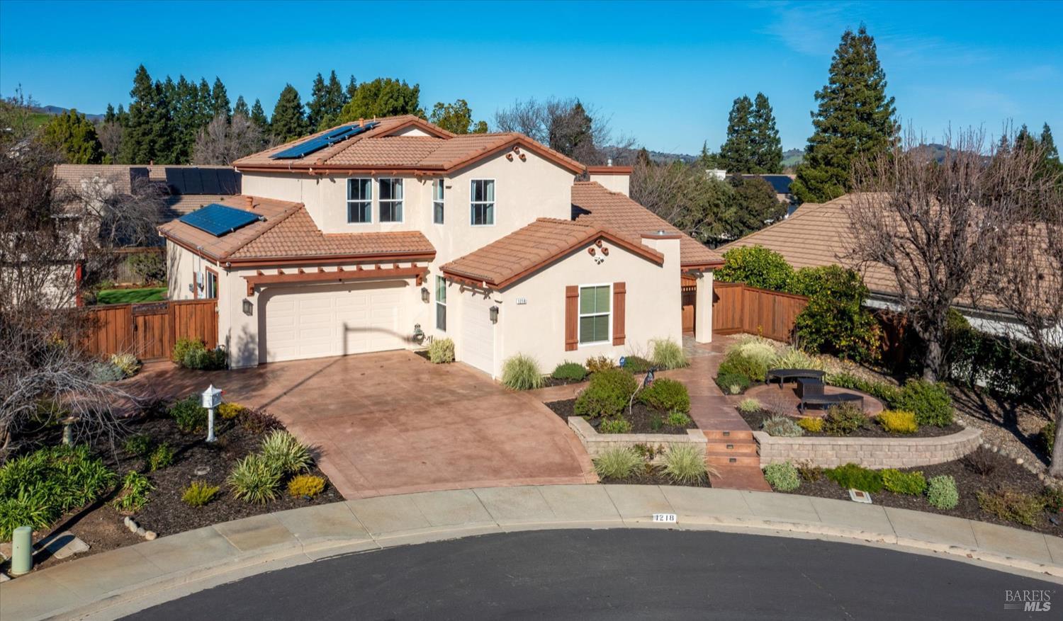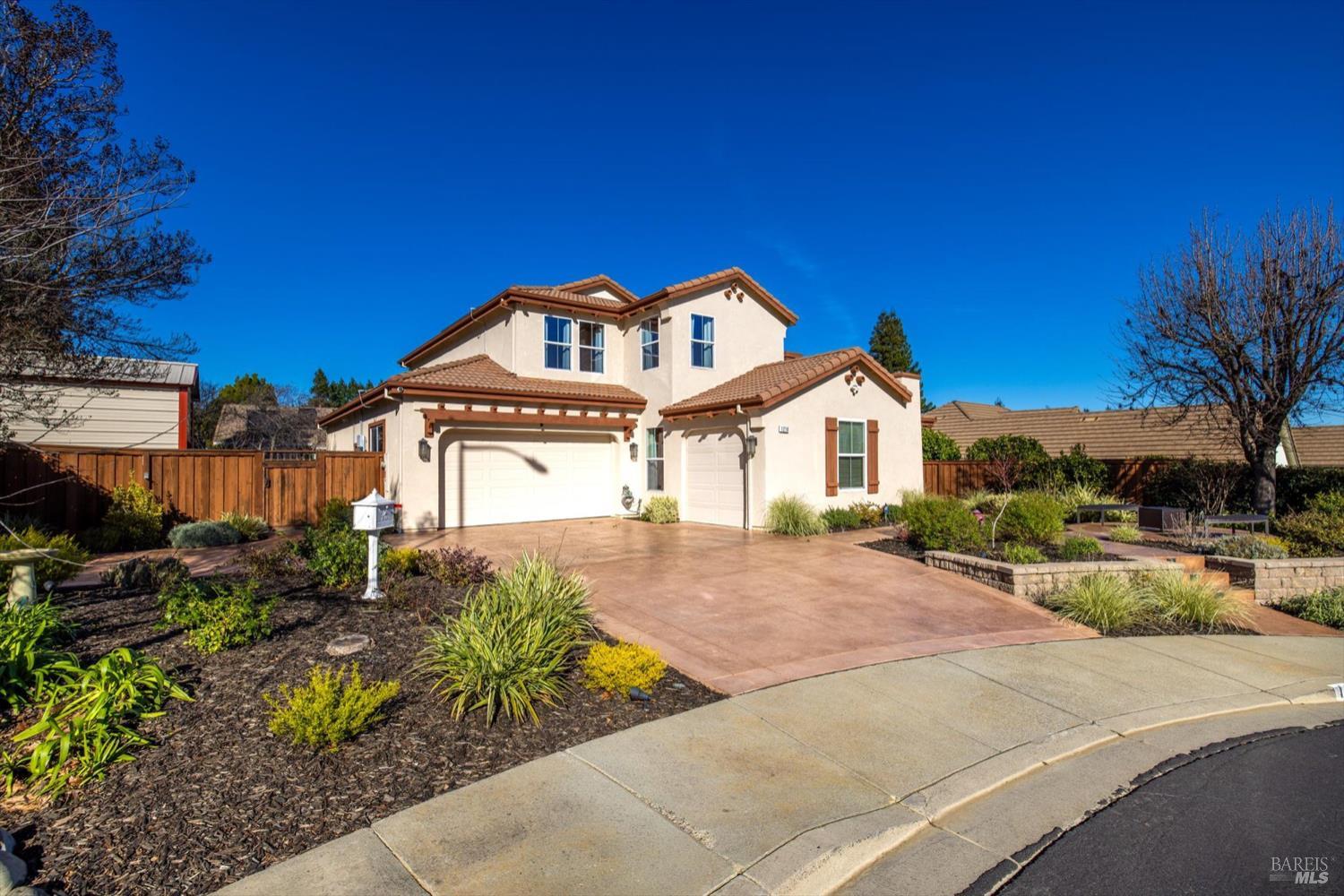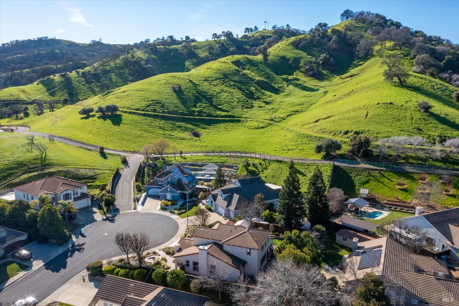 Executive-style living meets thoughtful design in this exceptional 4 bedroom 3 full bath home, ideally located at the end of a quiet court. A highly desirable downstairs bedroom and full bath offers flexibility for guests, multi-generational living, or a private home office. Enjoy breathtaking views of the surrounding hills from nearly every window, including the backyard-creating a serene backdrop for daily living and entertaining. The open, light-filled floor plan is complemented by the convenience of an upstairs laundry room and generous bedroom space throughout. The extra-large kitchen is a standout feature, designed for both everyday living and entertaining. It offers abundant cabinetry, generous counter space, extensive storage and spacious walk-in pantry-providing exceptional functionality rarely found. The kitchen opens seamlessly to the main living areas and back yard, all framed by breathtaking views of the surrounding hills. This home is enhanced with modern efficiencies, including Tesla batteries for back up energy storage, providing peace of mind and added value. The meticulous redesigned manicured lot showcases stamped concrete, custom nightscape lighting and an incredible custom freestanding shed, perfect for additional storage or hobby use. A 3 car garage adds practicality while the premium back-of-court location offers privacy and a sense of exclusivity. Combining elevated style, smart functionality and stunning surroundings, this home delivers executive living at its finest!