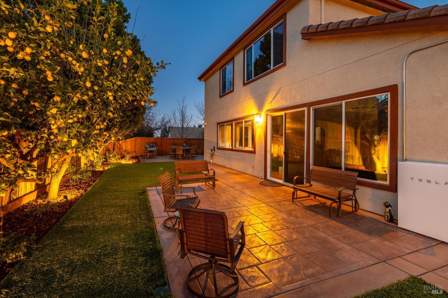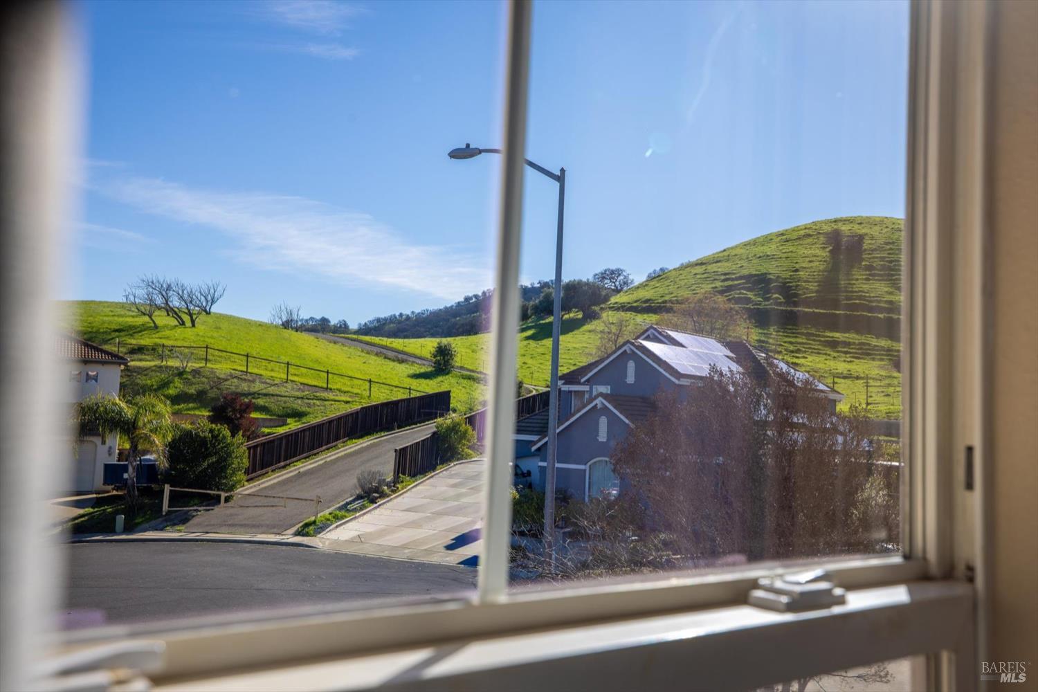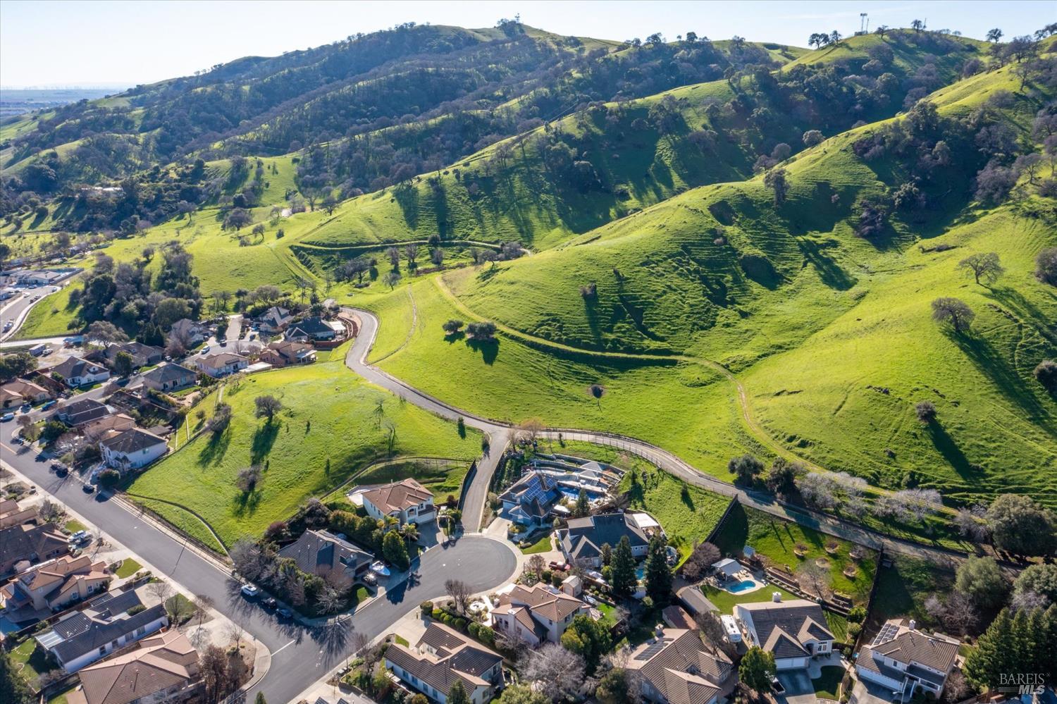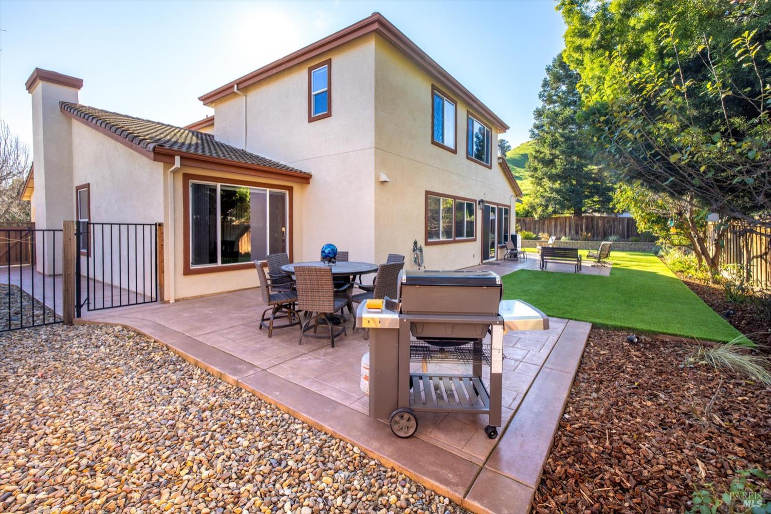 Executive-style living meets thoughtful design in this exceptional 4 bedroom 3 full bath home, ideally located at the end of a quiet court. A highly desirable downstairs bedroom and full bath offers flexibility for guests, multi-generational living, or a private home office. Enjoy breathtaking views of the surrounding hills from nearly every window, including the backyard-creating a serene backdrop for daily living and entertaining. The open, light-filled floor plan is complemented by the convenience of an upstairs laundry room and generous bedroom space throughout. The extra-large kitchen is a standout feature, designed for both everyday living and entertaining. It offers abundant cabinetry, generous counter space, extensive storage and spacious walk-in pantry-providing exceptional functionality rarely found. The kitchen opens seamlessly to the main living areas and back yard, all framed by breathtaking views of the surrounding hills. This home is enhanced with modern efficiencies, including Tesla batteries for back up energy storage, providing peace of mind and added value. The meticulous redesigned manicured lot showcases stamped concrete, custom nightscape lighting and an incredible custom freestanding shed, perfect for additional storage or hobby use. A 3 car garage adds practicality while the premium back-of-court location offers privacy and a sense of exclusivity. Combining elevated style, smart functionality and stunning surroundings, this home delivers executive living at its finest!