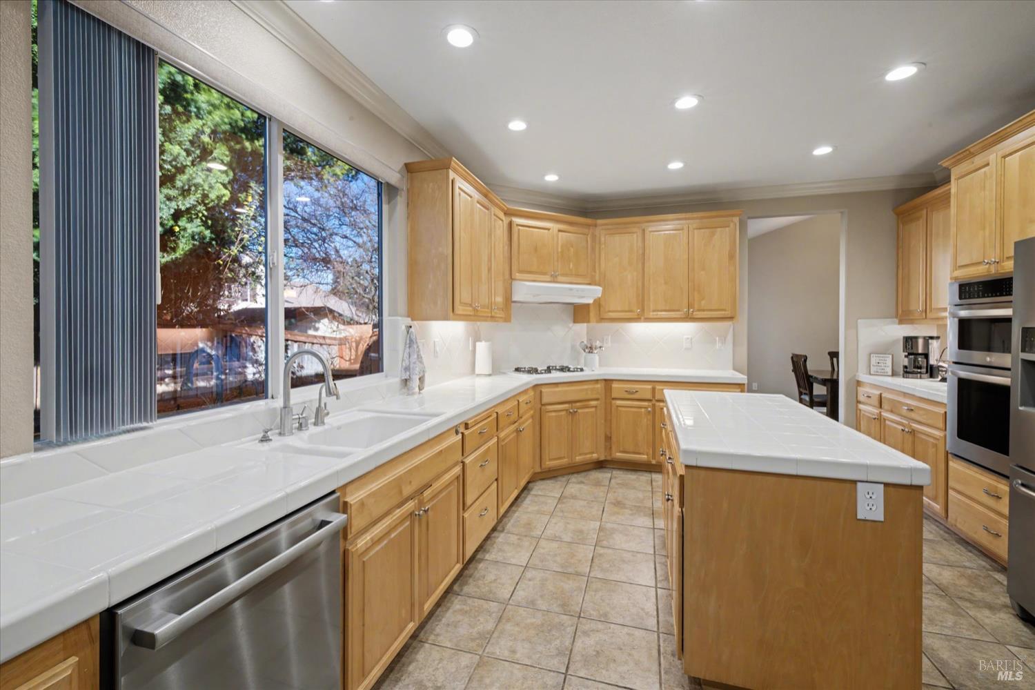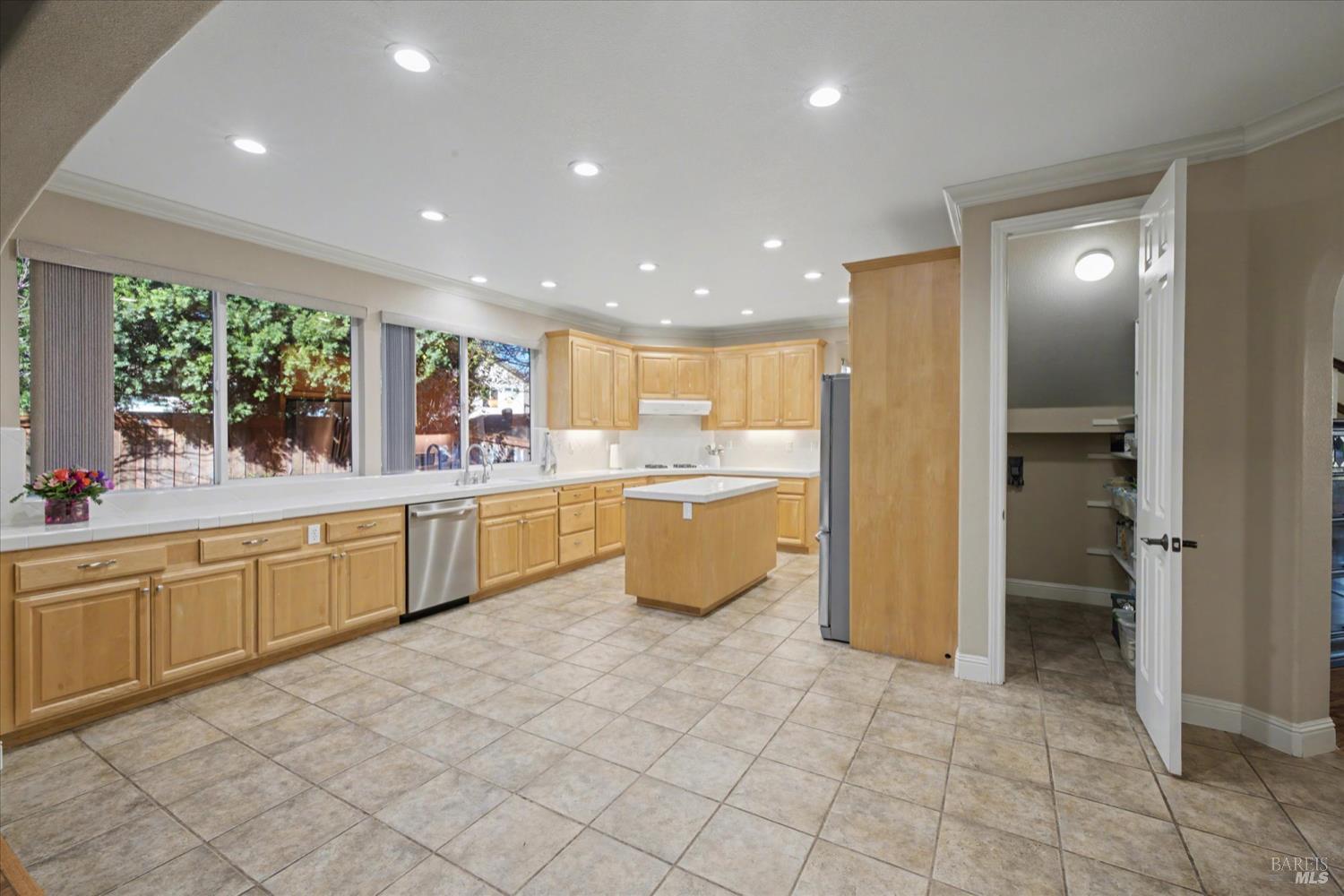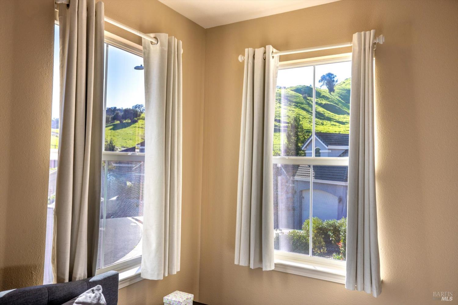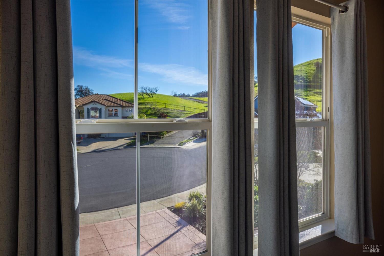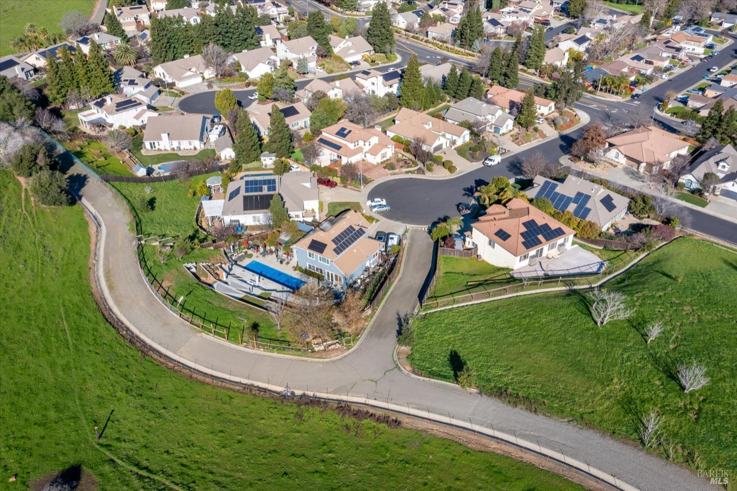 Executive-style living meets thoughtful design in this exceptional 4 bedroom 3 full bath home, ideally located at the end of a quiet court. A highly desirable downstairs bedroom and full bath offers flexibility for guests, multi-generational living, or a private home office. Enjoy breathtaking views of the surrounding hills from nearly every window, including the backyard-creating a serene backdrop for daily living and entertaining. The open, light-filled floor plan is complemented by the convenience of an upstairs laundry room and generous bedroom space throughout. The extra-large kitchen is a standout feature, designed for both everyday living and entertaining. It offers abundant cabinetry, generous counter space, extensive storage and spacious walk-in pantry-providing exceptional functionality rarely found. The kitchen opens seamlessly to the main living areas and back yard, all framed by breathtaking views of the surrounding hills. This home is enhanced with modern efficiencies, including Tesla batteries for back up energy storage, providing peace of mind and added value. The meticulous redesigned manicured lot showcases stamped concrete, custom nightscape lighting and an incredible custom freestanding shed, perfect for additional storage or hobby use. A 3 car garage adds practicality while the premium back-of-court location offers privacy and a sense of exclusivity. Combining elevated style, smart functionality and stunning surroundings, this home delivers executive living at its finest!