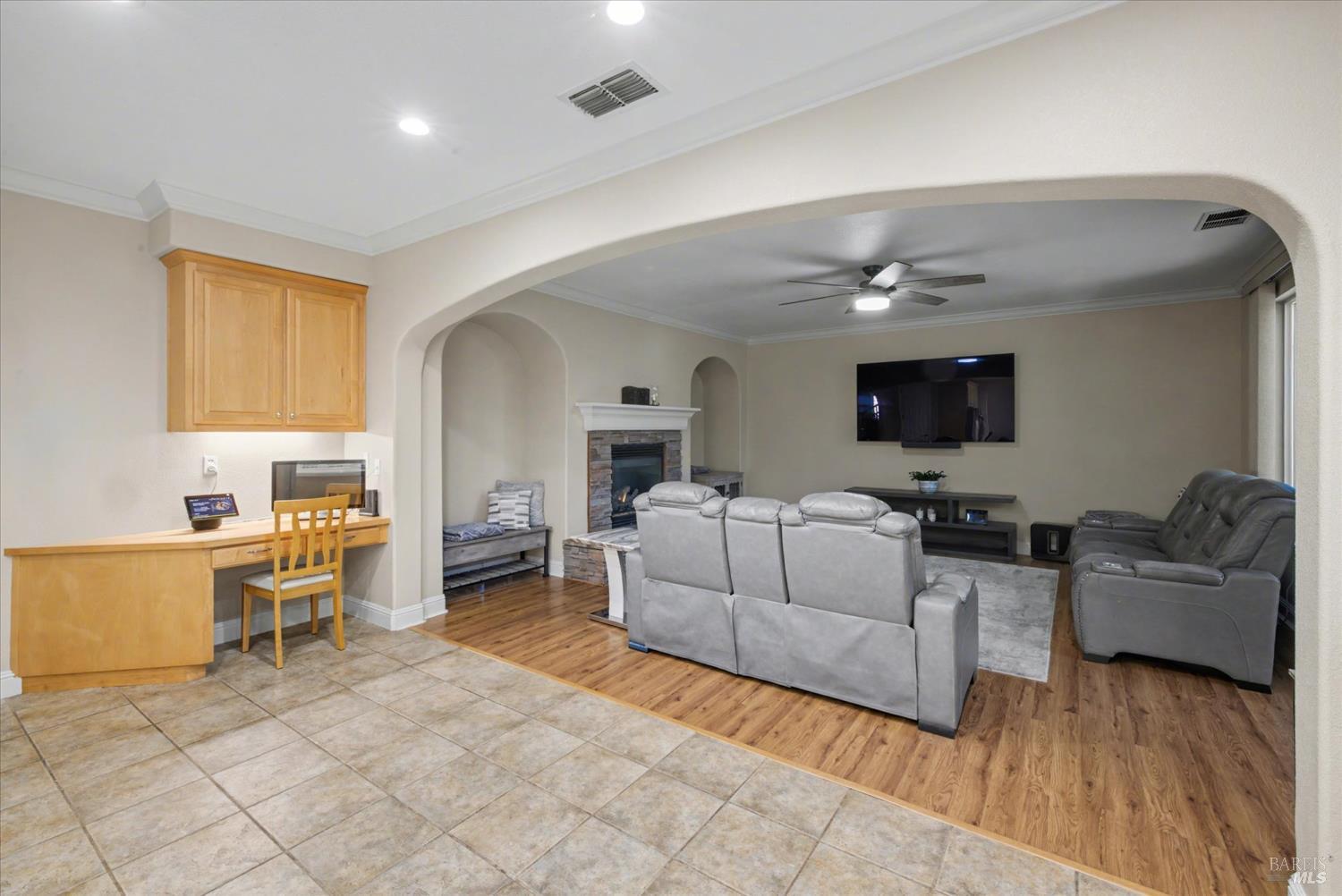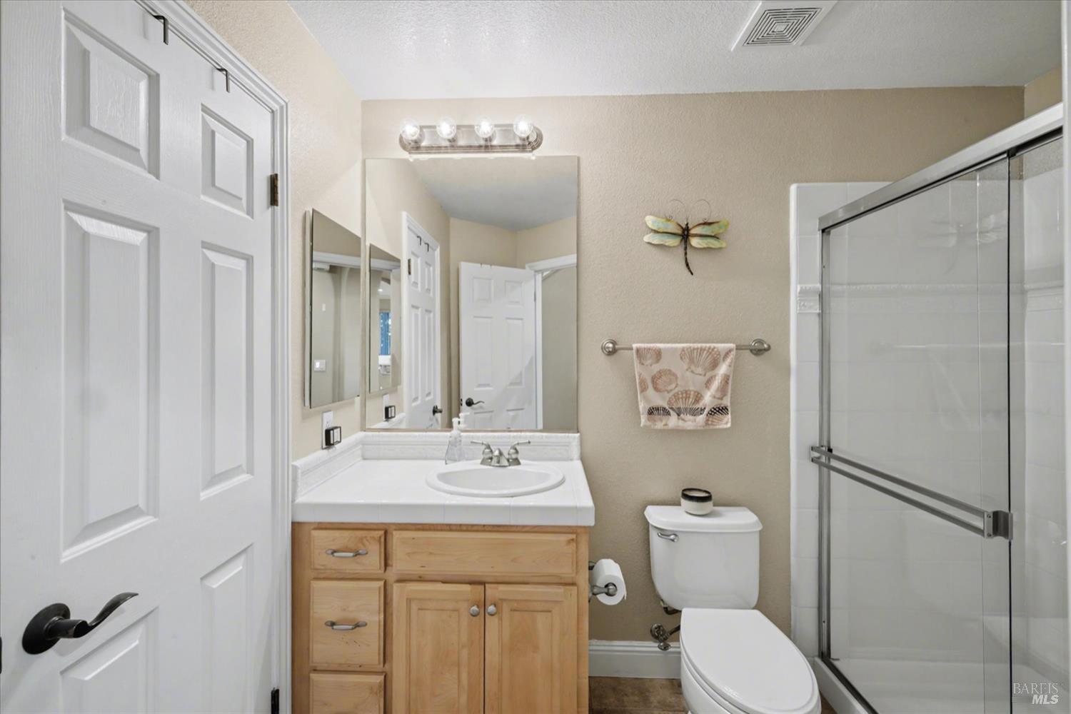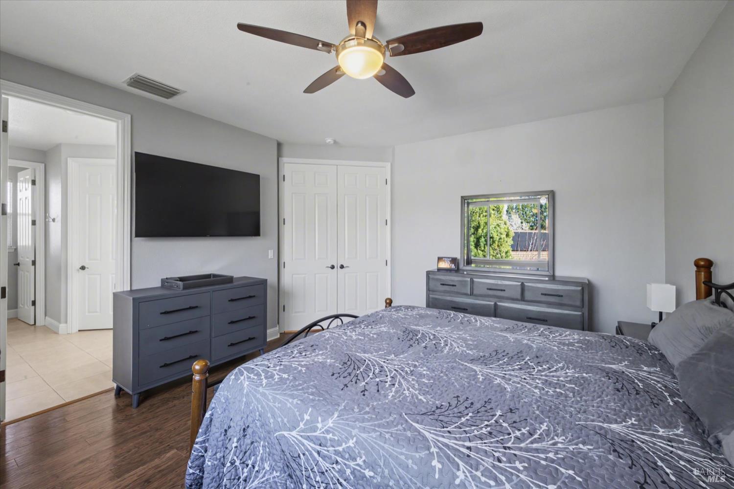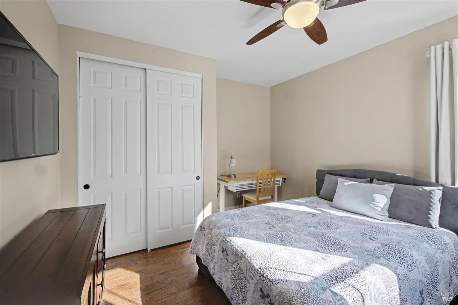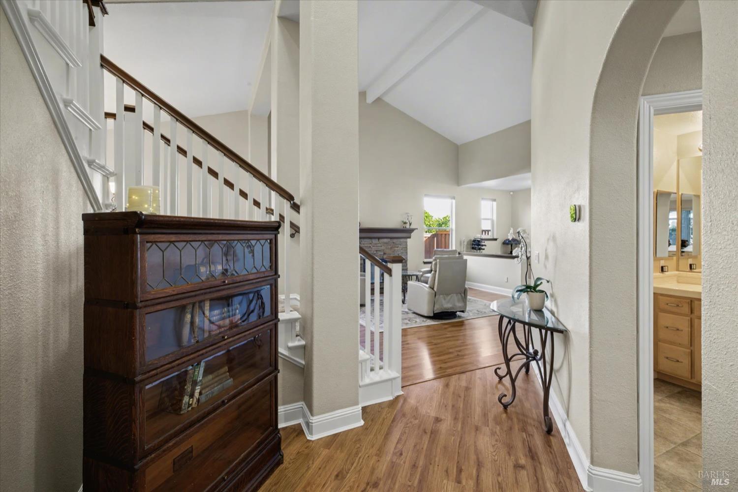 Executive-style living meets thoughtful design in this exceptional 4 bedroom 3 full bath home, ideally located at the end of a quiet court. A highly desirable downstairs bedroom and full bath offers flexibility for guests, multi-generational living, or a private home office. Enjoy breathtaking views of the surrounding hills from nearly every window, including the backyard-creating a serene backdrop for daily living and entertaining. The open, light-filled floor plan is complemented by the convenience of an upstairs laundry room and generous bedroom space throughout. The extra-large kitchen is a standout feature, designed for both everyday living and entertaining. It offers abundant cabinetry, generous counter space, extensive storage and spacious walk-in pantry-providing exceptional functionality rarely found. The kitchen opens seamlessly to the main living areas and back yard, all framed by breathtaking views of the surrounding hills. This home is enhanced with modern efficiencies, including Tesla batteries for back up energy storage, providing peace of mind and added value. The meticulous redesigned manicured lot showcases stamped concrete, custom nightscape lighting and an incredible custom freestanding shed, perfect for additional storage or hobby use. A 3 car garage adds practicality while the premium back-of-court location offers privacy and a sense of exclusivity. Combining elevated style, smart functionality and stunning surroundings, this home delivers executive living at its finest!