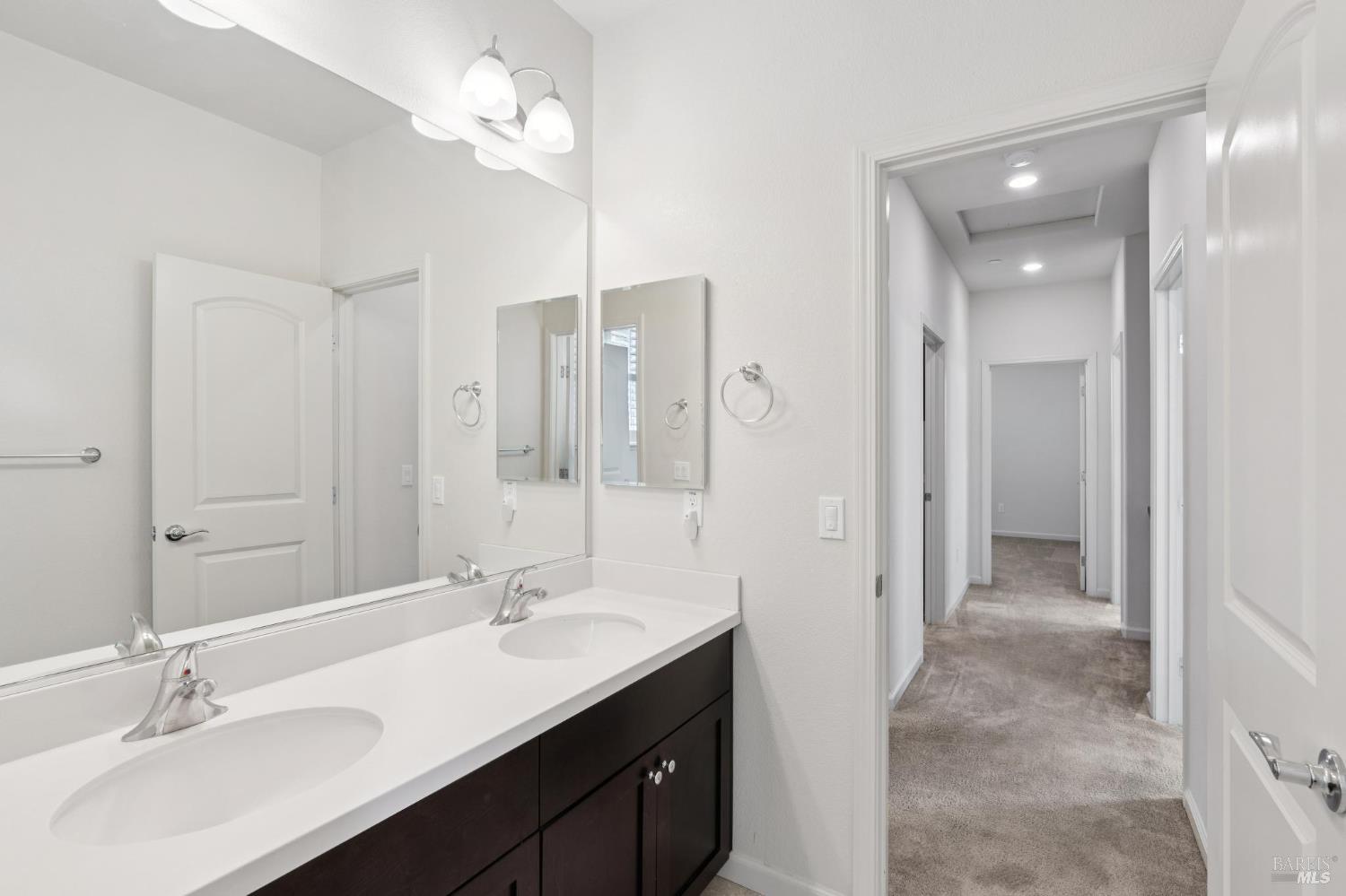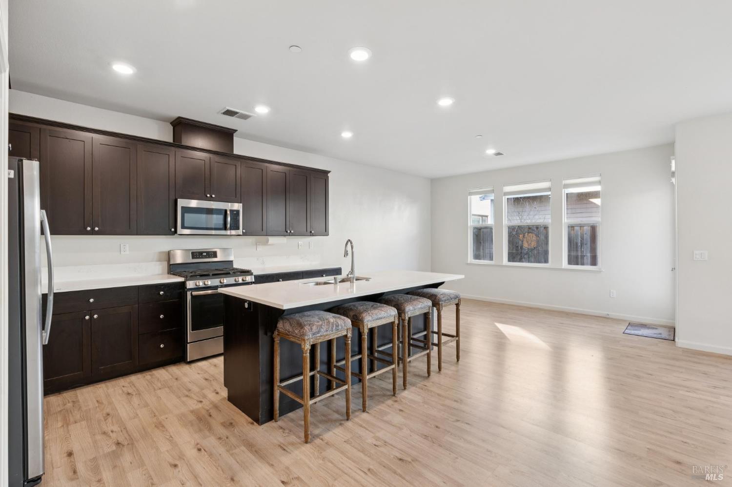 One of Willowglen's most desirable floor plans, this beautifully appointed Cedar layout offers approx. 2,480 sq. ft. of thoughtfully designed living space. The home enjoys a premium location just one block from the neighborhood park and benefits from no homes directly across the street. It feat. 5 bedrooms and 3 full bathrooms, incl. a full bedroom and bathroom on the main level, ideal for guests or multi-generational living. The open-concept main living area is filled with natural light and designed for both everyday living and entertaining, anchored by a spacious kitchen with bar seating and walk-in pantry, that flows seamlessly into the dining and living spaces. Upstairs, 4 additional bedrooms are complemented by a generous loft, providing a versatile bonus space. The primary suite, located at rear, serves as a comfortable retreat with a well-appointed en-suite bath and walk-in closet. The low-maintenance backyard feat. a large patio, perfect for outdoor dining, while owned rooftop solar adds energy efficiency. Located in one of Rohnert Park's most sought-after neighborhoods, Willowglen is known for its community feel and proximity to shopping, dining, SOMO Village, Sonoma State University, and the Green Music Center.