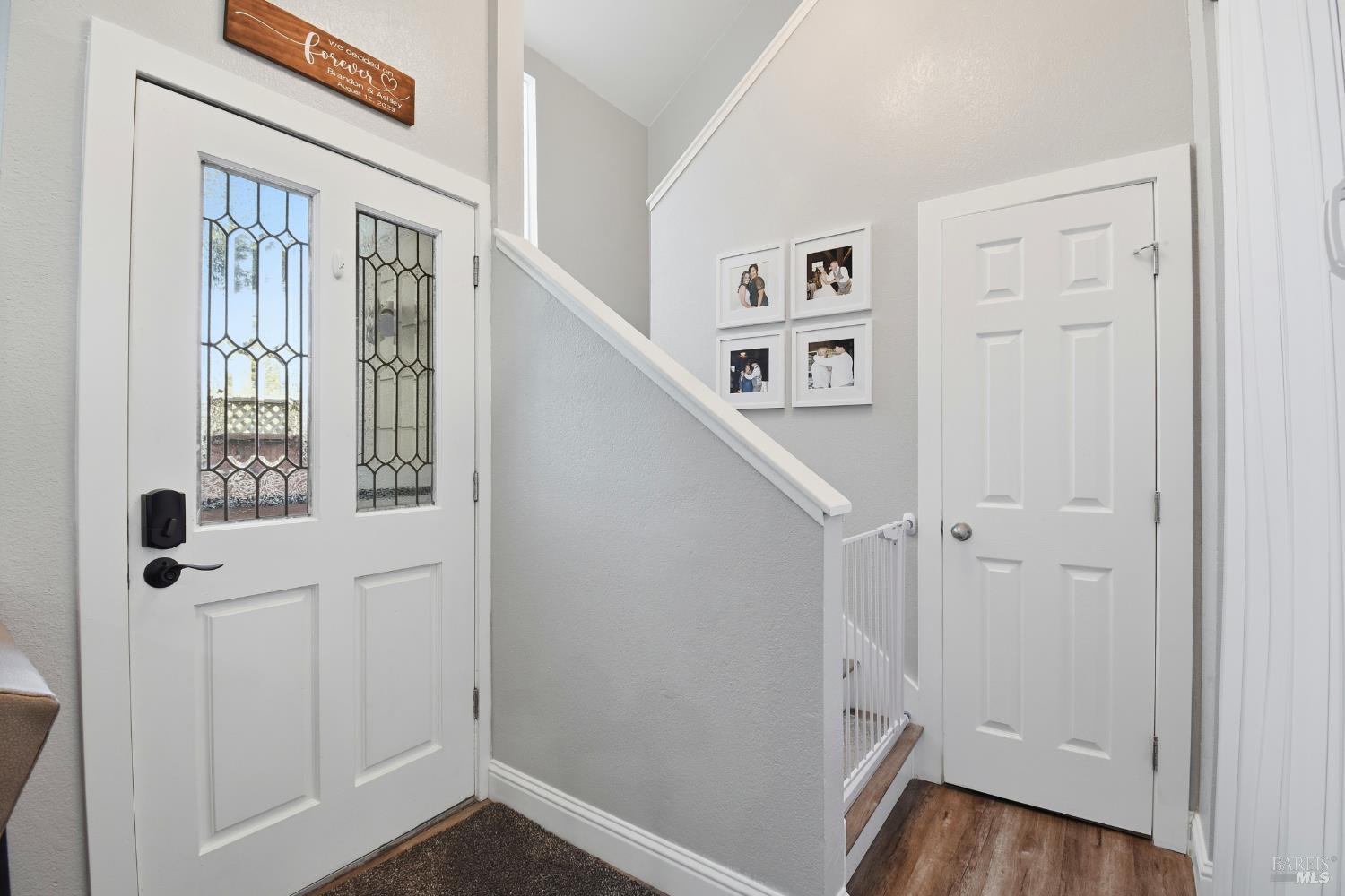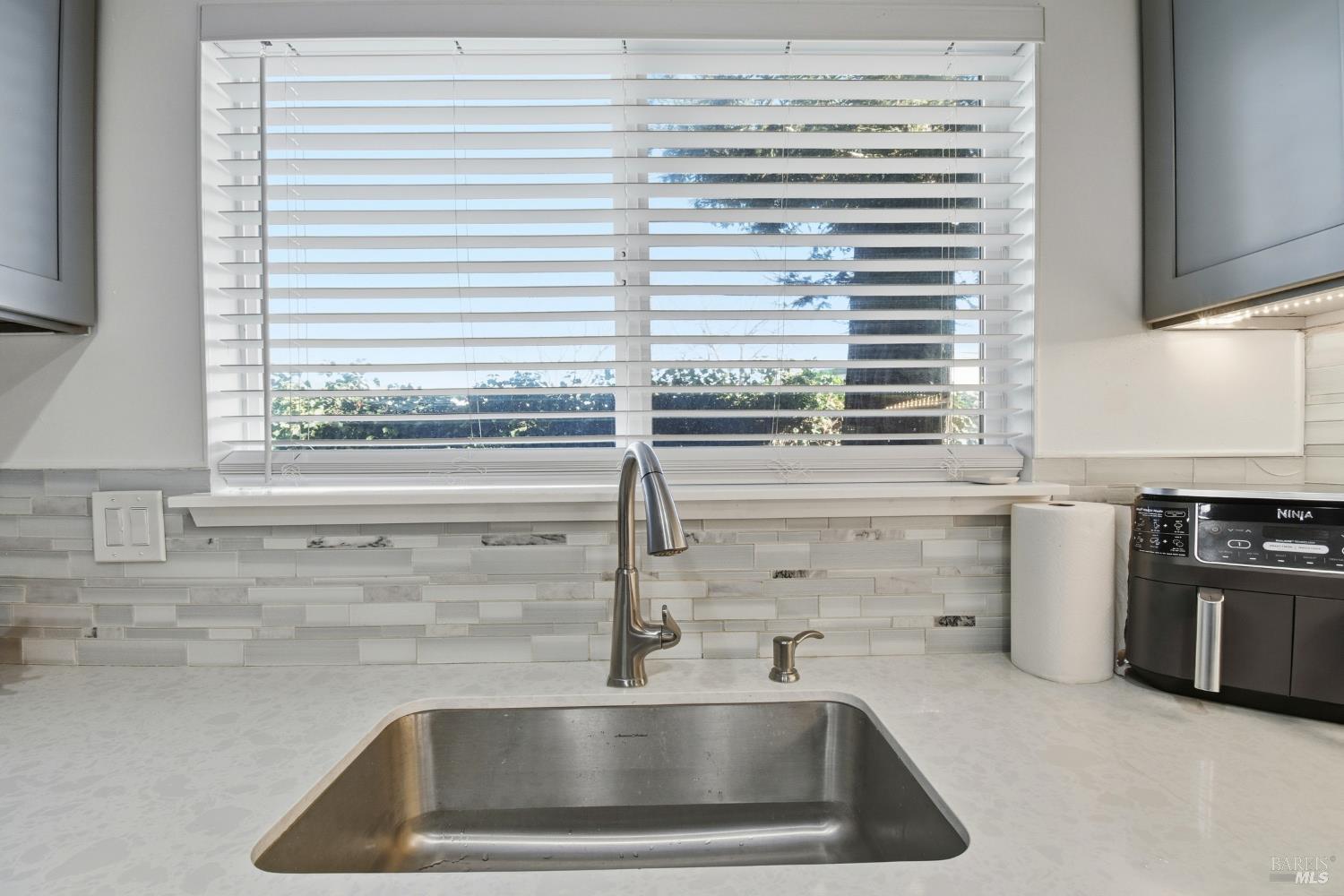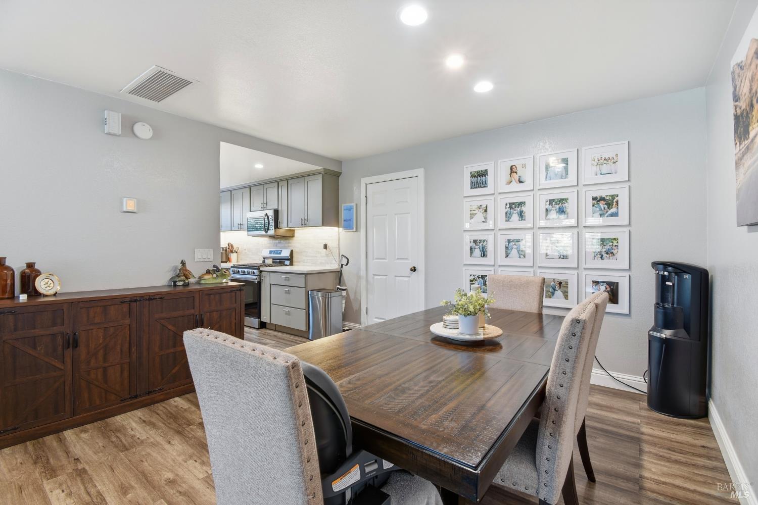 Excellent end-unit home in a great location, just a short distance to Foxtail Golf Course and Hahn Elementary School. Features include a newer dual-zone heating system and a remodeled kitchen with quartz countertops, tile backsplash, and newer stainless steel appliances. The home offers vinyl flooring throughout, recessed lighting, and soaring cathedral ceilings that enhance the open feel. The primary bedroom includes large mirrored closet doors, while an upstairs office space is highlighted by a skylight, ideal for working from home. The upstairs full bathroom features tile flooring, a double-sink vanity with quartz countertops, and a tub with decorative tile and a shower over. The downstairs one-half bath also includes tile flooring and a vanity with quartz countertops. Enjoy the private, enclosed front patio area with a newly built fence and turf decking, ideal for outdoor relaxation. The home also has a two-car garage. HOA dues are $650/monthly and this covers insurance on the structure, maintenance on the exterior, maintenance on the grounds, management, the roof, sewer, trash and water. Come check out your new home in Rohnert Park today!