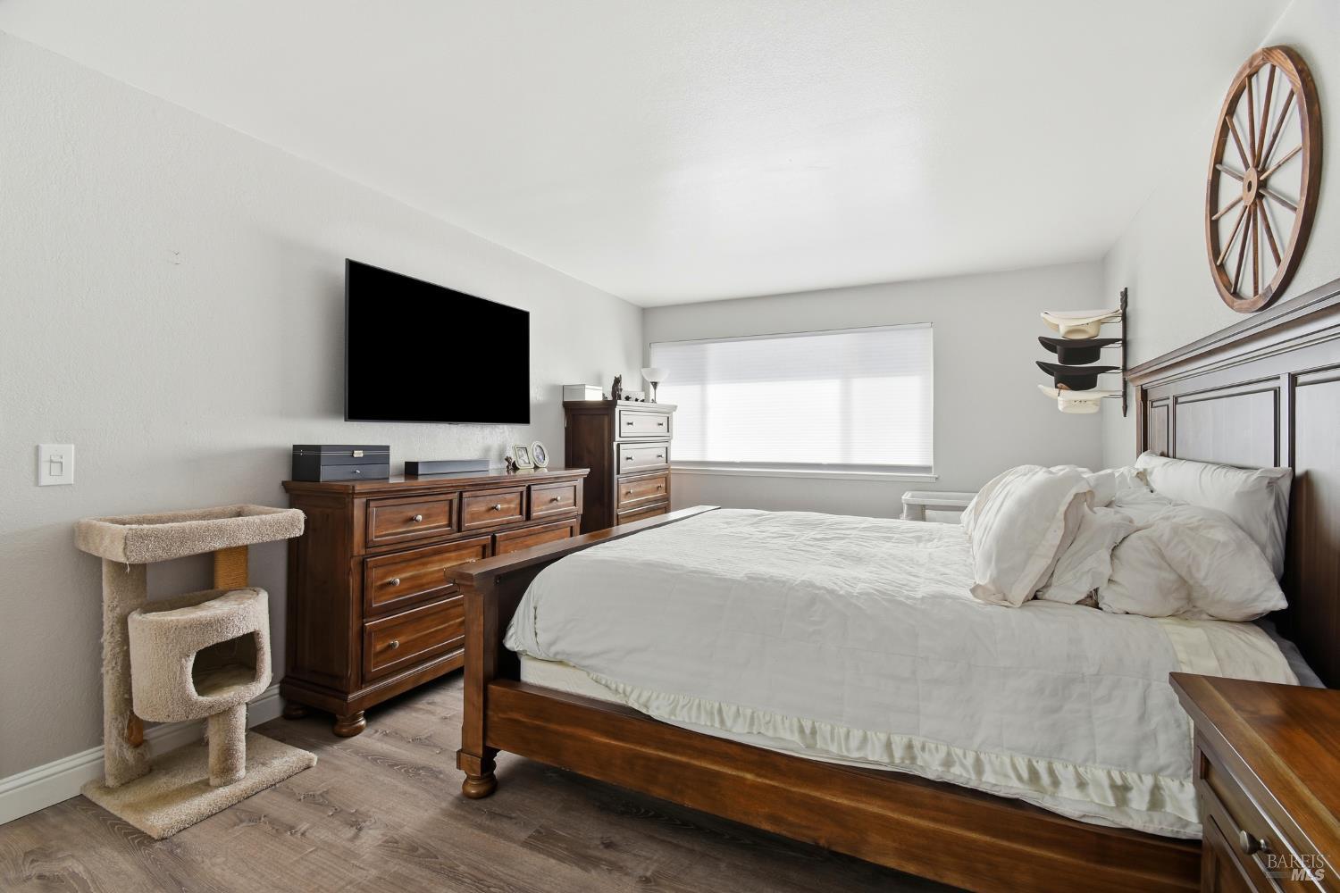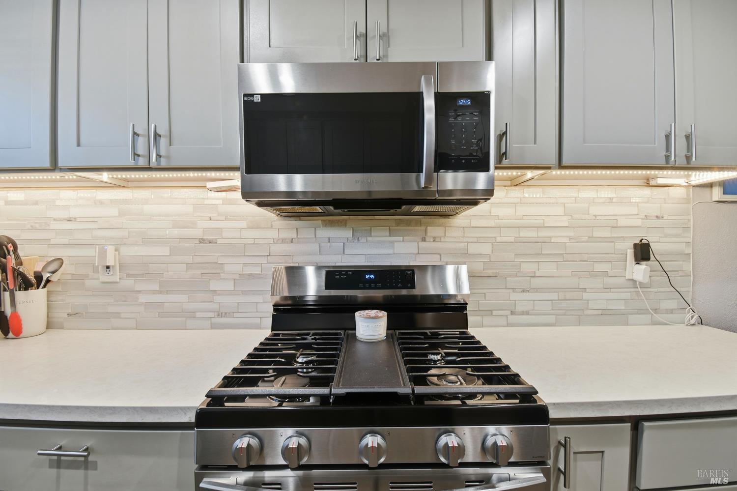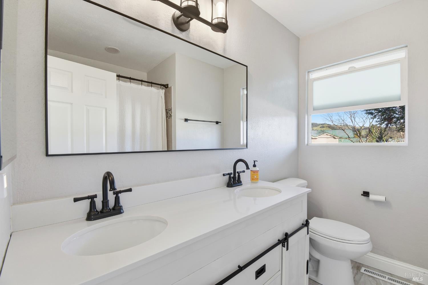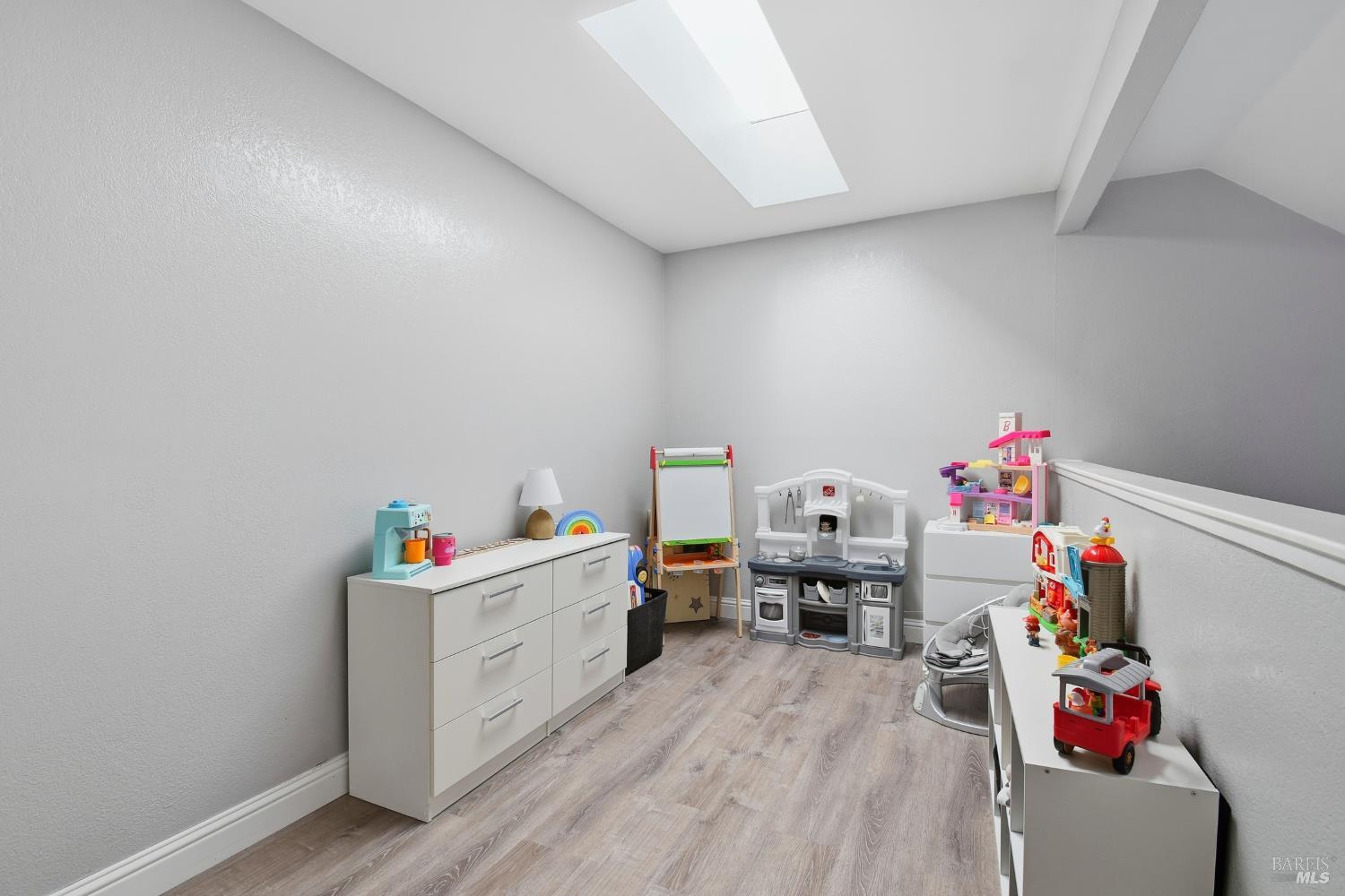 Excellent end-unit home in a great location, just a short distance to Foxtail Golf Course and Hahn Elementary School. Features include a newer dual-zone heating system and a remodeled kitchen with quartz countertops, tile backsplash, and newer stainless steel appliances. The home offers vinyl flooring throughout, recessed lighting, and soaring cathedral ceilings that enhance the open feel. The primary bedroom includes large mirrored closet doors, while an upstairs office space is highlighted by a skylight, ideal for working from home. The upstairs full bathroom features tile flooring, a double-sink vanity with quartz countertops, and a tub with decorative tile and a shower over. The downstairs one-half bath also includes tile flooring and a vanity with quartz countertops. Enjoy the private, enclosed front patio area with a newly built fence and turf decking, ideal for outdoor relaxation. The home also has a two-car garage. HOA dues are $650/monthly and this covers insurance on the structure, maintenance on the exterior, maintenance on the grounds, management, the roof, sewer, trash and water. Come check out your new home in Rohnert Park today!