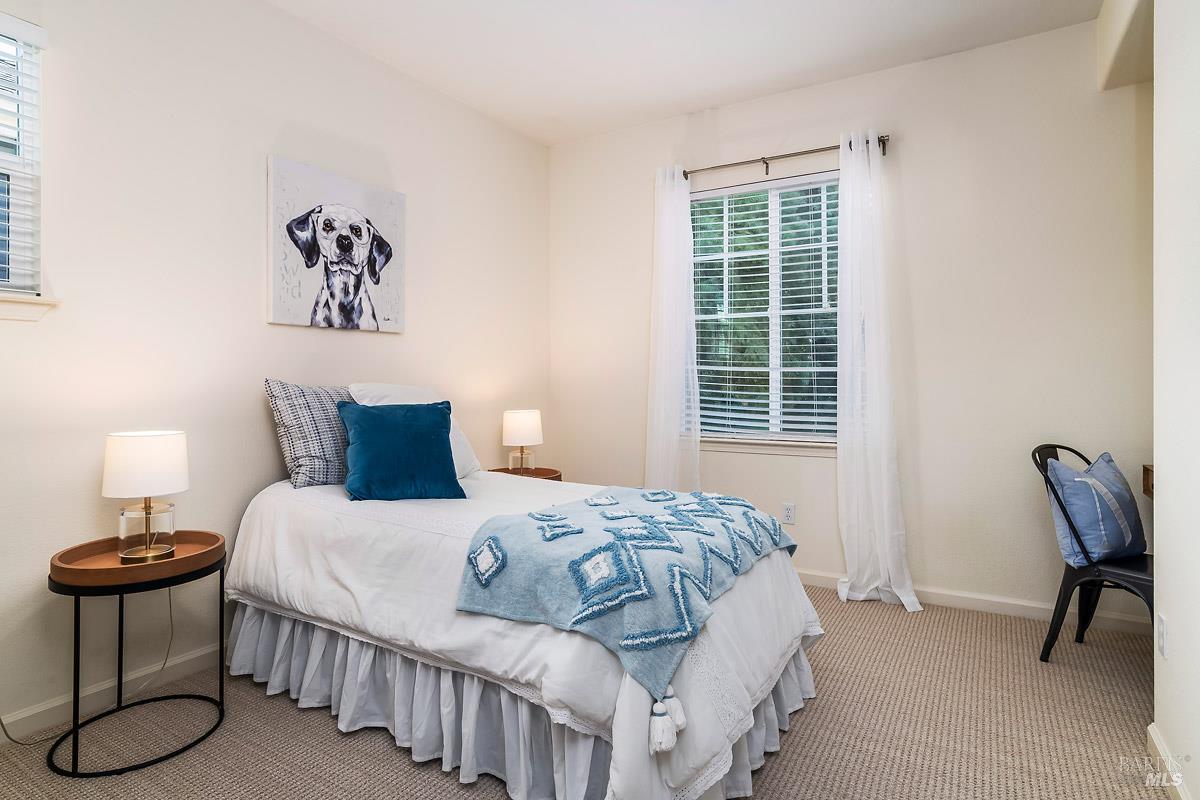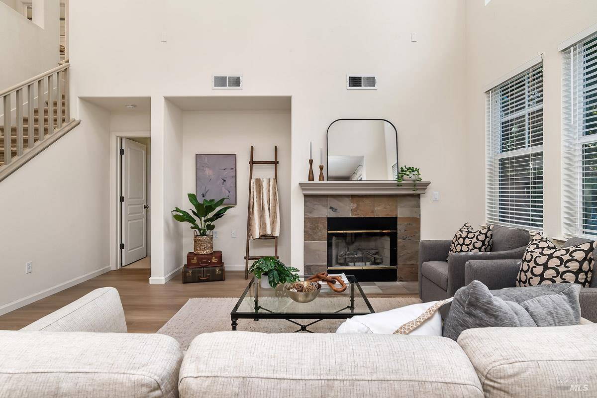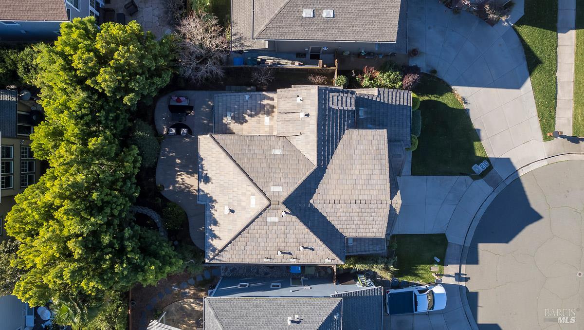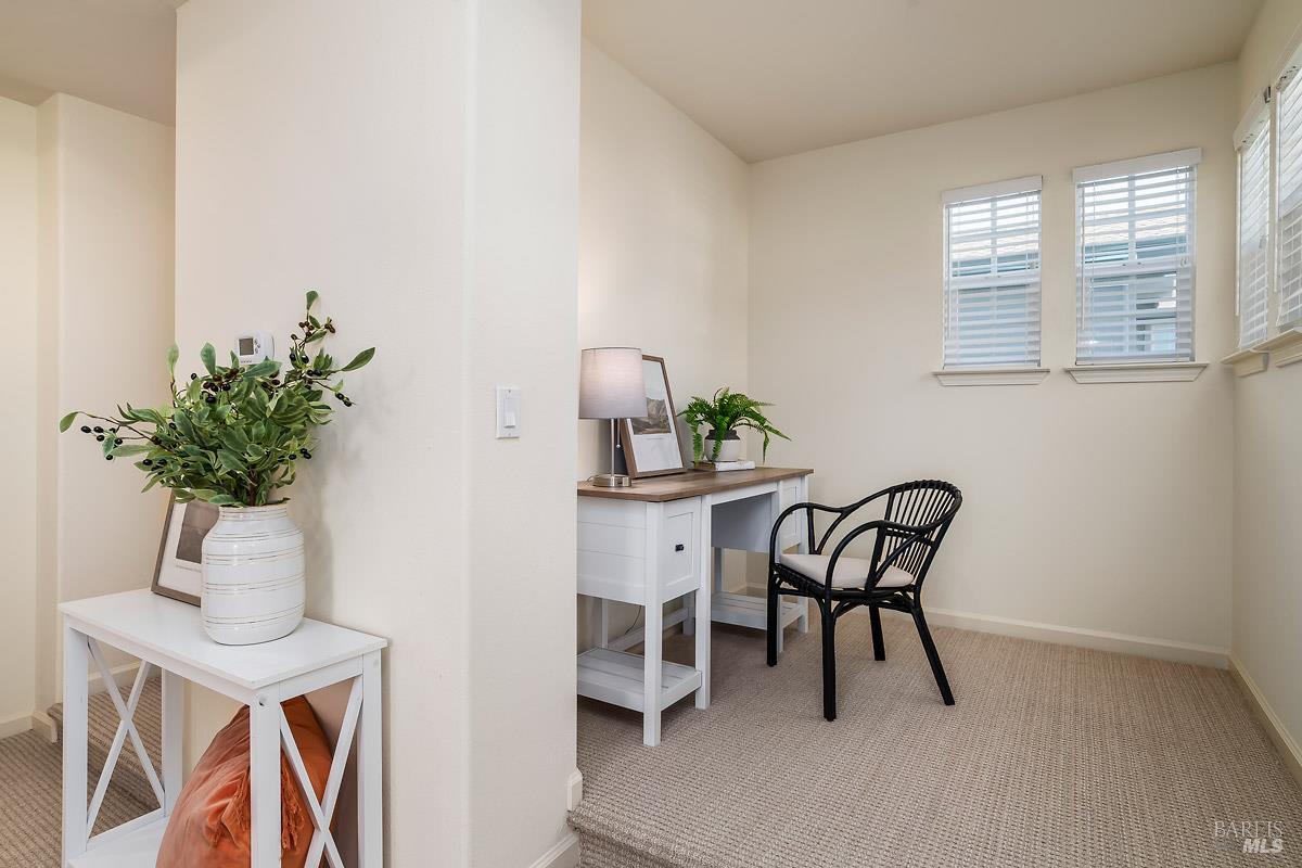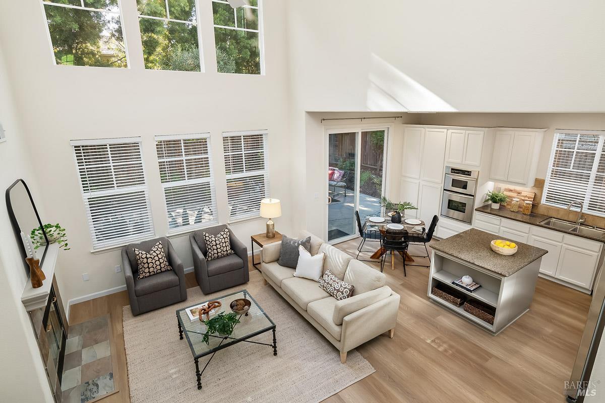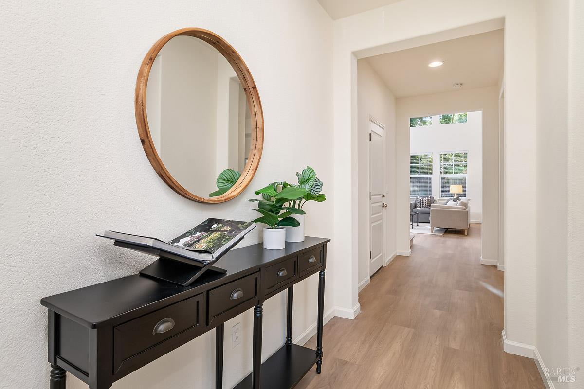 Beautifully updated home at the end of a long, quiet cul-de-sac in southern Novato's coveted Pointe Marin neighborhood. Built by Centex in 2003, the floor plan features 3BD/3.5BA plus an office/den, with the rare benefit that every bedroom is its own private suite. A full bedroom and bathroom suite on the main level provides flexibility for guests or multigenerational living. The family room features an 18-foot ceiling and is filled with natural light, creating an airy, open feel. Designed for everyday living and entertaining, the open-plan kitchen flows seamlessly into the family room, forming a spacious great-room style layout. A formal dining room is perfect for quiet dinners and holiday parties. Enjoy thoughtful improvements, including new luxury vinyl plank flooring and carpet, freshly painted cabinets, a new dishwasher, and upgraded light and plumbing fixtures. Upstairs, the expansive primary suite features a retreat, perfect for a reading nook, Peloton, nursery, or second office. You'll appreciate the ease of an upstairs laundry room. Comfort is covered year-round with a newer Lennox furnace and A/C. Step outside to a backyard framed by mature trees, offering exceptional screening and a peaceful space for outdoor dining or relaxing. Additional highlights include a 2-car garage and a cozy gas fireplace with a new slate hearth. Amenities include a nearby neighborhood park with a brand new play structure, upscale shopping/dining at Pacheco Plaza, and close proximity to golf/tennis at Marin Country Club.