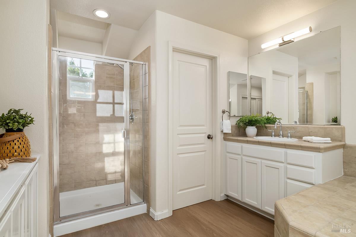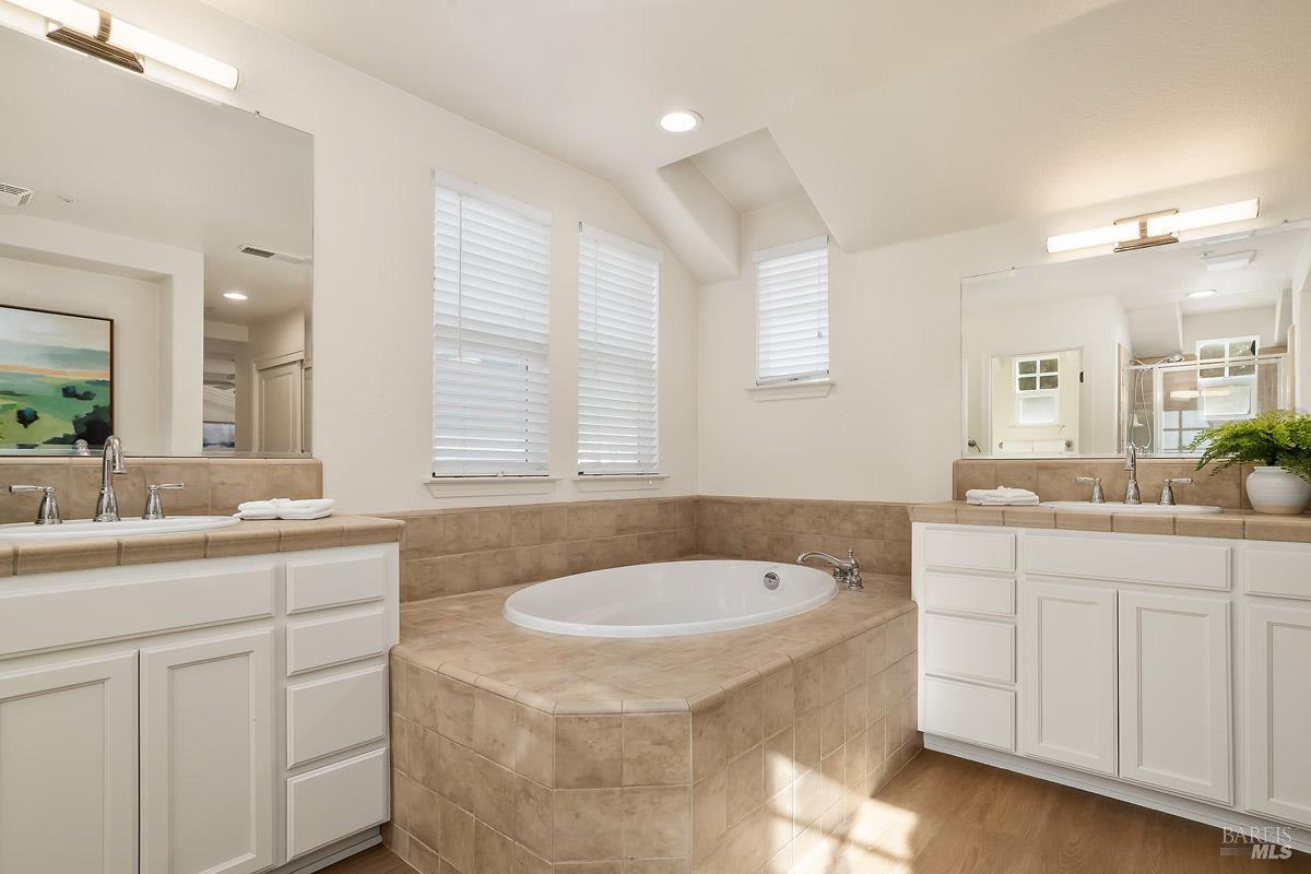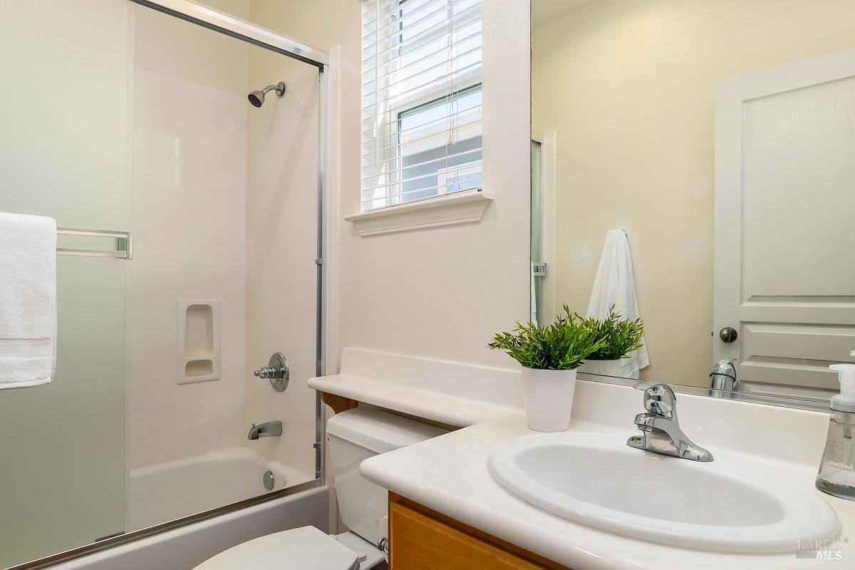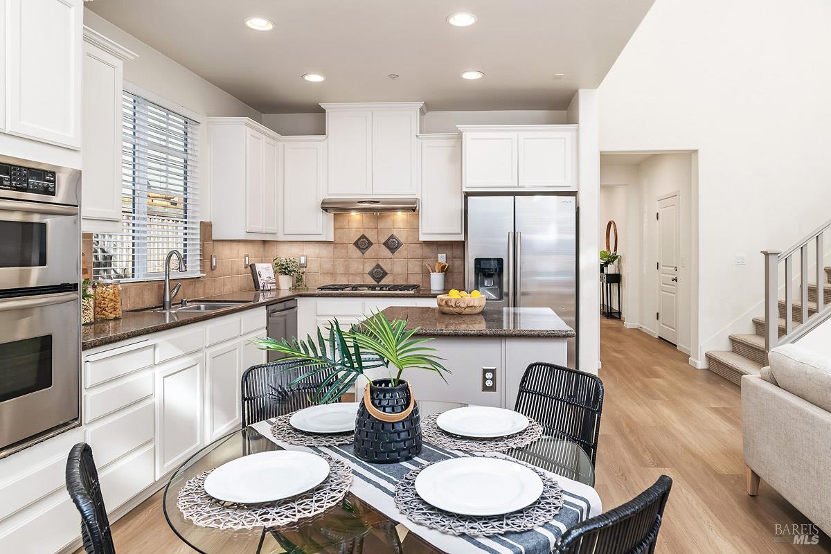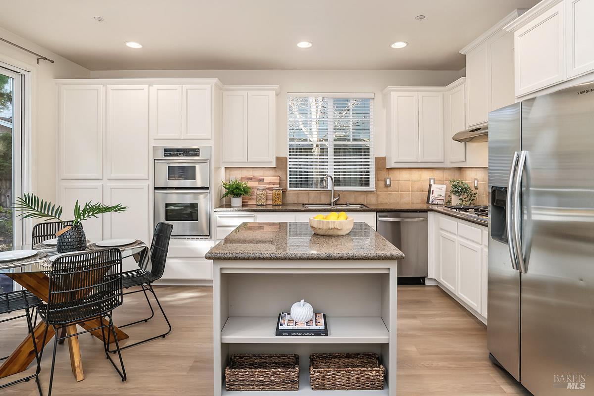 Beautifully updated home at the end of a long, quiet cul-de-sac in southern Novato's coveted Pointe Marin neighborhood. Built by Centex in 2003, the floor plan features 3BD/3.5BA plus an office/den, with the rare benefit that every bedroom is its own private suite. A full bedroom and bathroom suite on the main level provides flexibility for guests or multigenerational living. The family room features an 18-foot ceiling and is filled with natural light, creating an airy, open feel. Designed for everyday living and entertaining, the open-plan kitchen flows seamlessly into the family room, forming a spacious great-room style layout. A formal dining room is perfect for quiet dinners and holiday parties. Enjoy thoughtful improvements, including new luxury vinyl plank flooring and carpet, freshly painted cabinets, a new dishwasher, and upgraded light and plumbing fixtures. Upstairs, the expansive primary suite features a retreat, perfect for a reading nook, Peloton, nursery, or second office. You'll appreciate the ease of an upstairs laundry room. Comfort is covered year-round with a newer Lennox furnace and A/C. Step outside to a backyard framed by mature trees, offering exceptional screening and a peaceful space for outdoor dining or relaxing. Additional highlights include a 2-car garage and a cozy gas fireplace with a new slate hearth. Amenities include a nearby neighborhood park with a brand new play structure, upscale shopping/dining at Pacheco Plaza, and close proximity to golf/tennis at Marin Country Club.