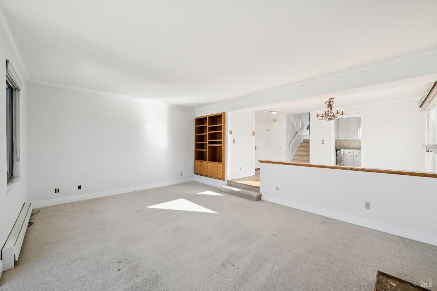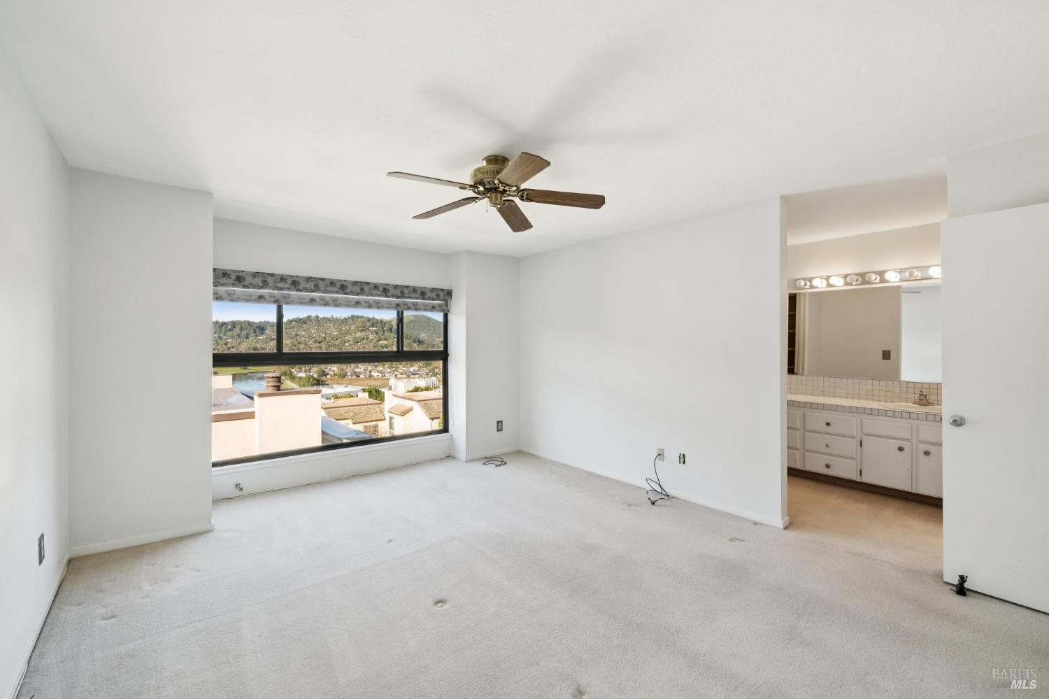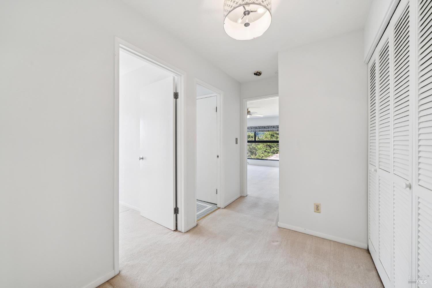 Light-filled original Eagle Point townhouse ideally located in the heart of Greenbrae with picturesque views of Mount Tamalpais. This spacious approximately 1,336 square foot, 2-bedroom, 2.5-bath residence offers a thoughtful layout and exceptional convenience to top-rated schools, shopping, and transportation. The main level features a large sunken living room with a cozy fireplace, creating an inviting space for relaxing or entertaining. An adjacent dining area opens to a private deck perfect for morning coffee or evening gatherings while the kitchen is equipped with newer appliances and ample storage. Upstairs, both bedrooms are generously sized, including a primary suite with a walk-in closet. Laundry is conveniently located on the bedroom level for everyday ease. Additional highlights include two-car garage parking, a large private storage unit, and community amenities including a swimming pool. With scenic views, abundant space, and an unbeatable Greenbrae location, this home offers comfort, functionality, and lifestyle all in one. Enjoy it as-is or update to your taste - the potential here is endless.