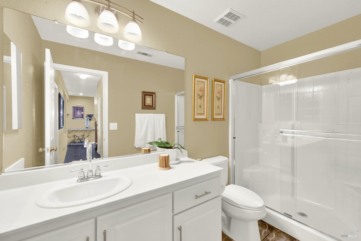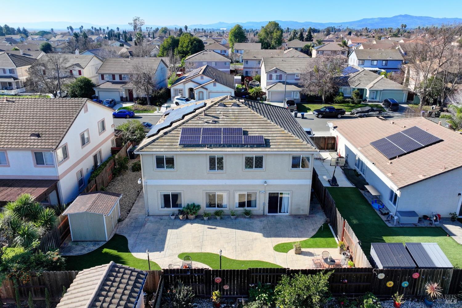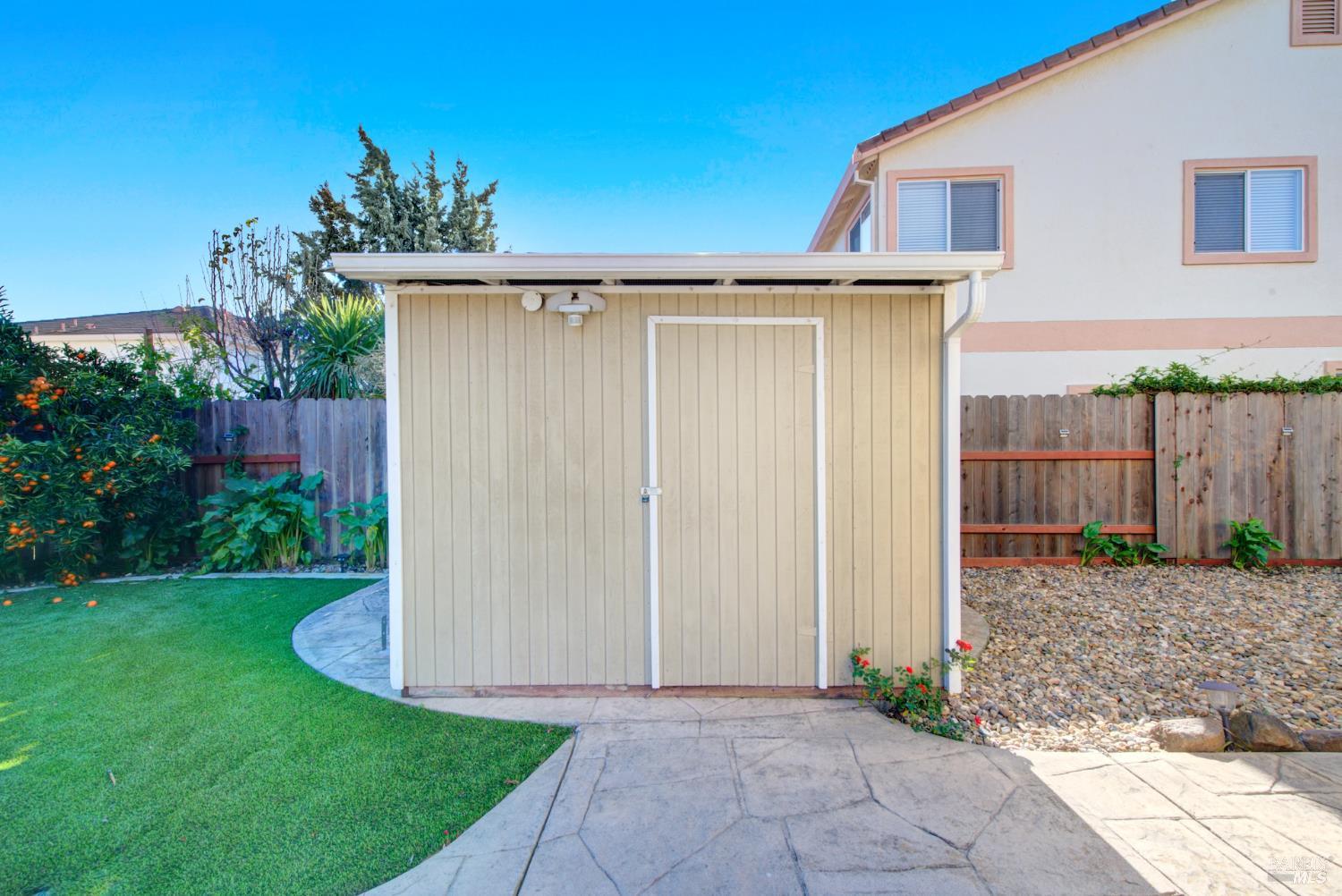 Welcome to this incredible 5 bedroom, 3 bath home with loft, where curb appeal meets functional elegance. The beautifully landscaped front yard features a tiered patio area perfect for welcoming guests and lovely walkway that leads you to the entry. Step inside to discover rich wood flooring and soaring high ceilings that define the living and dining room combination, creating an immediate sense of space and sophistication. The heart of the home flows seamlessly into the great room, where a cozy fireplace sets the scene for gathering with loved ones. This inviting space opens directly to the updated kitchen, a chef's dream featuring crisp white cabinets, a convenient closet pantry, and a generous island ideal for meal prep and casual dining. The kitchen also boasts a sizable dining area, making it easy to entertain while cooking. Designed with versatility in mind, this home includes a full bedroom and bath on the main floor perfect for multigenerational living, guests, or a home office. The low-maintenance landscaping continues in the backyard, where you'll find practical turf grass, multiple patio areas for outdoor entertaining, and a large storage shed. Speaking of storage, the oversized 2-car garage provides plenty of room for vehicles, tools, and all your extras, and the expansive driveway offers excellent RV parking potential. This thoughtfully designed home offers the perfect blend of style, space, and functionality for modern living.