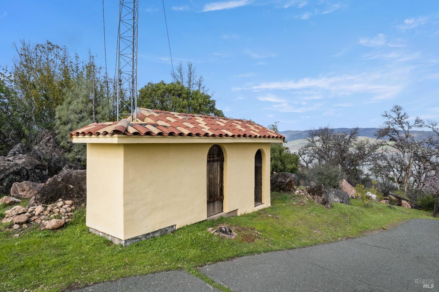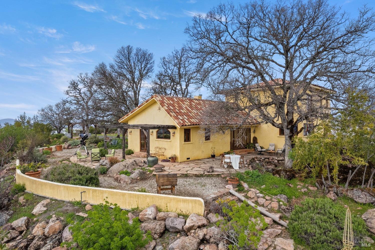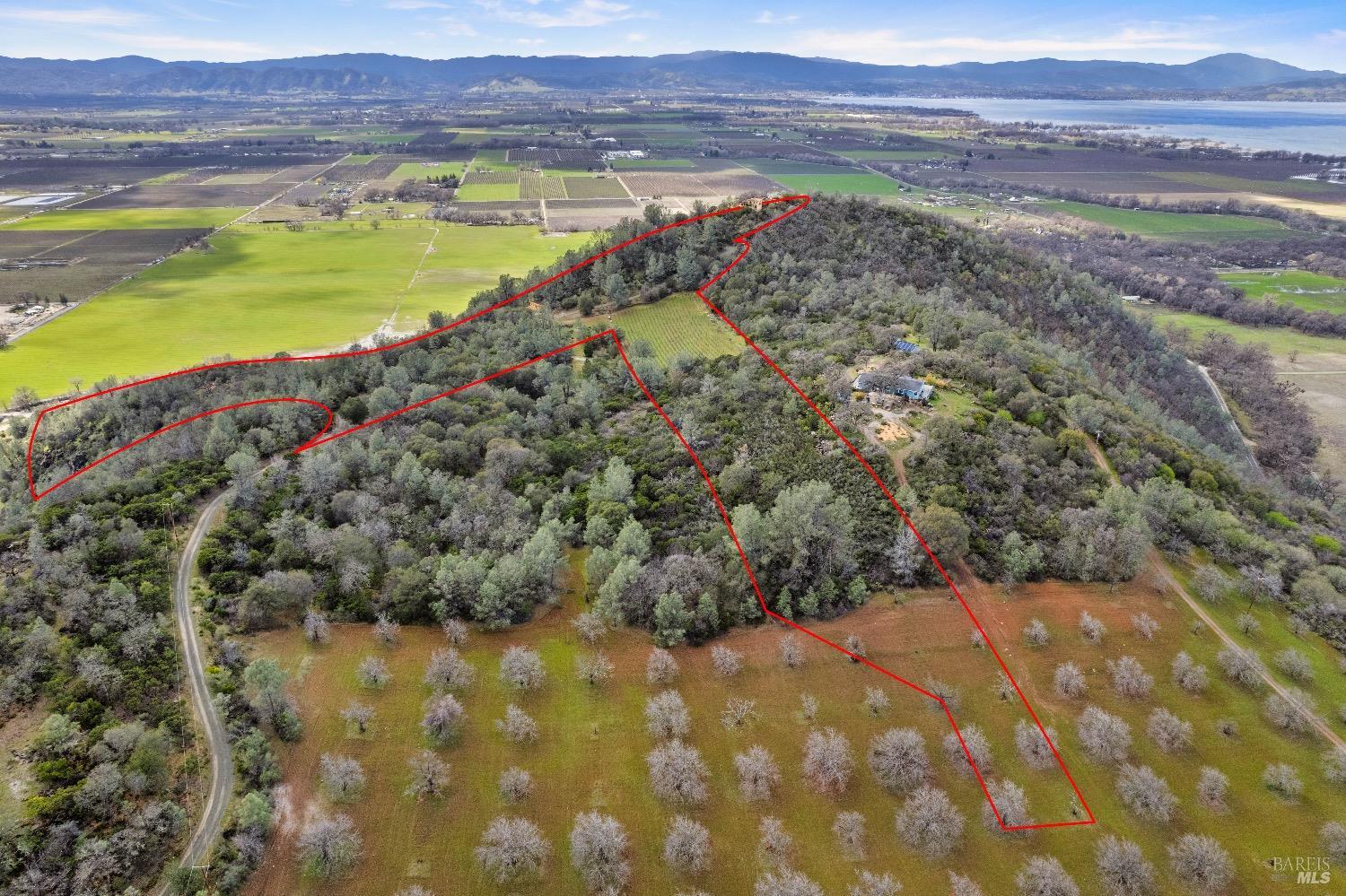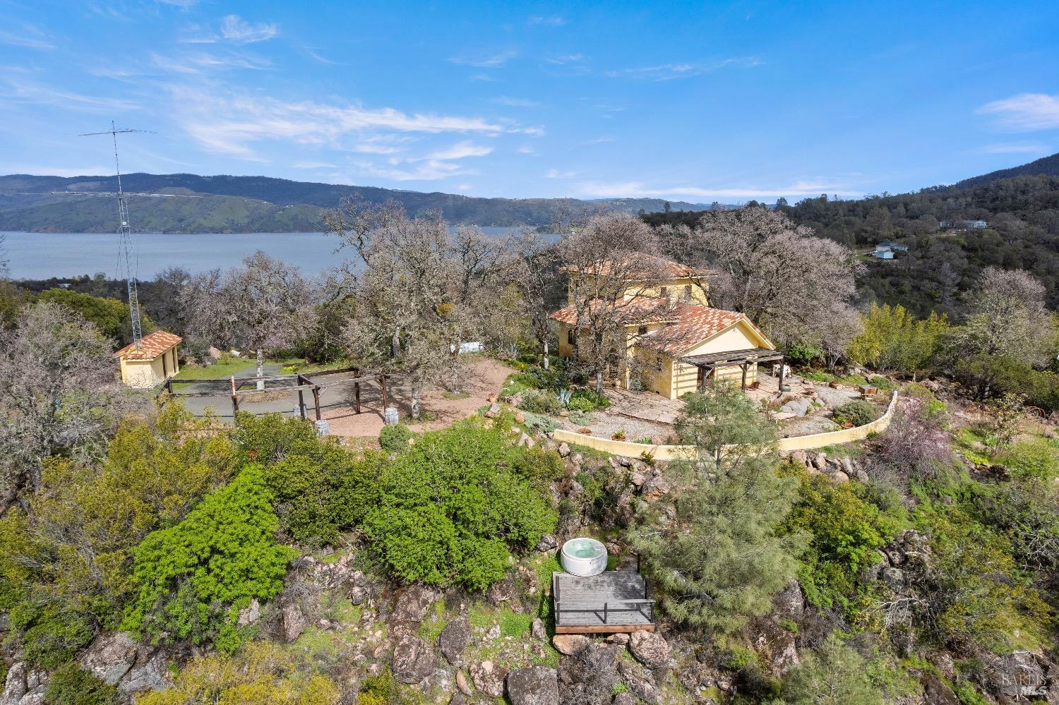 Incredible Tuscan Villa atop Mount Dali-Dona with incredible panoramic views. Set on 27-/+ Acres. Comprised of two parcels. The property hosts a 1.6 acre Rhone varietal hobby vineyard & a detached structure previously used as a winery. You will feel like the rest of the world disappears the moment you enter this property. As you make your way up the wildflower-lined driveway, the manzanita and mature oaks will welcome you to this incredible home. The residence is built with imported antique beams, French country-style kitchen with fireplace, quartzite counters, unique old-world aesthetics, heated floors, dual solar/PG&E power, and wood stove in the living room. The Main Home features 3 levels, 3 bedrooms and 3 bathrooms, wine cellar, large basement, formal living room, office & walk-in pantry. Beyond the home, a raised bed garden with a planting house, fruit trees and private hiking trails. This expansive yet cozy home is full of charm and has unparalleled views from every angle. Close to downtown Kelseyville, restaurants and shops. Borders the Clear Lake State Park with great hikes, lake access and camping. Secluded and peaceful, this property offers an incredible opportunity to observe wildlife and disconnect from the day-to-day hassle. ADU Potential.