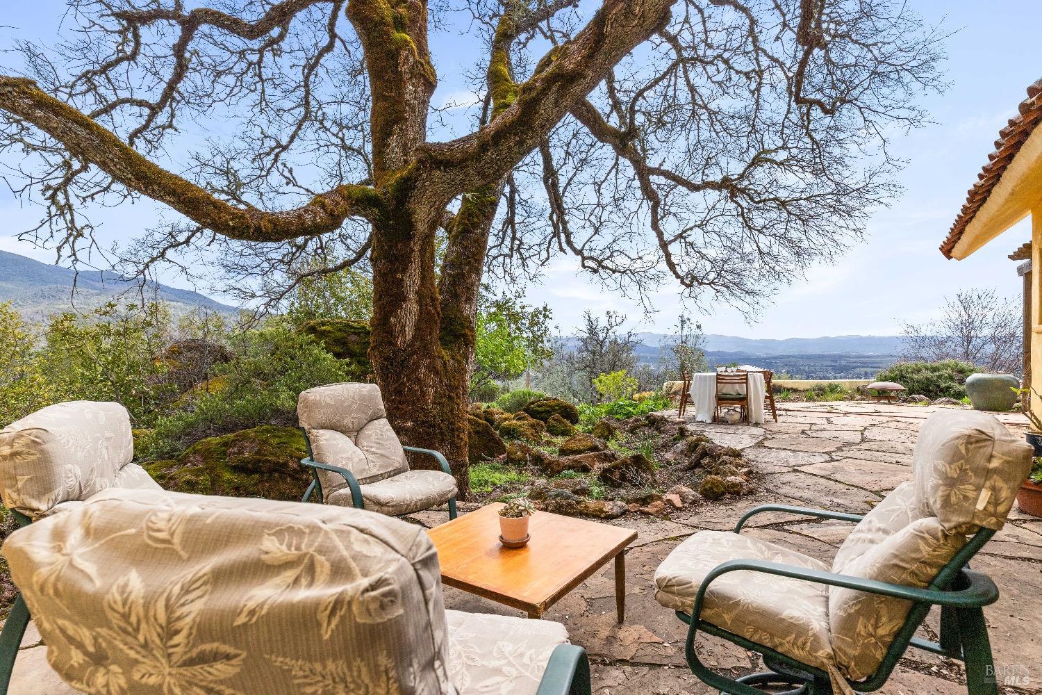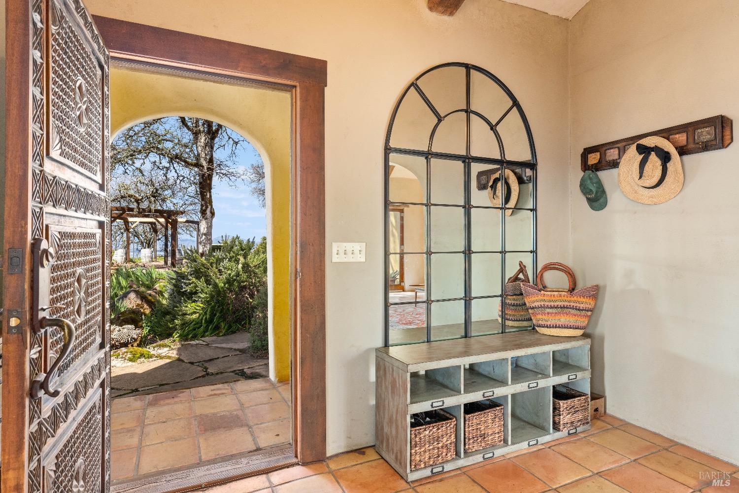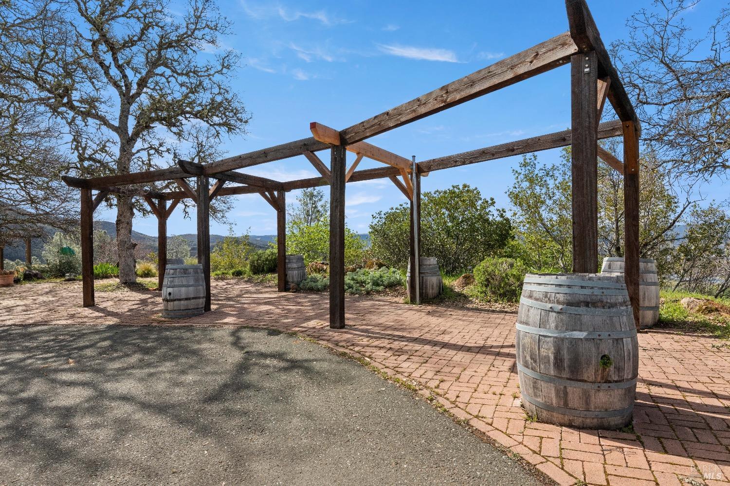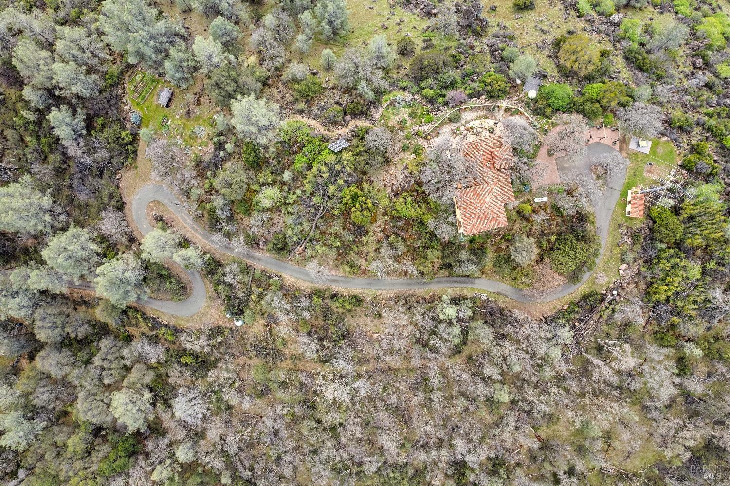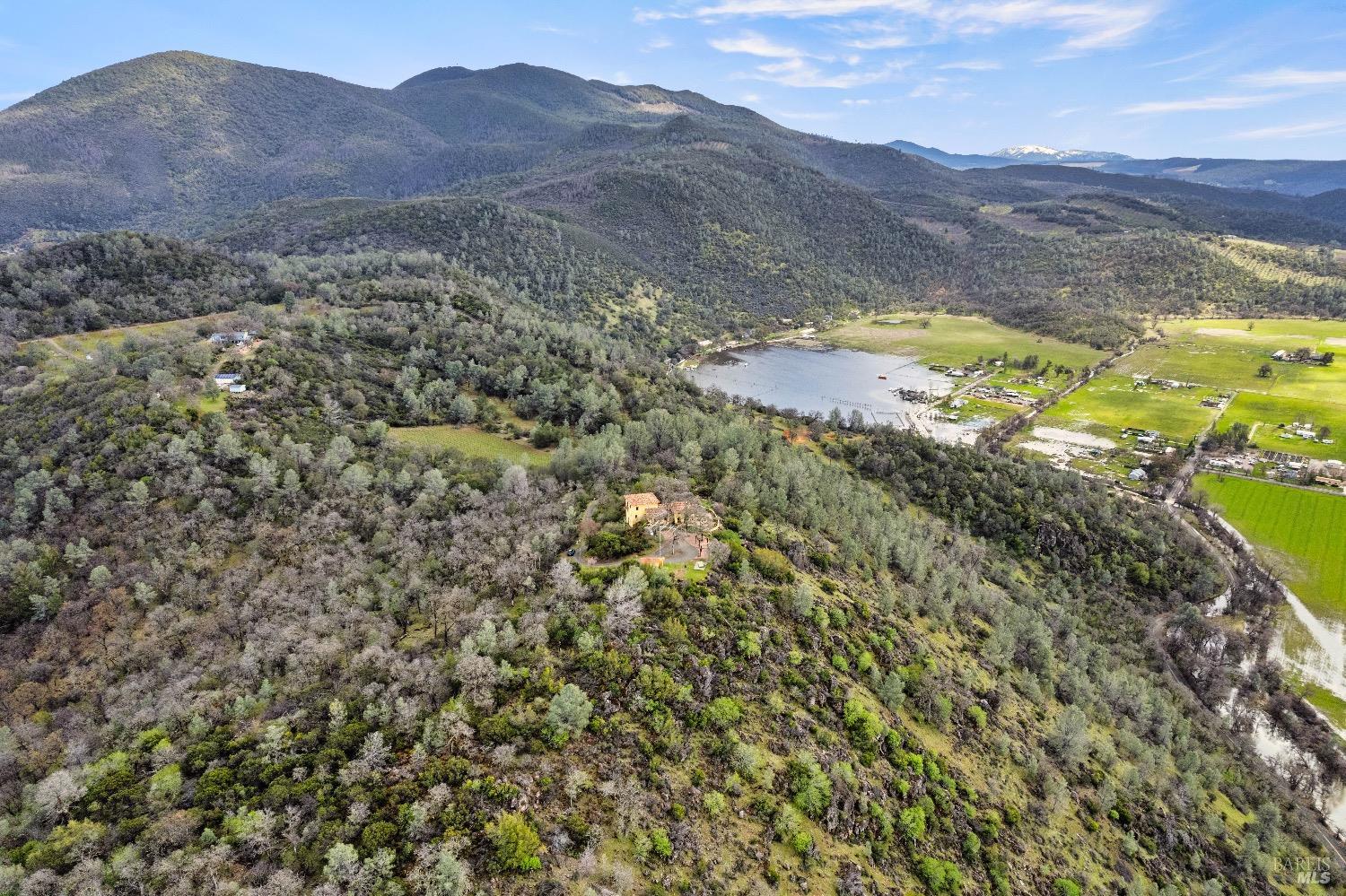 Incredible Tuscan Villa atop Mount Dali-Dona with incredible panoramic views. Set on 27-/+ Acres. Comprised of two parcels. The property hosts a 1.6 acre Rhone varietal hobby vineyard & a detached structure previously used as a winery. You will feel like the rest of the world disappears the moment you enter this property. As you make your way up the wildflower-lined driveway, the manzanita and mature oaks will welcome you to this incredible home. The residence is built with imported antique beams, French country-style kitchen with fireplace, quartzite counters, unique old-world aesthetics, heated floors, dual solar/PG&E power, and wood stove in the living room. The Main Home features 3 levels, 3 bedrooms and 3 bathrooms, wine cellar, large basement, formal living room, office & walk-in pantry. Beyond the home, a raised bed garden with a planting house, fruit trees and private hiking trails. This expansive yet cozy home is full of charm and has unparalleled views from every angle. Close to downtown Kelseyville, restaurants and shops. Borders the Clear Lake State Park with great hikes, lake access and camping. Secluded and peaceful, this property offers an incredible opportunity to observe wildlife and disconnect from the day-to-day hassle. ADU Potential.