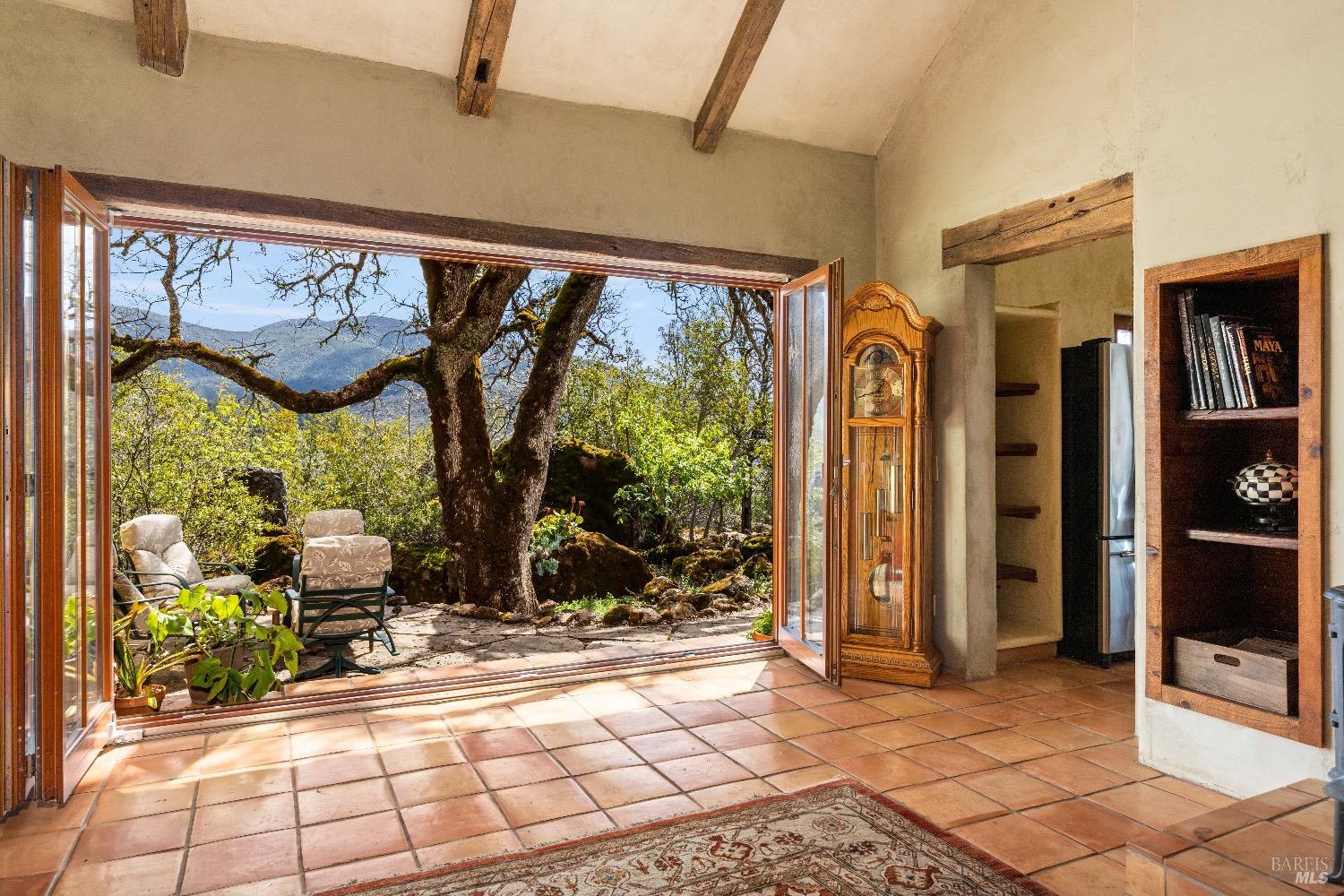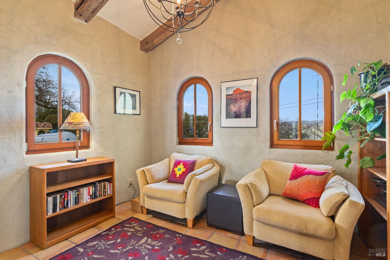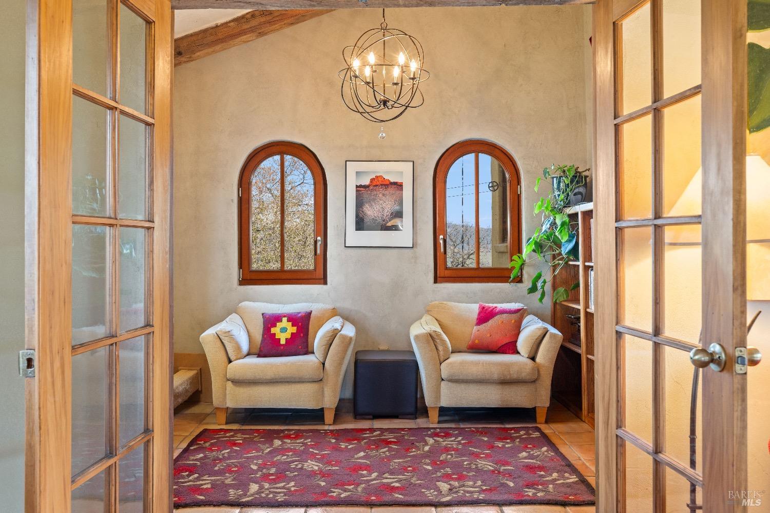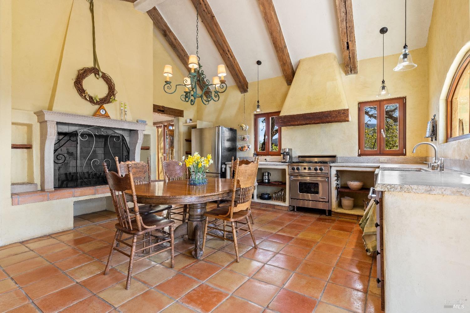 Incredible Tuscan Villa atop Mount Dali-Dona with incredible panoramic views. Set on 27-/+ Acres. Comprised of two parcels. The property hosts a 1.6 acre Rhone varietal hobby vineyard & a detached structure previously used as a winery. You will feel like the rest of the world disappears the moment you enter this property. As you make your way up the wildflower-lined driveway, the manzanita and mature oaks will welcome you to this incredible home. The residence is built with imported antique beams, French country-style kitchen with fireplace, quartzite counters, unique old-world aesthetics, heated floors, dual solar/PG&E power, and wood stove in the living room. The Main Home features 3 levels, 3 bedrooms and 3 bathrooms, wine cellar, large basement, formal living room, office & walk-in pantry. Beyond the home, a raised bed garden with a planting house, fruit trees and private hiking trails. This expansive yet cozy home is full of charm and has unparalleled views from every angle. Close to downtown Kelseyville, restaurants and shops. Borders the Clear Lake State Park with great hikes, lake access and camping. Secluded and peaceful, this property offers an incredible opportunity to observe wildlife and disconnect from the day-to-day hassle. ADU Potential.