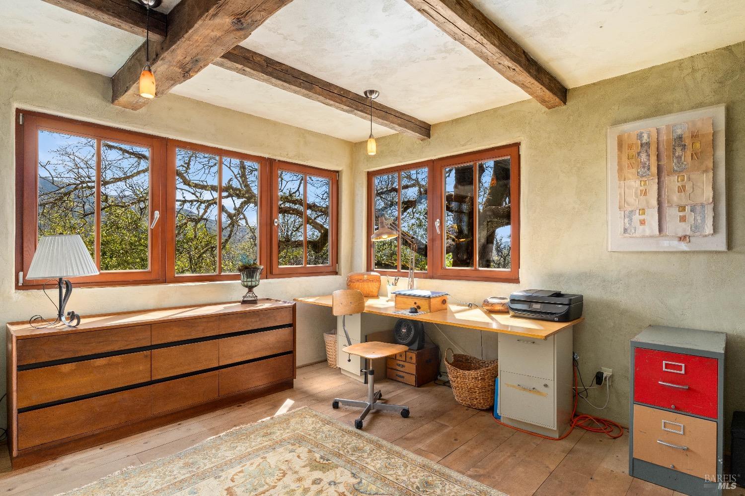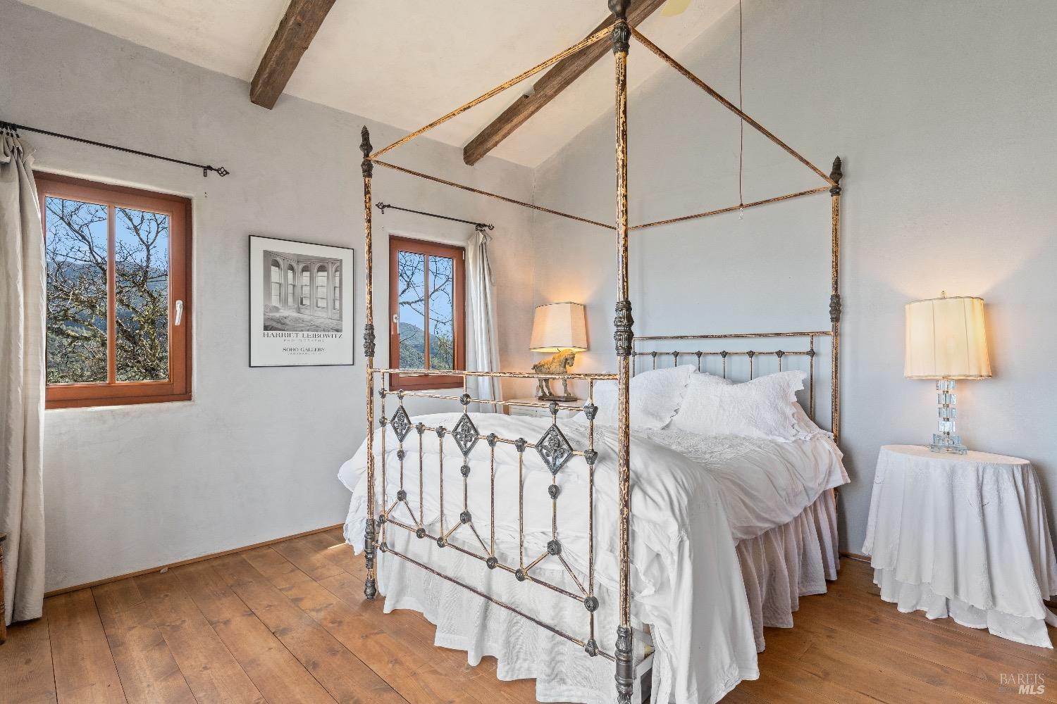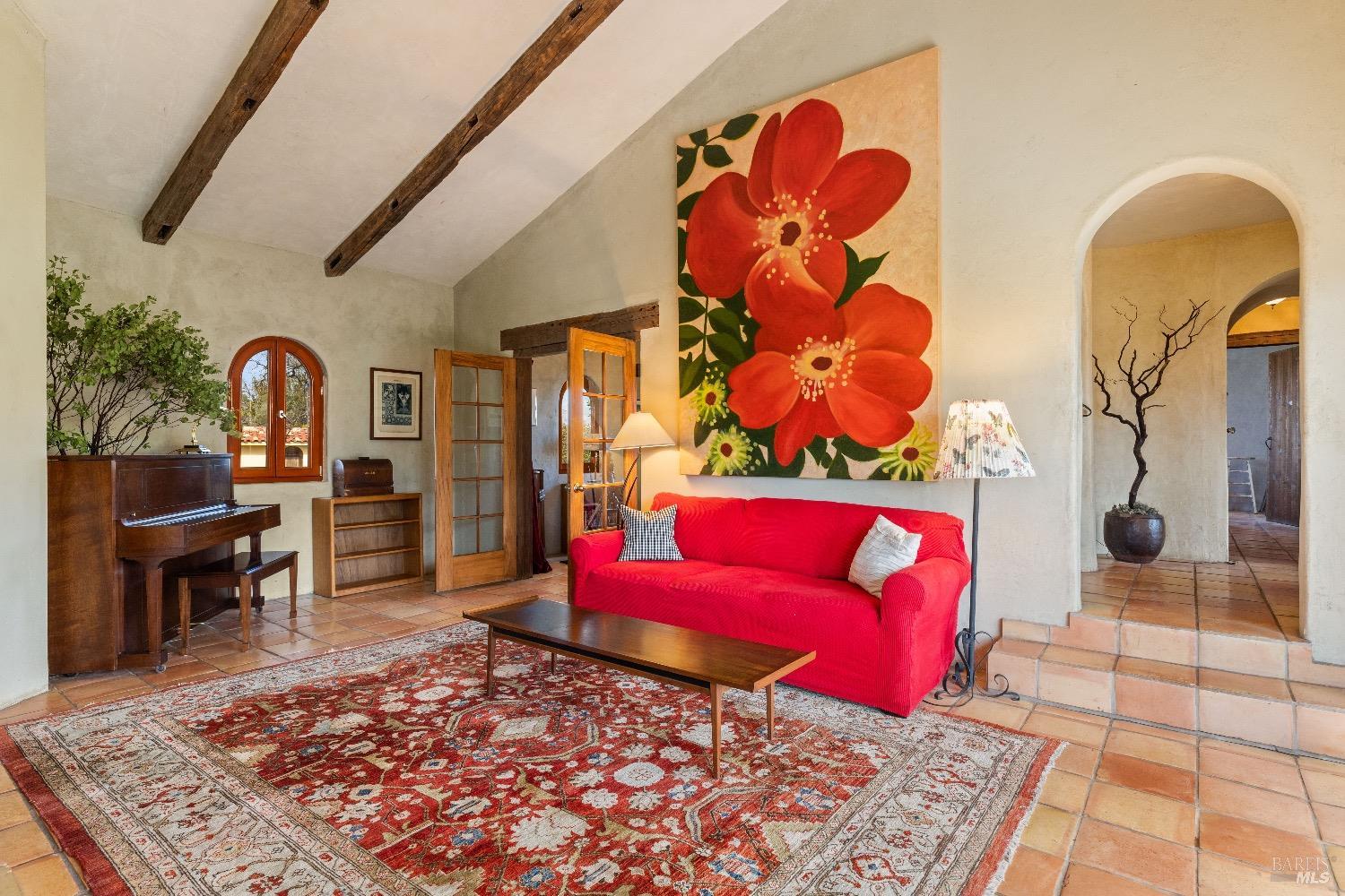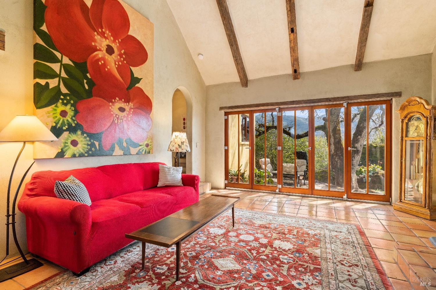 Incredible Tuscan Villa atop Mount Dali-Dona with incredible panoramic views. Set on 27-/+ Acres. Comprised of two parcels. The property hosts a 1.6 acre Rhone varietal hobby vineyard & a detached structure previously used as a winery. You will feel like the rest of the world disappears the moment you enter this property. As you make your way up the wildflower-lined driveway, the manzanita and mature oaks will welcome you to this incredible home. The residence is built with imported antique beams, French country-style kitchen with fireplace, quartzite counters, unique old-world aesthetics, heated floors, dual solar/PG&E power, and wood stove in the living room. The Main Home features 3 levels, 3 bedrooms and 3 bathrooms, wine cellar, large basement, formal living room, office & walk-in pantry. Beyond the home, a raised bed garden with a planting house, fruit trees and private hiking trails. This expansive yet cozy home is full of charm and has unparalleled views from every angle. Close to downtown Kelseyville, restaurants and shops. Borders the Clear Lake State Park with great hikes, lake access and camping. Secluded and peaceful, this property offers an incredible opportunity to observe wildlife and disconnect from the day-to-day hassle. ADU Potential.