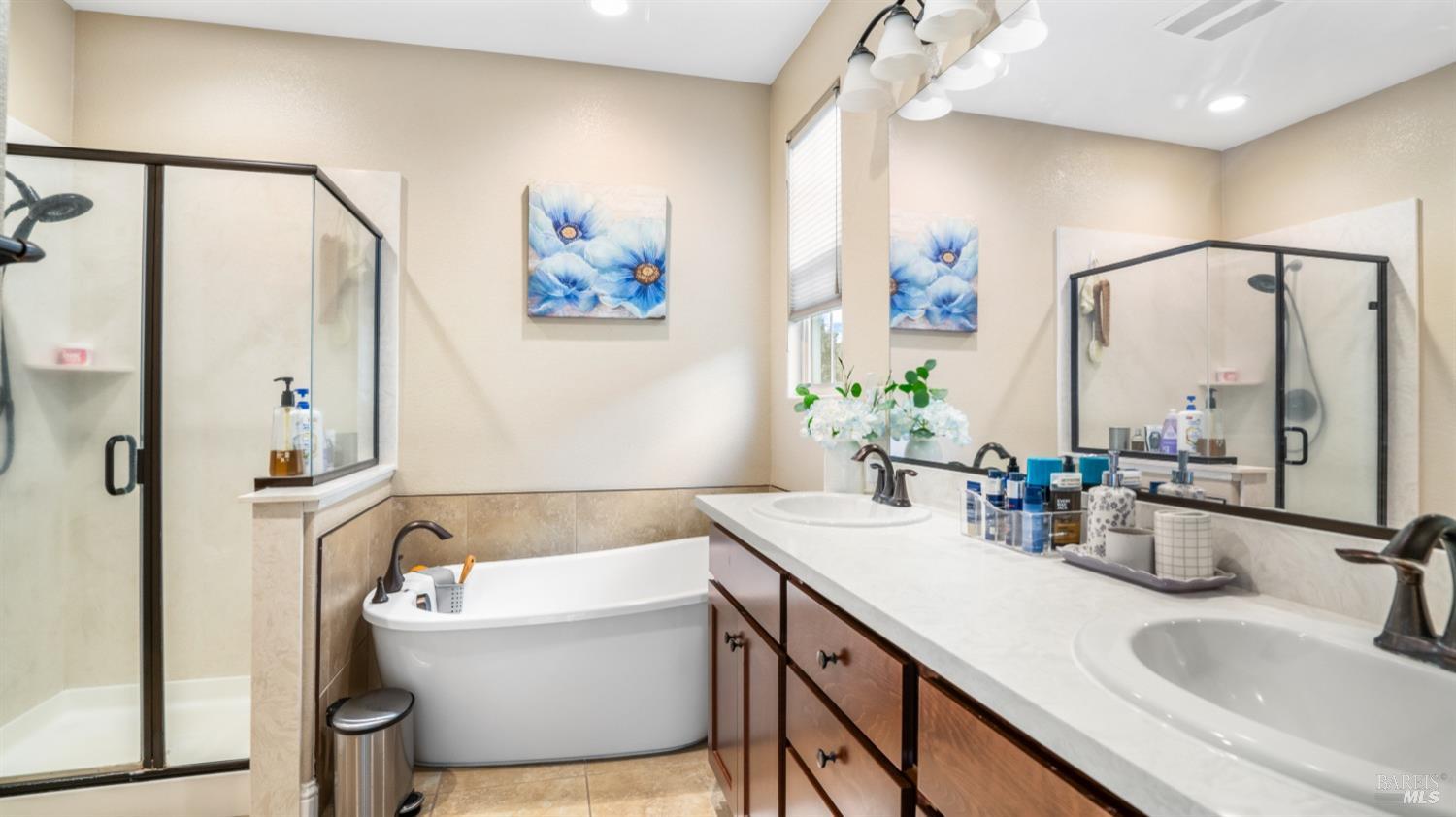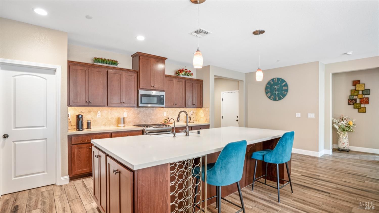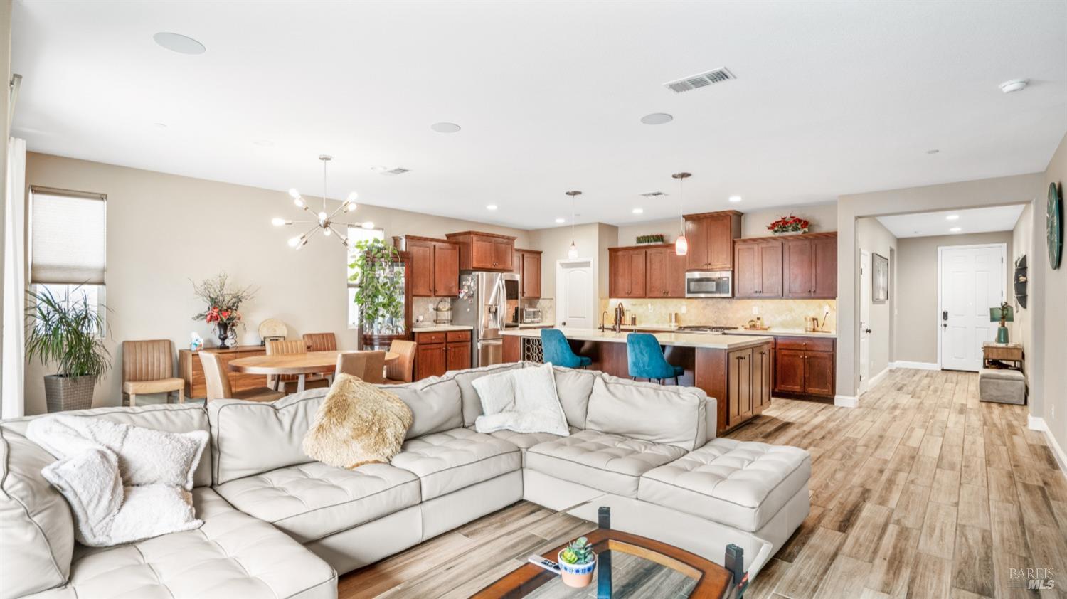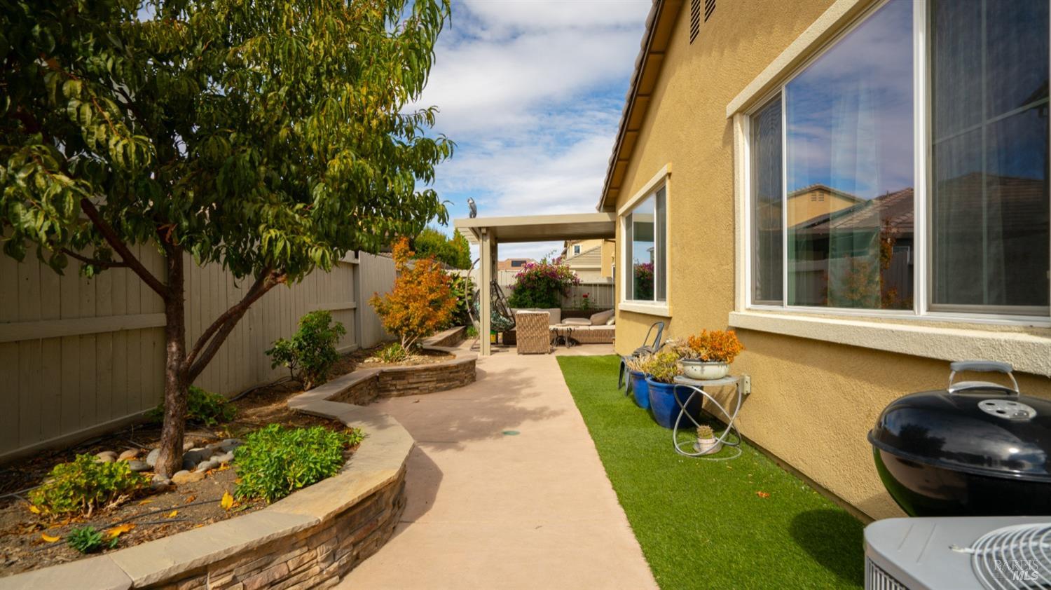 Welcome to your new home at Water Lily Circle, where comfort and charm meet. This beautiful single-story home offers stunning curb appeal and a fully landscaped backyard that's perfect for relaxing or entertaining. As you step inside, you'll immediately appreciate the open, inviting layout with a thoughtful split-bedroom design-perfect for guests, warm wood-look tile, and a spacious entryway that sets the tone for the entire home. The heart of the homethe kitchenis truly a gathering place, featuring a large island, sleek modern light fixtures, and a custom backsplash that adds character. Whether it's a casual breakfast or a family celebration, the cozy seating area and ample counter space make meal prep and entertaining a breeze. With a walk-in pantry and generous cabinet storage, you'll have everything you need right at your fingertips. The serene primary suite is a true retreat, offering plenty of room for a king-size bed and a quiet seating nook. The luxurious soaking tub and custom closet system elevate the space, making it the perfect spot to unwind after a long day. Picture yourself enjoying a relaxing bath or savoring a glass of wine in your private, beautifully landscaped backyard. This home is built with energy efficiency in mind, offering paid solar, an owned water softener, tankless water heater, and an ecobee thermostat, making it as sustainable as it is comfortable. Nestled in the vibrant Brighton Landing community, there's no HOA to worry about. You'll love being just minutes from the new Play for All park, Kairos School, and all the conveniences you need, including premium outlets, highways, CMF, TAFB, and so much more. Let Vacaville welcome you home!