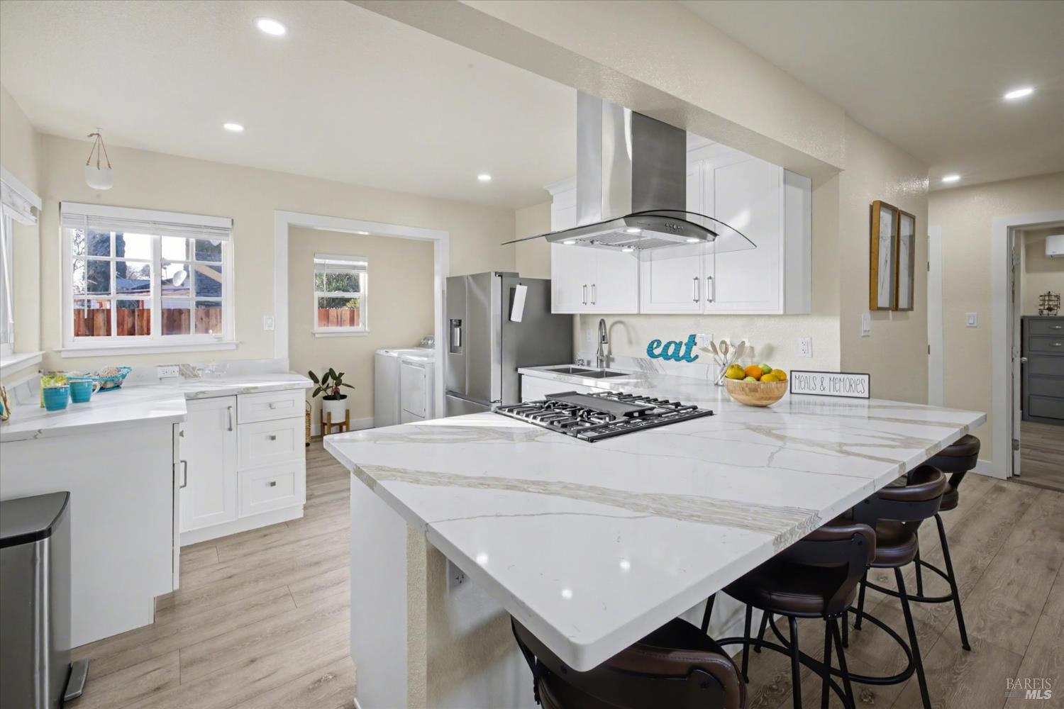 Welcome to your very new home! The house has all new electrical panel, wiring, water supply lines, plumbing, insulation, drywall, new flooring, cabinets, countertops, paint, windows, doors, exterior stucco, roof, gutters down spots HVAC system, fencing, concrete patio, and artificial grass. It's absolutely stunning and something you need to see.