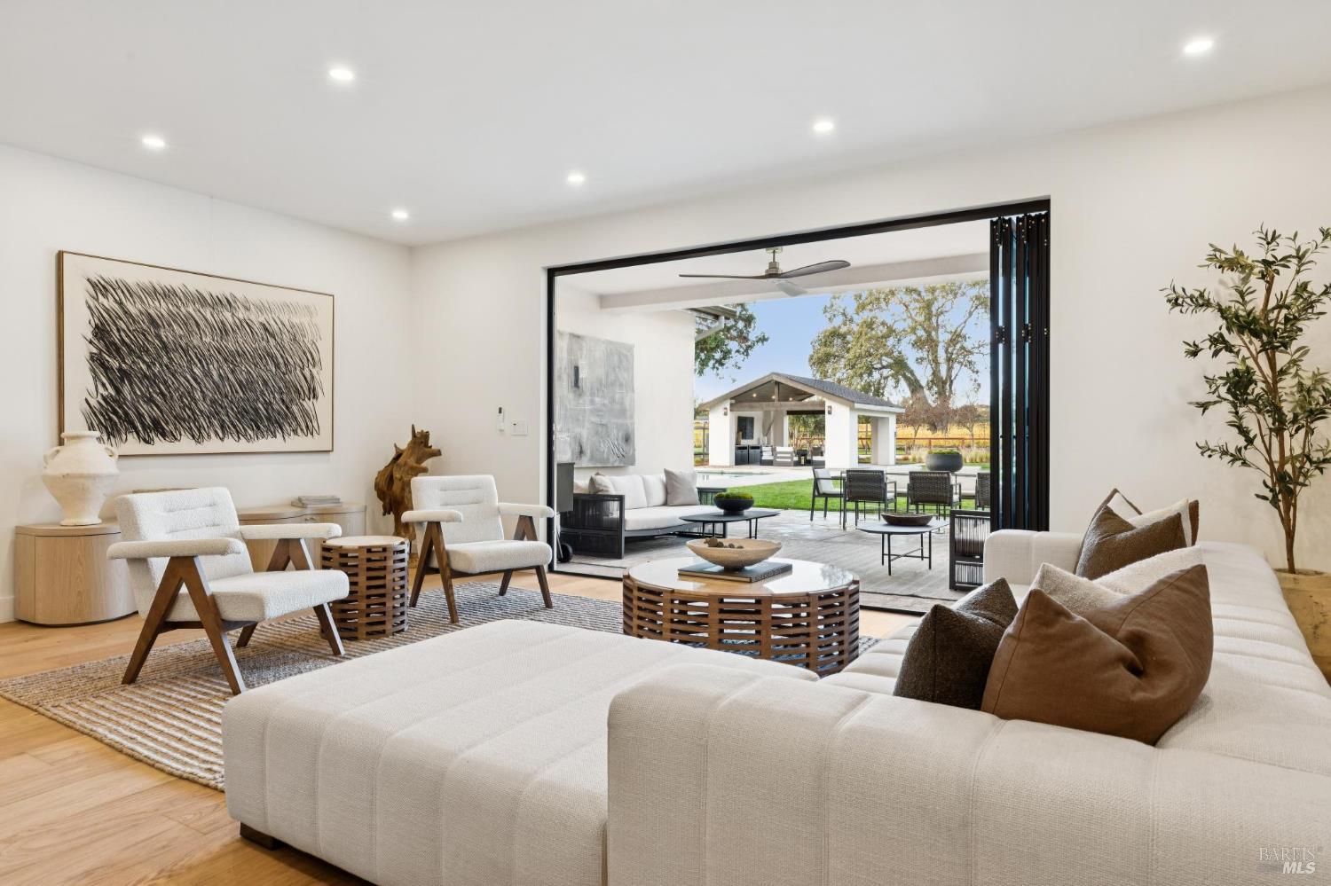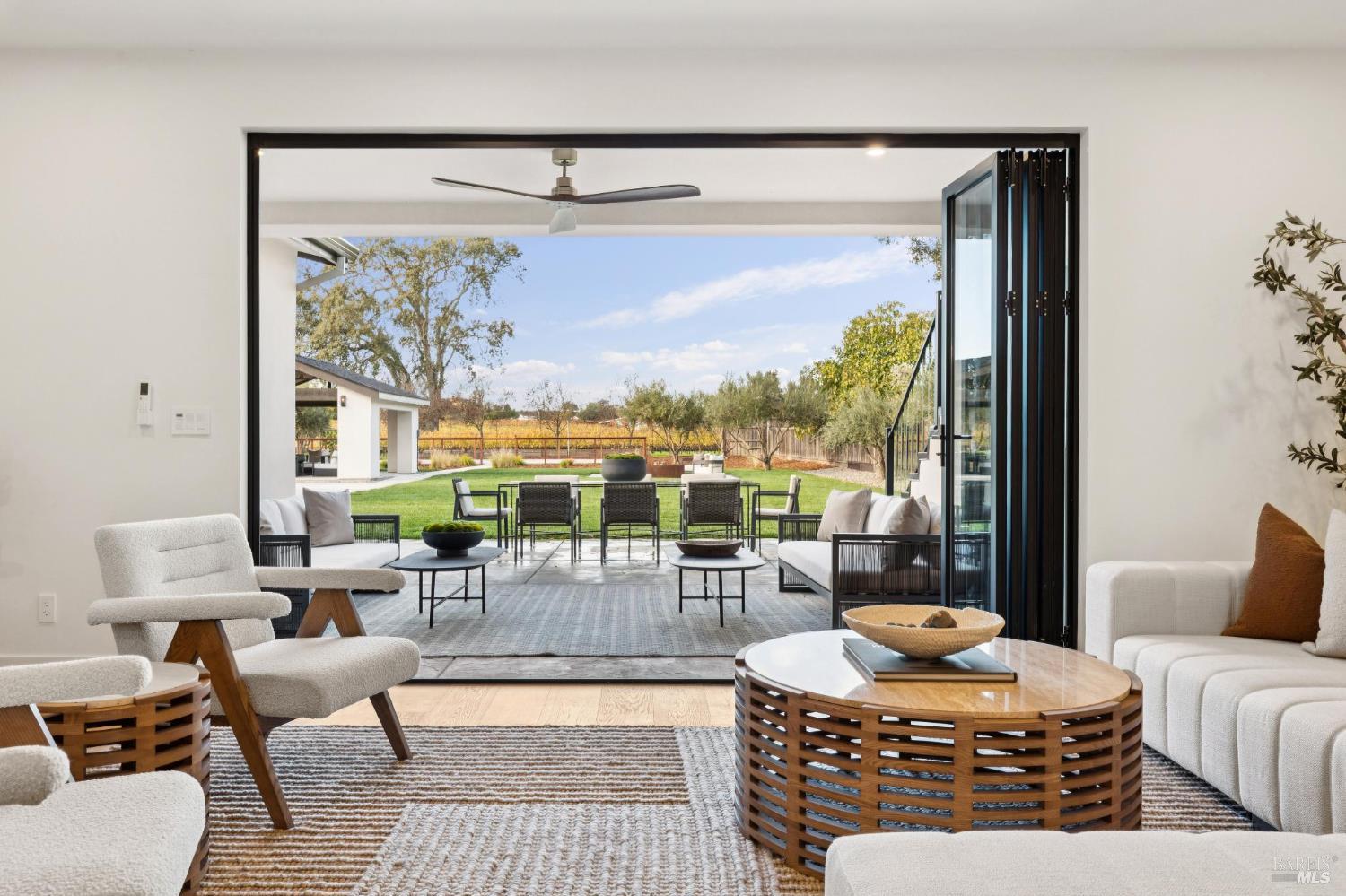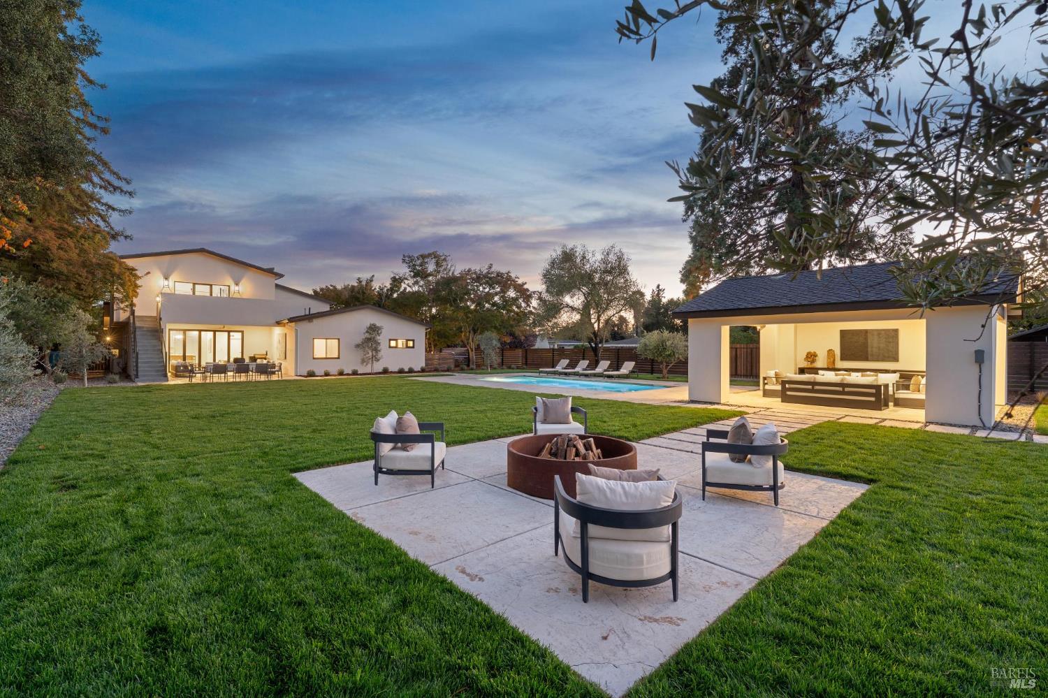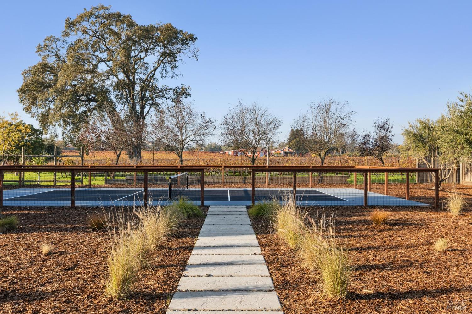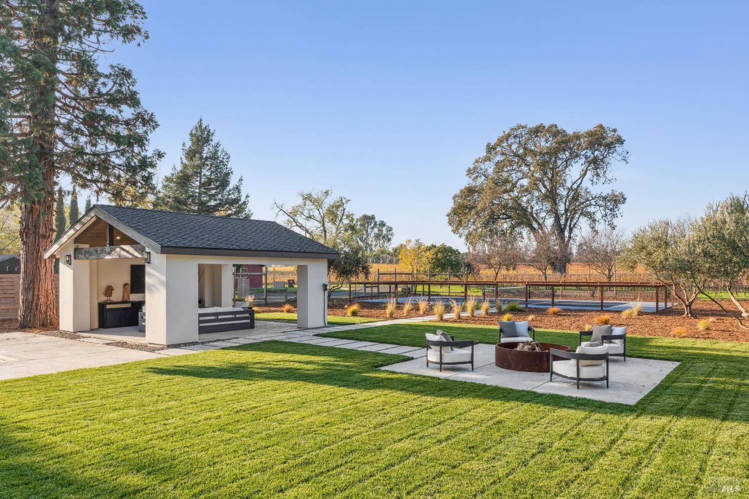 Exceptional Napa Valley lifestyle property located on desirable East Side featuring 5 BR 4 BA modern residence with 3324 +/-sq ft of refined living space on .55 acre with resort-like grounds & stunning vineyard & mountain views minutes to downtown Napa & Yountville. Completed in 2025 extensively renovated & rebuilt, this luxury residence embodies Wine Country living with outdoor features including 14' x 32' pool, 20' x 20' pavilion with shiplap ceilings & recessed lighting, built-in copper firepit with seating area, fenced-in pickleball court & mature imported olive trees - creating an extraordinary Napa Valley retreat. Designed for seamless indoor-outdoor living, great room with retractable doors transitions to spacious lanai with outdoor seating & dining area. Gourmet kitchen curated with custom White Oak inset cabinetry, marble countertops, premium Thermador appliances & spacious center island with seating opens to dining room featuring custom built-in bar with 2 Zephyr wine coolers & living room with electric fireplace both spaces enhanced by vaulted exposed wood beam ceilings. 5 BRs feature 3 ensuites with 2 large upper-level main ensuites, each with vaulted exposed wood beam ceilings, large walk-in closets & private balconies capturing extraordinary views! 3 BRs located on main level adjacent to 2 full baths. Wide plank White Oak flooring, luxury lighting, Signature Hardware & level 5 smooth walls throughout elevate the entire home. Fantastic location walking distance to Silverado Resort & Spa featuring golf, tennis & dining including market/bakery with Starbucks!