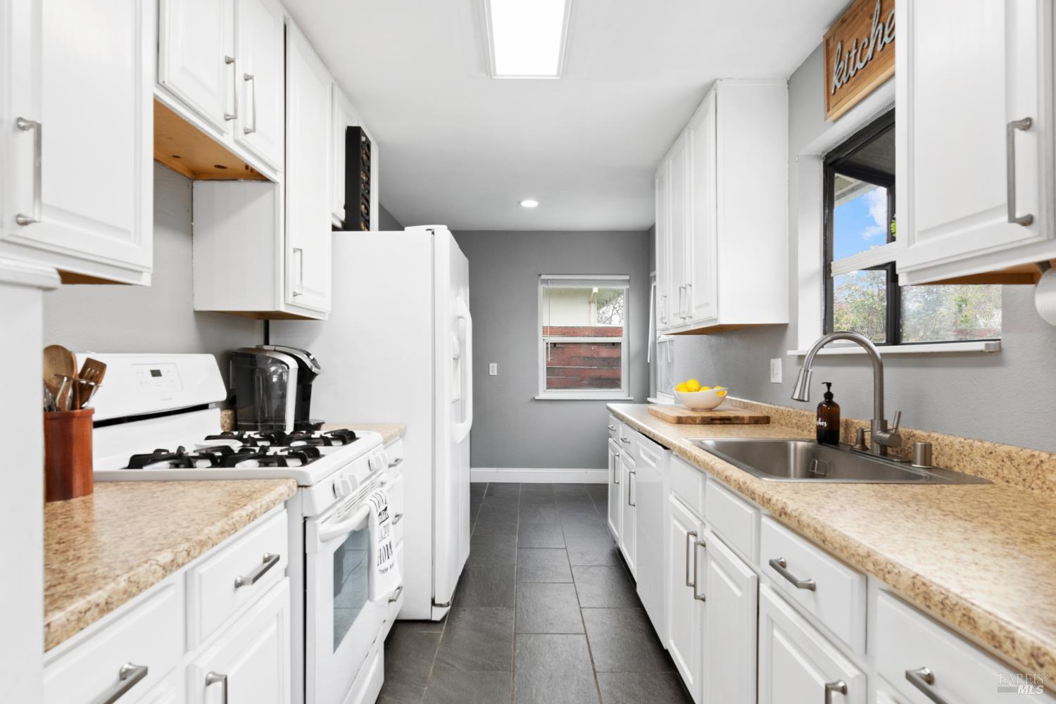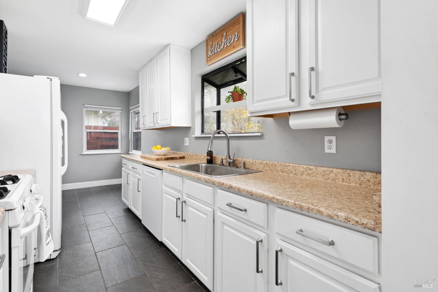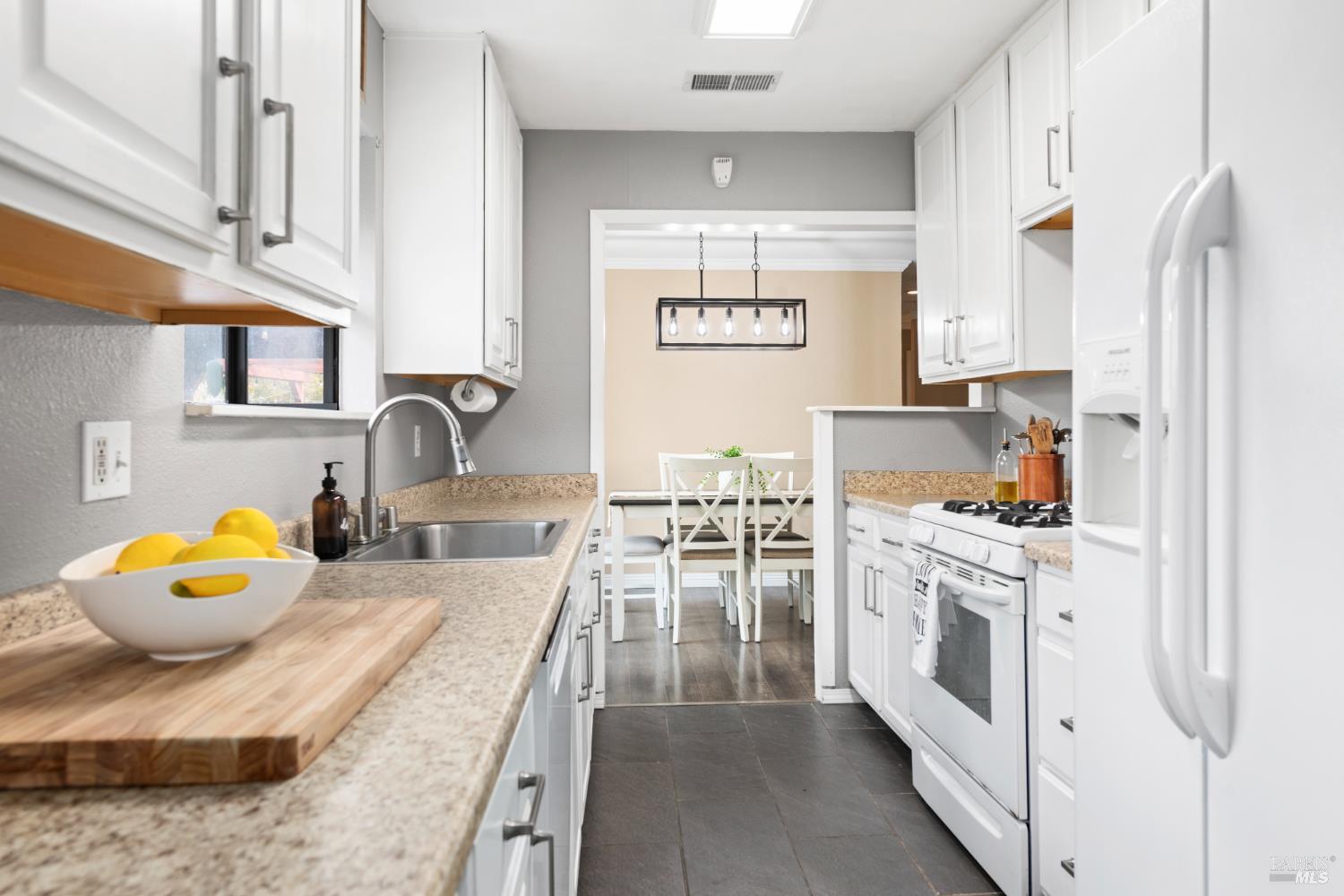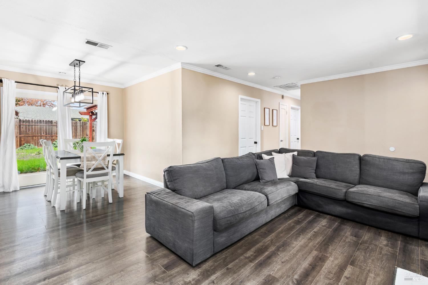 Welcome Home to this beautifully updated single-level gem in the heart of downtown Fairfield where comfort, convenience, and charm come together. Perfect for first-time buyers or those looking to downsize! This 3 bedroom, 1 bath home offers 1,034 sq ft of thoughtfully designed living space that feels open, bright, and incredibly functional. The interior has been tastefully refreshed with beautiful laminate flooring & just installed new carpet in All 3 bedrooms! A stylishly updated bathroom vanity with new countertop and faucet. The kitchen features slate tile flooring, painted cabinetry, updated hardware, and a neutral palette creating a warm and inviting space for everyday living. Enjoy the benefits of major system and cosmetic 2018 upgrades, including a new roof, exterior paint, new furnace, new interior doors and trim, updated baseboards, new blinds, and updated outlets, switches, and plate covers throughout. Lighting upgrades include recessed lighting and updated fixtures enhancing both style and functionality. Outside, the property sits on a generous 0.14-acre lot, offering space, privacy, and flexibility! A blank canvas ready for outdoor living, gardening, or future possibilities. Recent improvements include freshly painted front porch concrete, removal of the old pergola, and a new pedestrian garage door leading to the side yard. All of this is wrapped in an excellent downtown Fairfield location, close to shopping, dining, parks, TAFB, and everyday amenities with quick freeway access to Hwy 80/12/680. Move-in ready, easy to maintain, and full of charm! This home lives large, checks all the boxes, and is ready to be enjoyed. Let's Make THIS HOME YOURS!