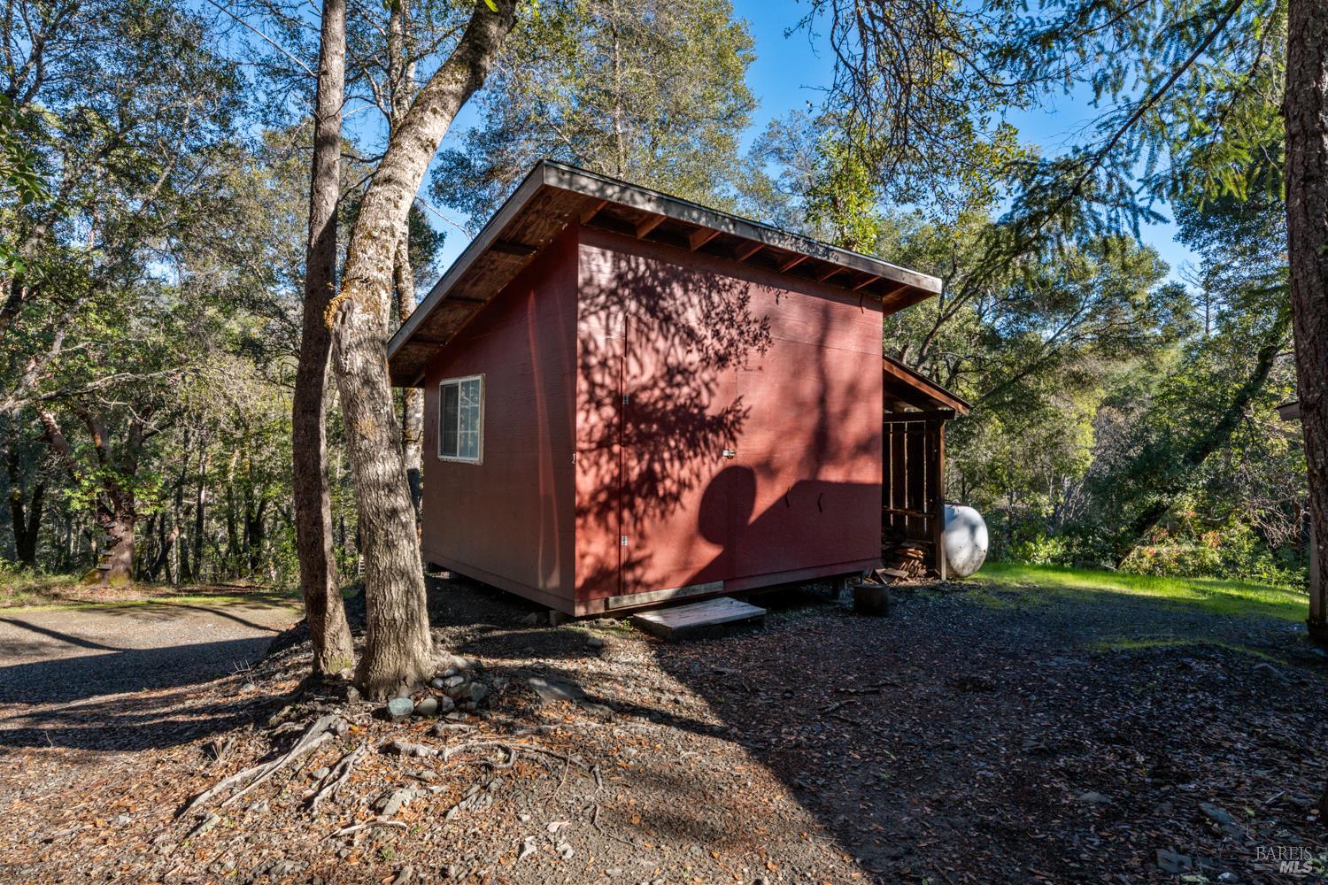 Tucked into the hills just north of Laytonville and approximately 45 minutes from Hwy 101, this 20-acre property offers a peaceful retreat with deeded access to a beautiful and tranquil stretch of the Eel River. From the cabin, it is just a short drive down the hill to the river, with only a handful of parcels in the area sharing this access. This exceptionally quiet section of the river is ideal for fishing, swimming, floating, or spending peaceful days by the water. The land is gently developed with a cozy off grid cabin of approximately 1,024 square feet, offering two bedrooms and one bathroom. The cabin is bright and charming, with hardwood floors and warm wood finishes throughout that create a comfortable and inviting feel. The property has been thoughtfully maintained and has a clean, well-kept feel throughout. A sunny back deck opens to a green, grassy area with a small garden area and a forested backdrop. The cabin is heated with a wood stove and also includes a septic system and a propane tank with regular delivery in place, supplying propane appliances and a propane heater. Additional improvements include a storage shed and a barn style building that houses the solar batteries and supports the solar panels above, providing power to the property. The upper level of the barn includes a small wood stove, offering added versatility for workspace, storage, or creative use. The property is well suited for those seeking a self-sufficient lifestyle or a weekend escape. This is an ideal property for anyone looking to unplug, slow down, and enjoy the natural beauty of Mendocino County.