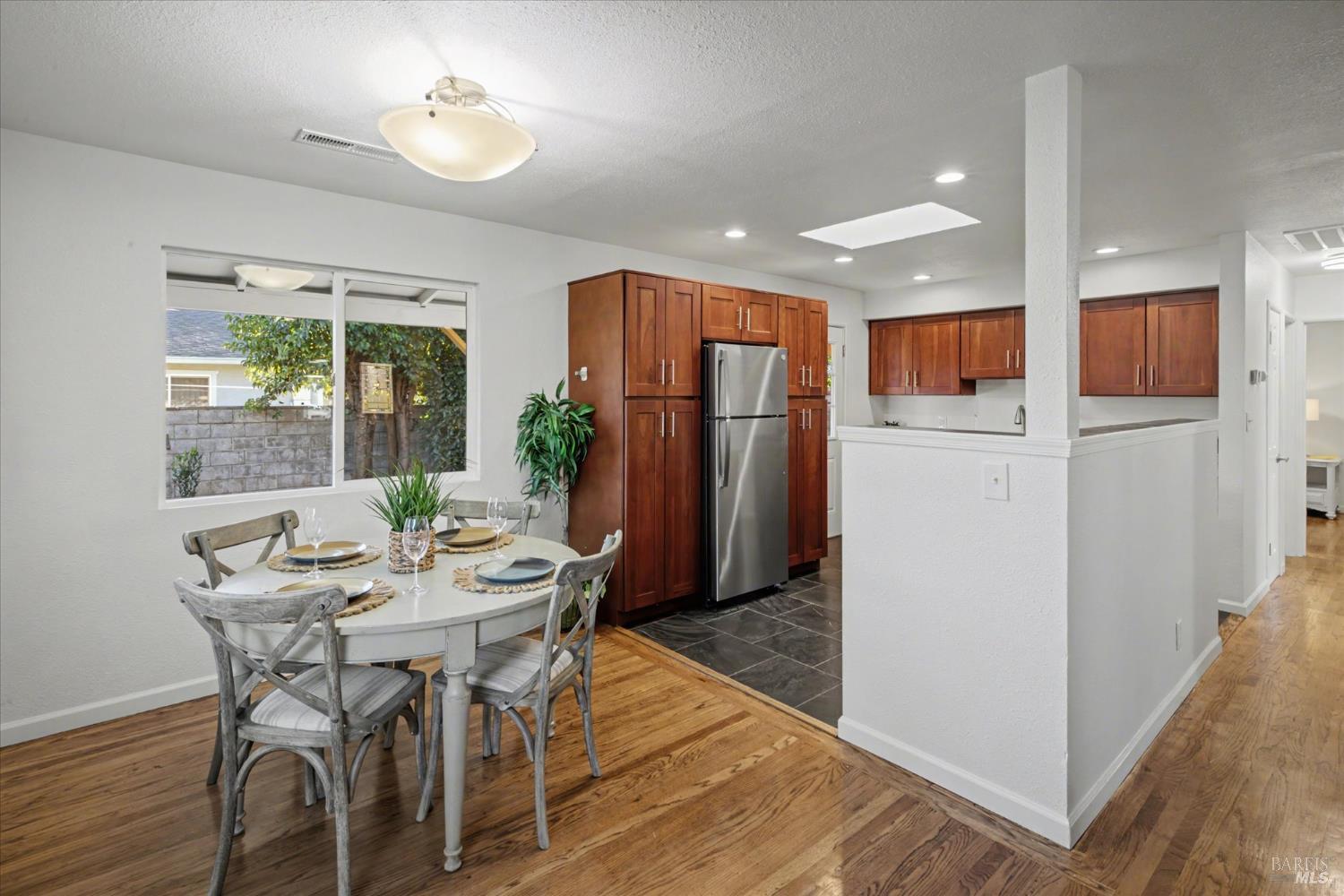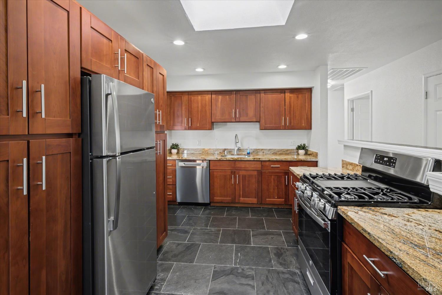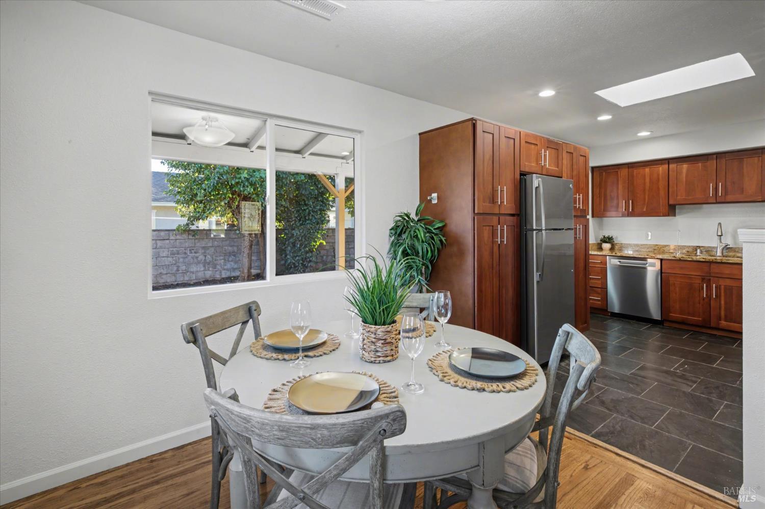 Lovely North Vacaville living awaits in this beautifully maintained and thoughtfully updated home, ideally situated in a central location close to nearby schools, neighborhood parks, grocery stores, and local churches, making everyday errands and community life both convenient and enjoyable. From the moment you arrive, you'll appreciate the fresh landscaping in both the front and backyards, complete with charming garden planter boxes that create inviting outdoor spaces perfect for relaxing, entertaining, or growing your own vegetables and flowers. Inside, the home features rich hardwood floors that add warmth and timeless appeal throughout the living areas. The remodeled kitchen is a standout, showcasing elegant cherrywood cabinets, gleaming granite countertops, and a functional layout designed for both daily living and hosting guests. Updated windows and doors enhance energy efficiency while allowing abundant natural light to fill the home. The bathrooms have been tastefully updated with modern finishes, offering comfort and style. A durable pitched roof adds to the home's long-term value and curb appeal. The dedicated laundry room includes extra storage, providing excellent organization and practicality. With its blend of quality upgrades, classic features, and an unbeatable North Vacaville location, this home offers comfort, functionality, and a true sense of pride of ownership, ready for you to move in and enjoy.