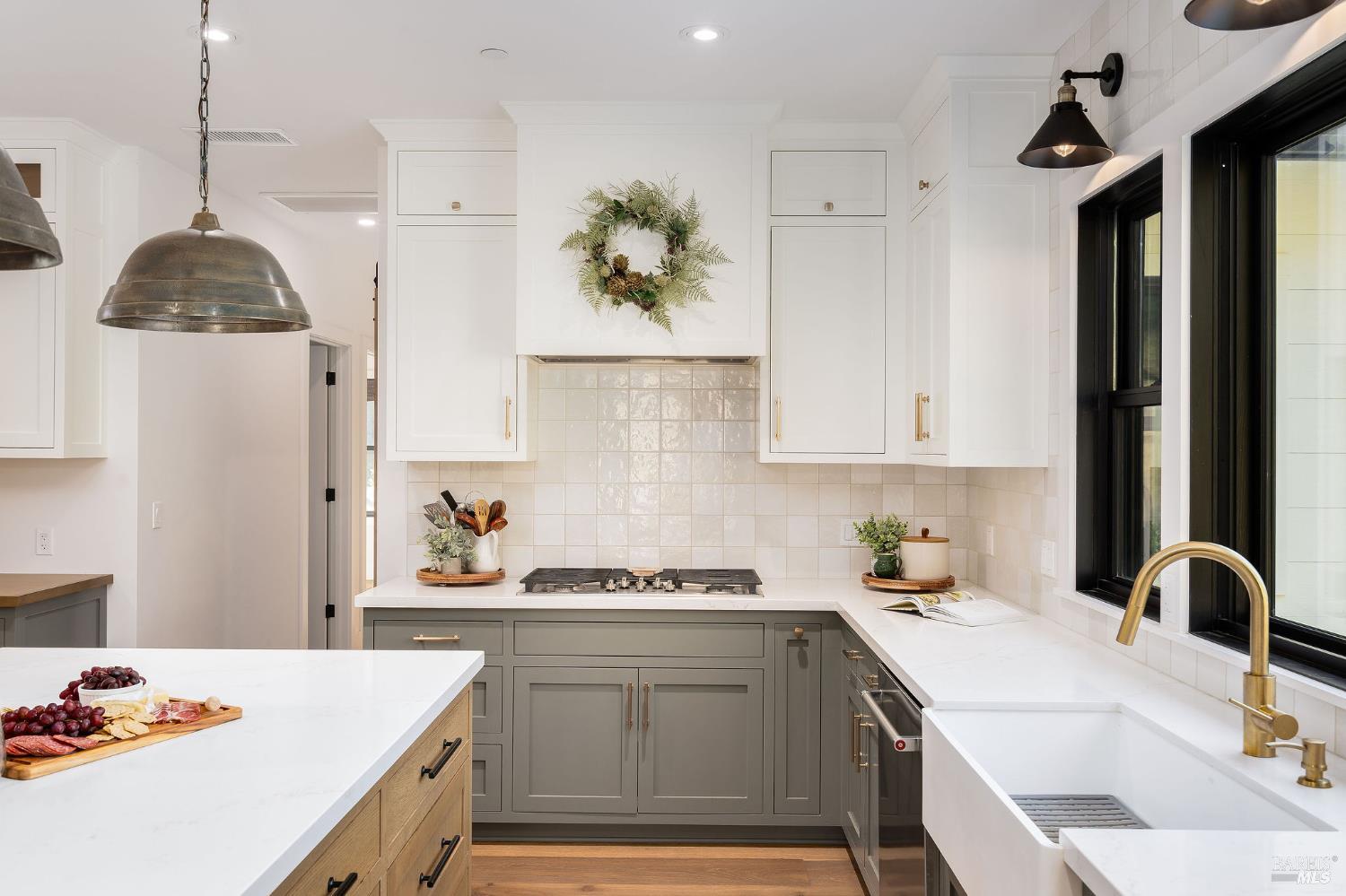 5400 Wragg Canyon epitomizes the allure of the Napa Valley fused with the tranquility of a private ranch. Crafted in 2023 with the discerning owner in mind, the 3 bedroom, 2 bath single story 1,925 sq ft modern farmhouse provides a sophisticated yet relaxed haven with a spacious open floorplan. The 16 ft vaulted great room, bathed in natural light through the extensive use of Marvin windows and doors, is complimented by clean lines, custom cabinetry, a warm color palette, French oak wood floors, quartz and spa influenced surfaces. True to the farmhouse aesthetic, the covered porches provide quiet sanctuaries to unwind and allow for a seamless indoor-outdoor flow. With full Wildland-Urban Interface compliance, the build highlights state of the art materials and construction with the use of Boral/Hardie Back siding, Vulcan air vents, water hydrant, storage tanks, Nuvo UV filtration, owned Solar and advanced fire suppression. Sited on approx.15 acres, minutes to the Pleasure Cove Marina, the creek side setting meanders through an expansive olive grove, producing upwards of 50 gallons annually of artisan oil, winding past the 4 stall pole barn and corrals. A detached garage completes this unparalleled retreat, offering privacy, luxury, and endless possibilities in Wine Country.