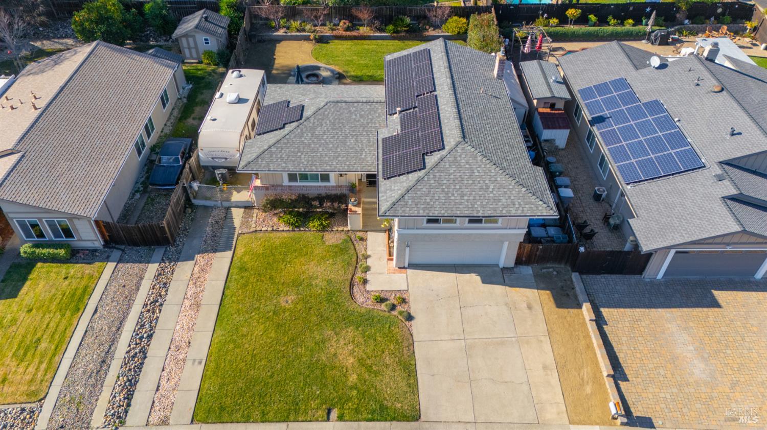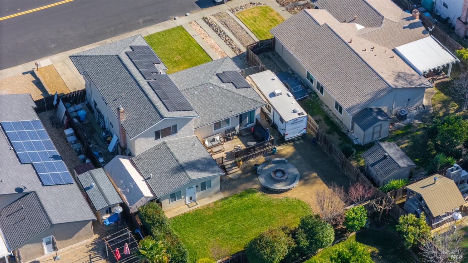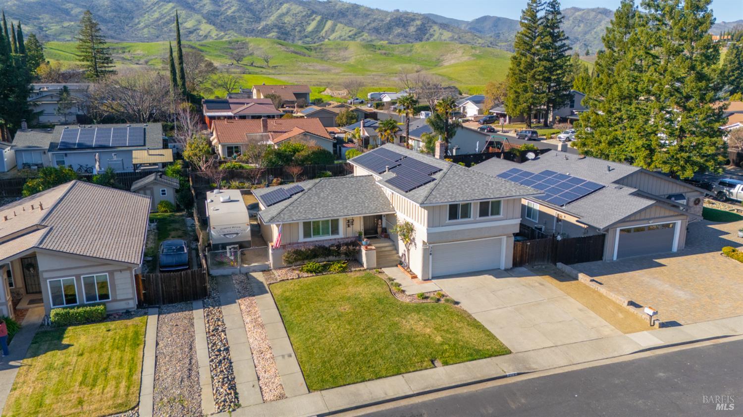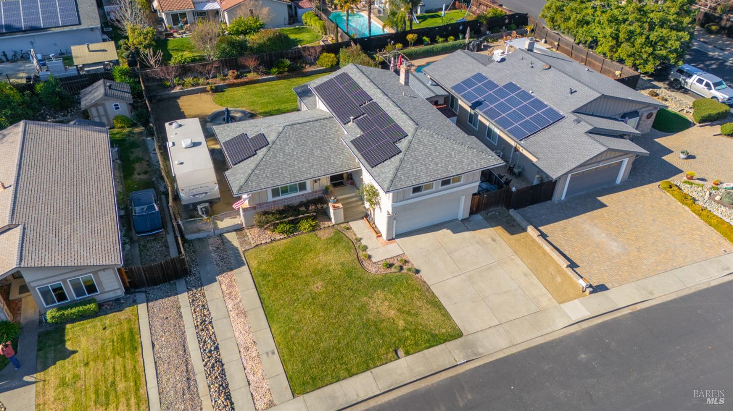 Welcome to this stunning home nestled in the highly desirable North Alamo area of Vacaville. This beautifully maintained residence offers 5 bedrooms and 3.5 bathrooms with over 2,344 square feet of thoughtfully designed living space. The main level features a full bedroom and bathroom, ideal for guests or multi-generational living. The spacious primary suite has been tastefully remodeled and showcases a custom walk-in closet with built-ins, shiplap accent wall, barn door, waterproof vinyl flooring in the closet and bathroom, and a new shower door for a modern touch. The kitchen is equipped with granite countertops, a new dishwasher, and luxury vinyl plank flooring that flows seamlessly through the kitchen and living room areas. Plantation shutters enhance the front-facing windows, while the newly remodeled entryway creates a welcoming first impression. Notable upgrades include owned solar, a sub-panel ready for generator connection, and a newer roof installed in 2017 and newly installed HVAC system. Parking is abundant with an attached two-car garage and additional RV parking along the side of the home. Situated on a generous 7,840 square foot lot, the backyard is tastefully landscaped and features an irrigation system throughout, perfect for outdoor enjoyment and entertaining. This home offers an exceptional combination of comfort, upgrades, and functionality in a sought-after neighborhood.