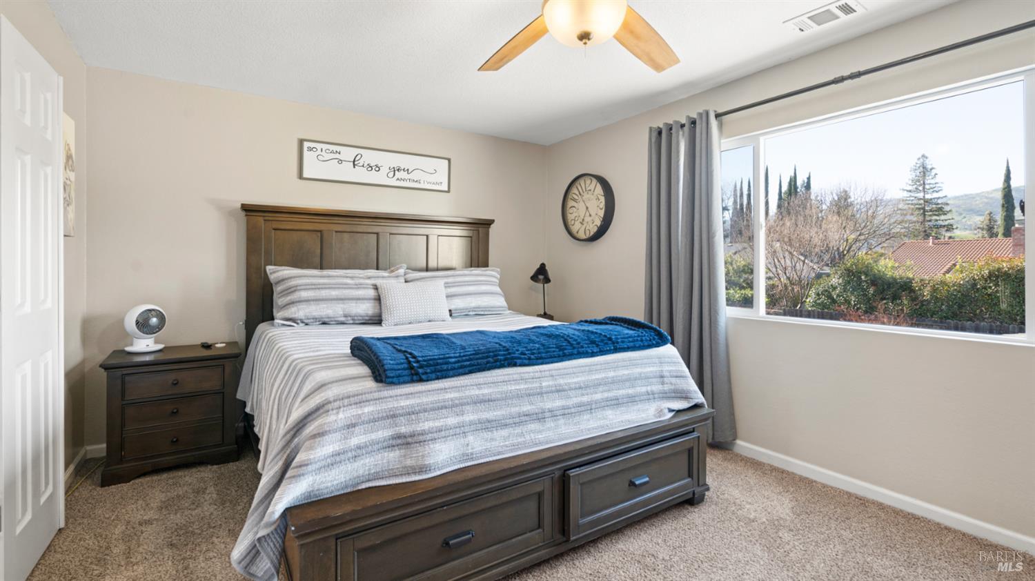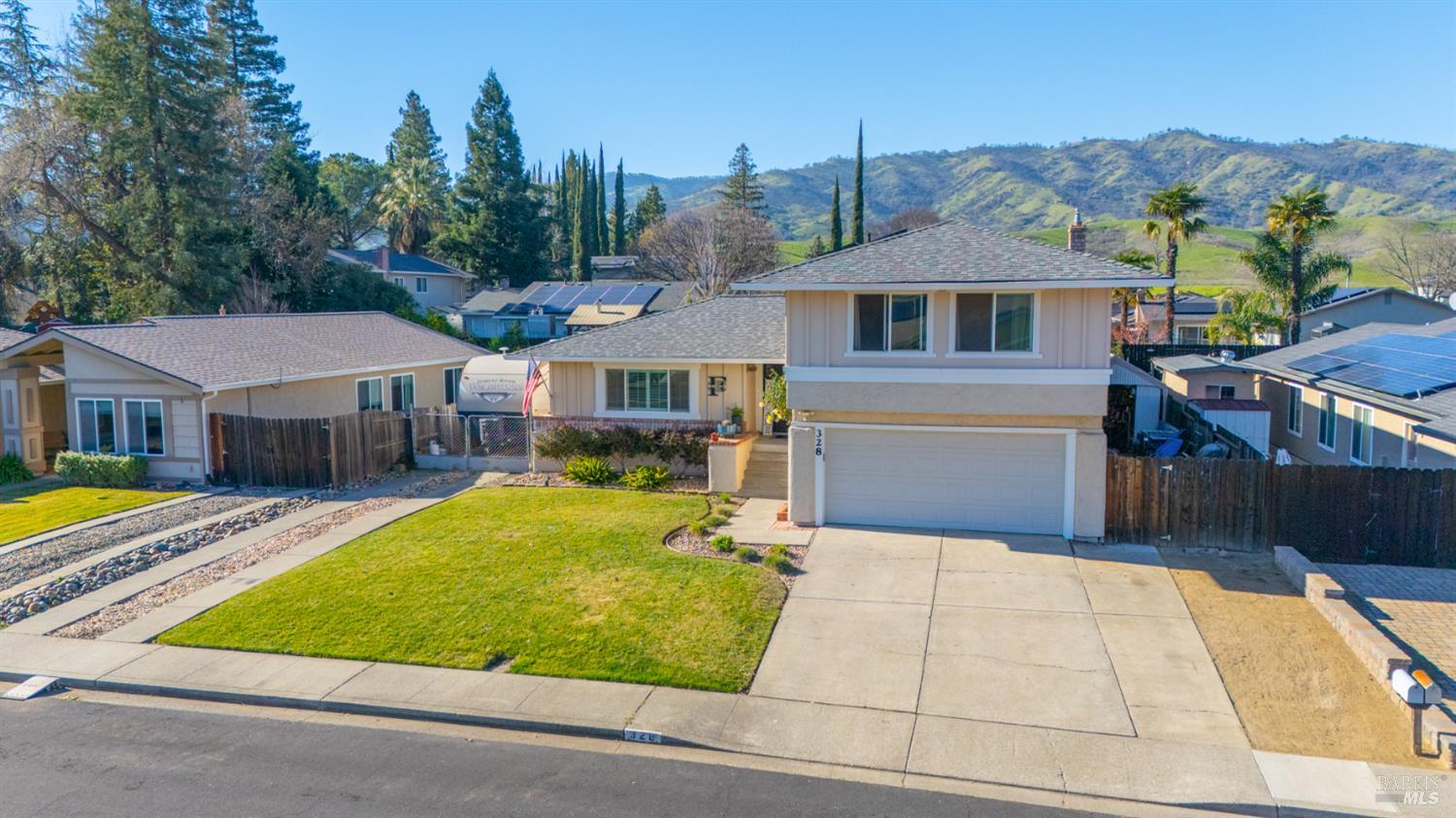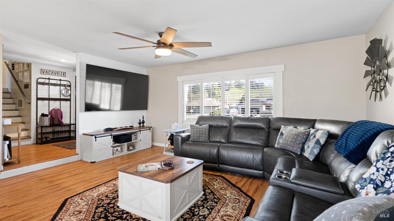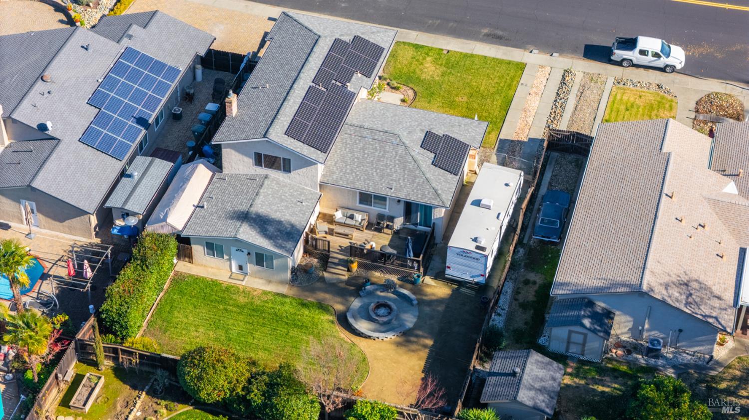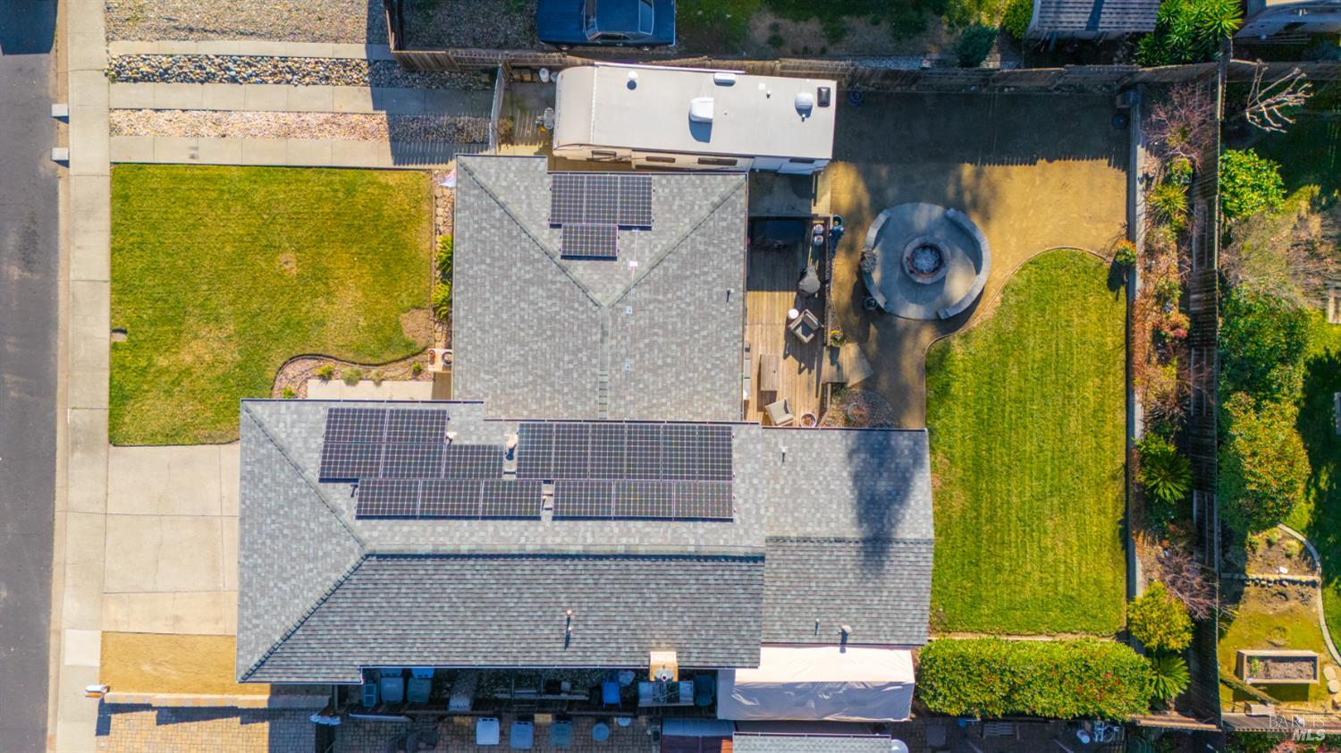 Welcome to this stunning home nestled in the highly desirable North Alamo area of Vacaville. This beautifully maintained residence offers 5 bedrooms and 3.5 bathrooms with over 2,344 square feet of thoughtfully designed living space. The main level features a full bedroom and bathroom, ideal for guests or multi-generational living. The spacious primary suite has been tastefully remodeled and showcases a custom walk-in closet with built-ins, shiplap accent wall, barn door, waterproof vinyl flooring in the closet and bathroom, and a new shower door for a modern touch. The kitchen is equipped with granite countertops, a new dishwasher, and luxury vinyl plank flooring that flows seamlessly through the kitchen and living room areas. Plantation shutters enhance the front-facing windows, while the newly remodeled entryway creates a welcoming first impression. Notable upgrades include owned solar, a sub-panel ready for generator connection, and a newer roof installed in 2017 and newly installed HVAC system. Parking is abundant with an attached two-car garage and additional RV parking along the side of the home. Situated on a generous 7,840 square foot lot, the backyard is tastefully landscaped and features an irrigation system throughout, perfect for outdoor enjoyment and entertaining. This home offers an exceptional combination of comfort, upgrades, and functionality in a sought-after neighborhood.
