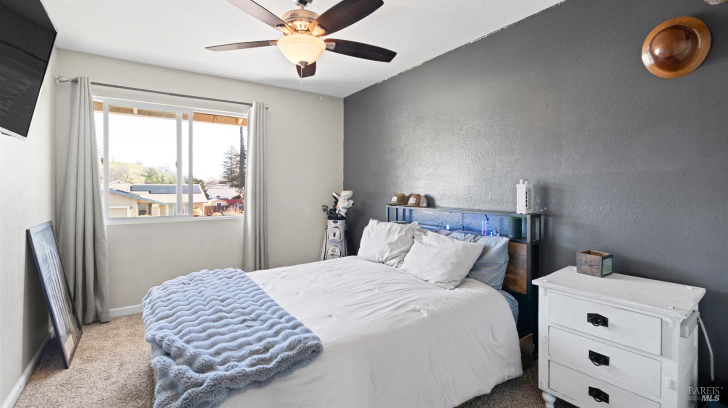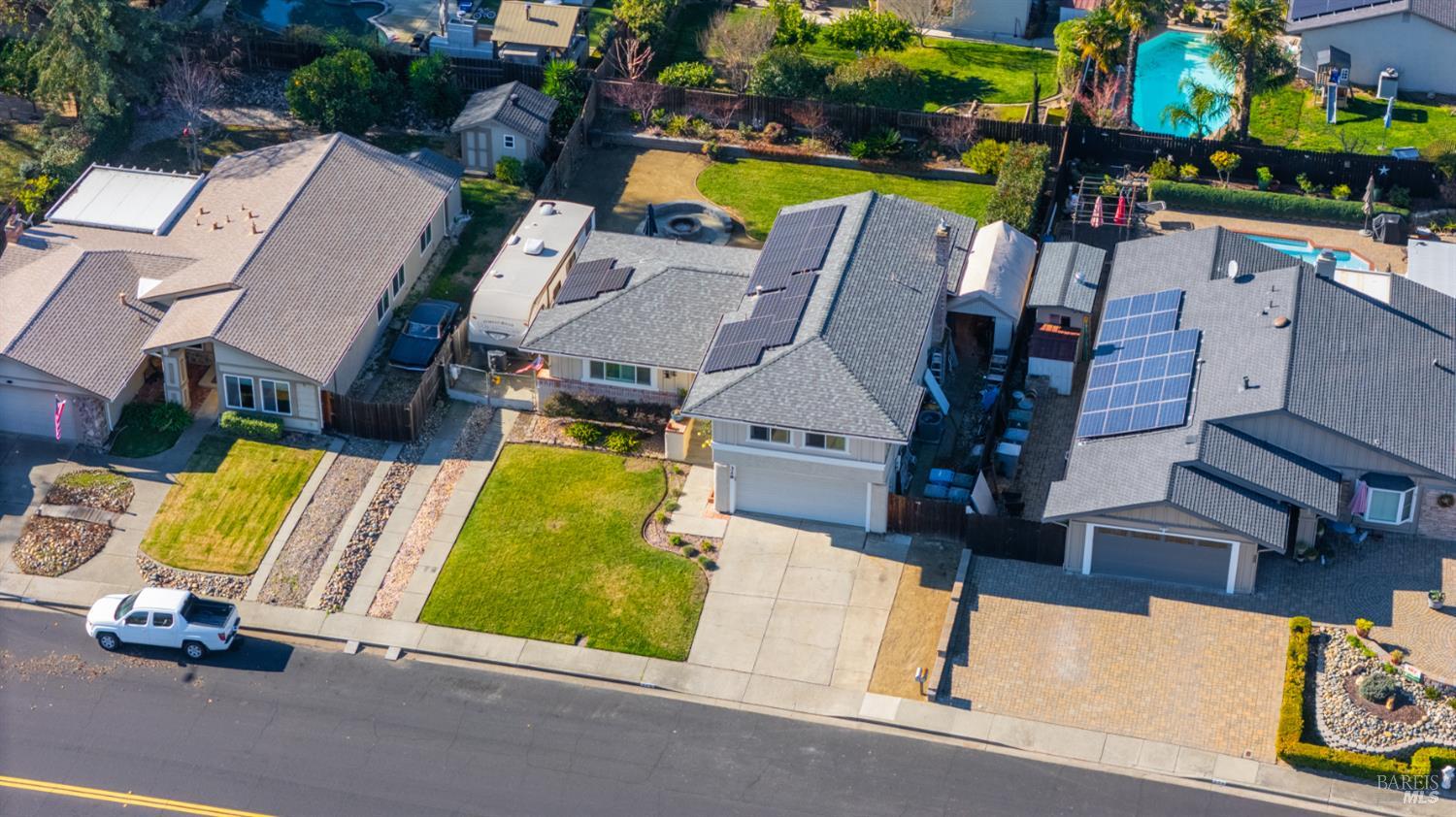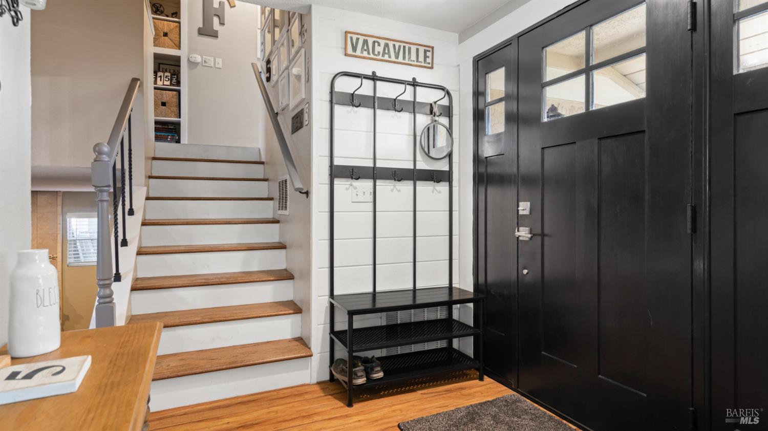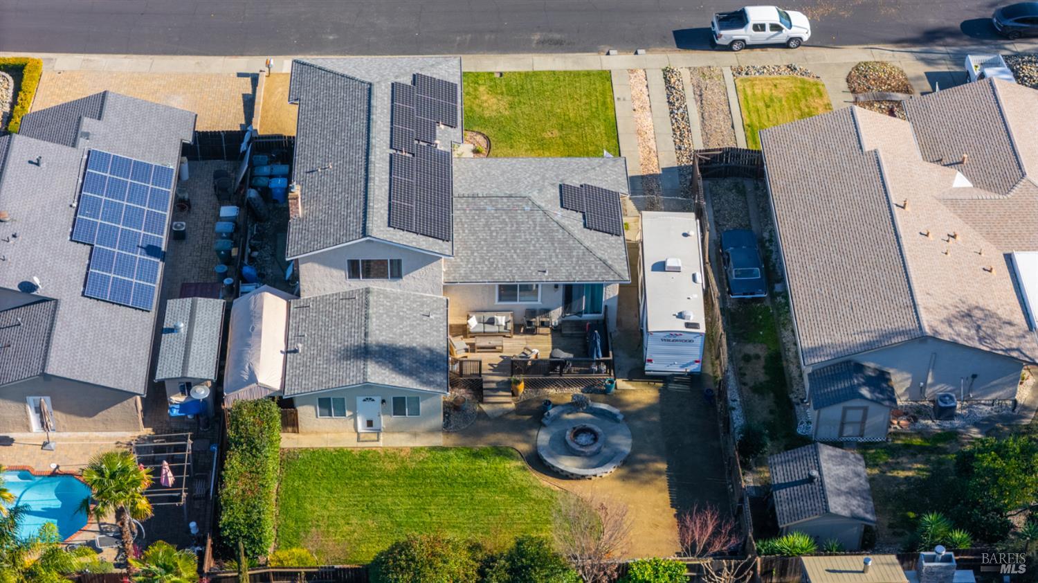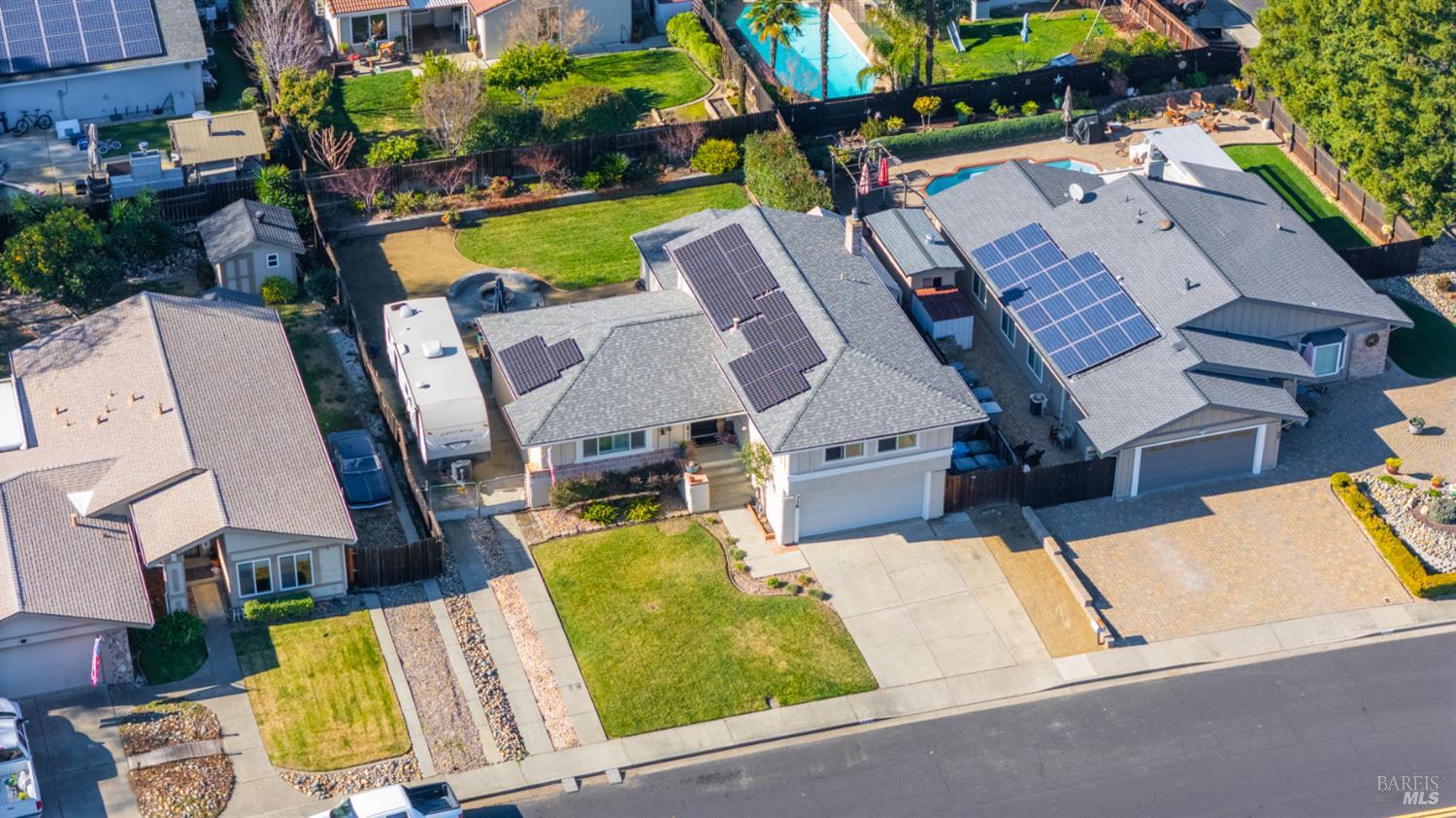 Welcome to this stunning home nestled in the highly desirable North Alamo area of Vacaville. This beautifully maintained residence offers 5 bedrooms and 3.5 bathrooms with over 2,344 square feet of thoughtfully designed living space. The main level features a full bedroom and bathroom, ideal for guests or multi-generational living. The spacious primary suite has been tastefully remodeled and showcases a custom walk-in closet with built-ins, shiplap accent wall, barn door, waterproof vinyl flooring in the closet and bathroom, and a new shower door for a modern touch. The kitchen is equipped with granite countertops, a new dishwasher, and luxury vinyl plank flooring that flows seamlessly through the kitchen and living room areas. Plantation shutters enhance the front-facing windows, while the newly remodeled entryway creates a welcoming first impression. Notable upgrades include owned solar, a sub-panel ready for generator connection, and a newer roof installed in 2017 and newly installed HVAC system. Parking is abundant with an attached two-car garage and additional RV parking along the side of the home. Situated on a generous 7,840 square foot lot, the backyard is tastefully landscaped and features an irrigation system throughout, perfect for outdoor enjoyment and entertaining. This home offers an exceptional combination of comfort, upgrades, and functionality in a sought-after neighborhood.