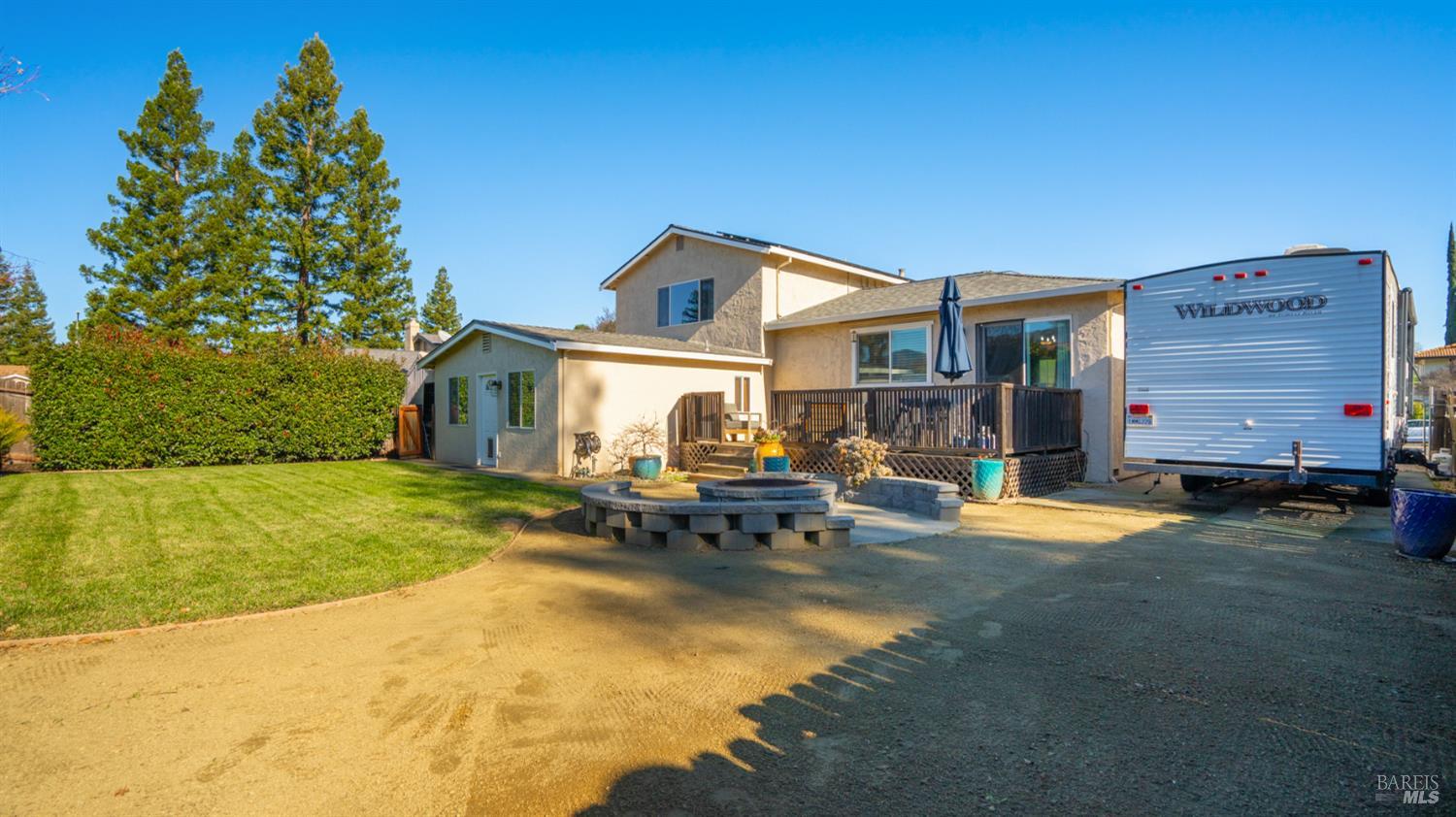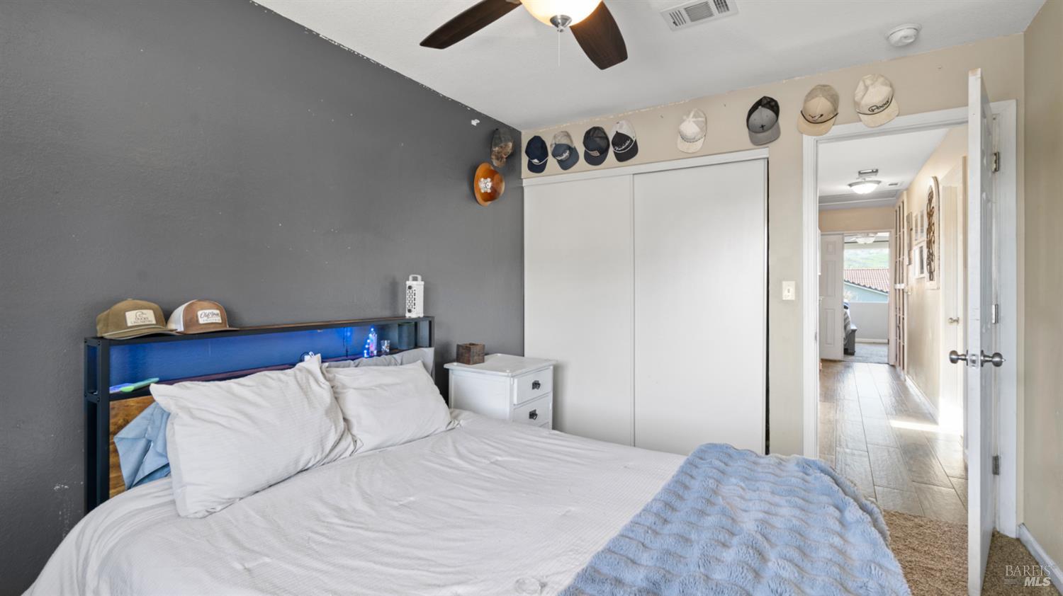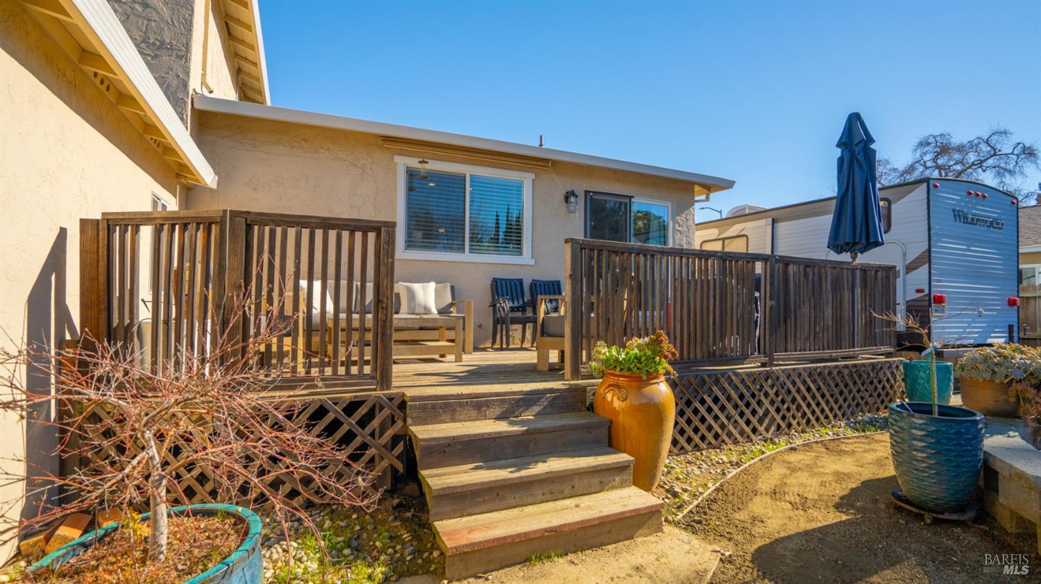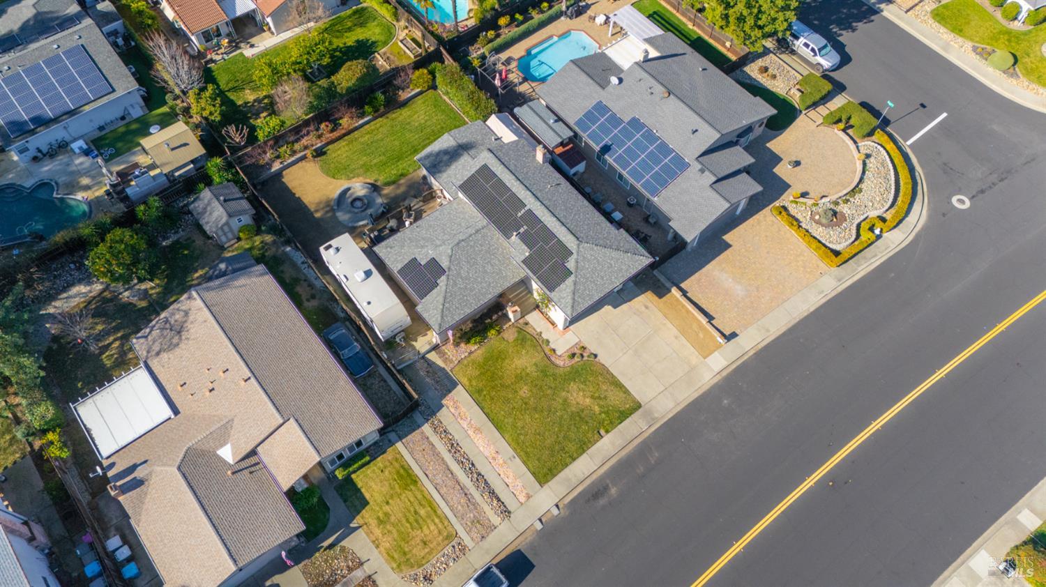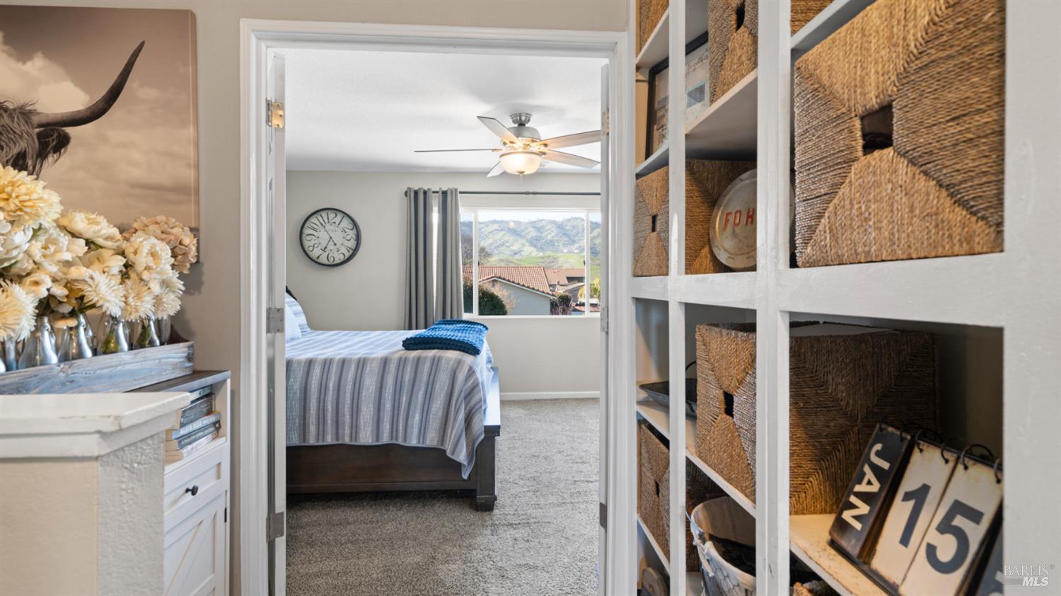 Welcome to this stunning home nestled in the highly desirable North Alamo area of Vacaville. This beautifully maintained residence offers 5 bedrooms and 3.5 bathrooms with over 2,344 square feet of thoughtfully designed living space. The main level features a full bedroom and bathroom, ideal for guests or multi-generational living. The spacious primary suite has been tastefully remodeled and showcases a custom walk-in closet with built-ins, shiplap accent wall, barn door, waterproof vinyl flooring in the closet and bathroom, and a new shower door for a modern touch. The kitchen is equipped with granite countertops, a new dishwasher, and luxury vinyl plank flooring that flows seamlessly through the kitchen and living room areas. Plantation shutters enhance the front-facing windows, while the newly remodeled entryway creates a welcoming first impression. Notable upgrades include owned solar, a sub-panel ready for generator connection, and a newer roof installed in 2017 and newly installed HVAC system. Parking is abundant with an attached two-car garage and additional RV parking along the side of the home. Situated on a generous 7,840 square foot lot, the backyard is tastefully landscaped and features an irrigation system throughout, perfect for outdoor enjoyment and entertaining. This home offers an exceptional combination of comfort, upgrades, and functionality in a sought-after neighborhood.