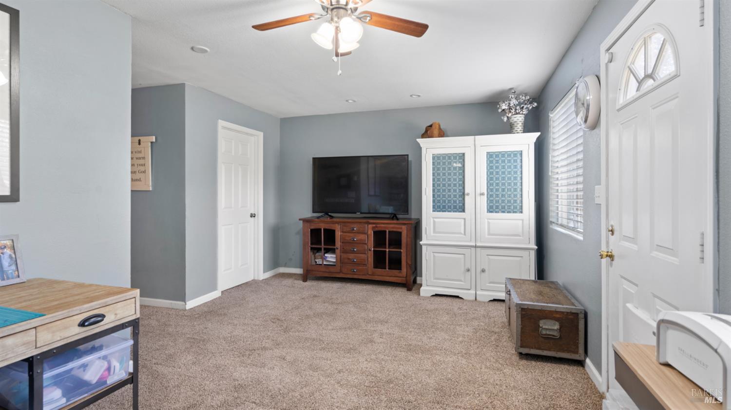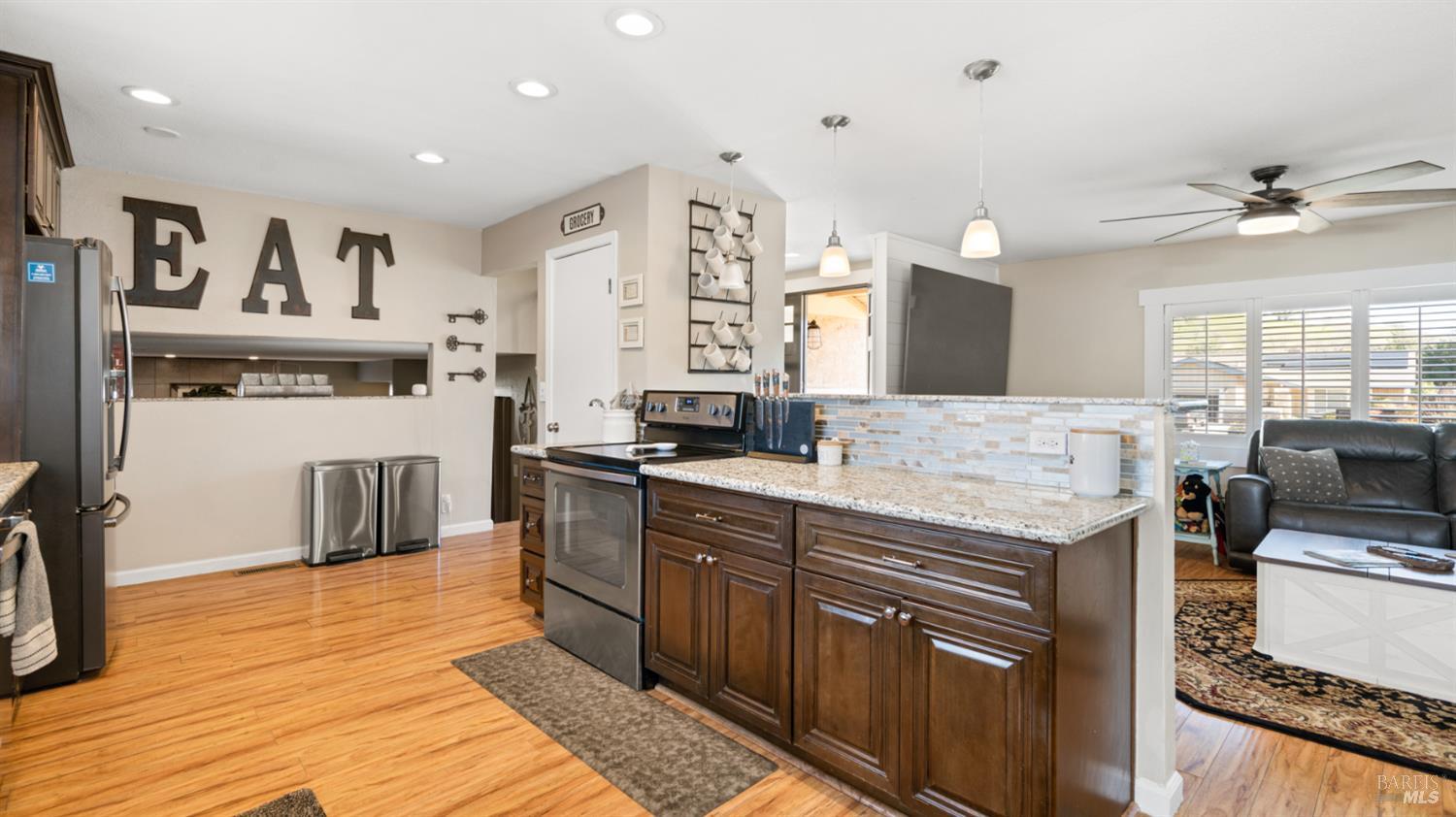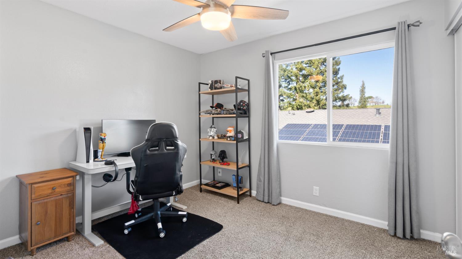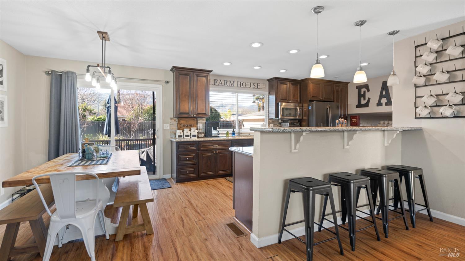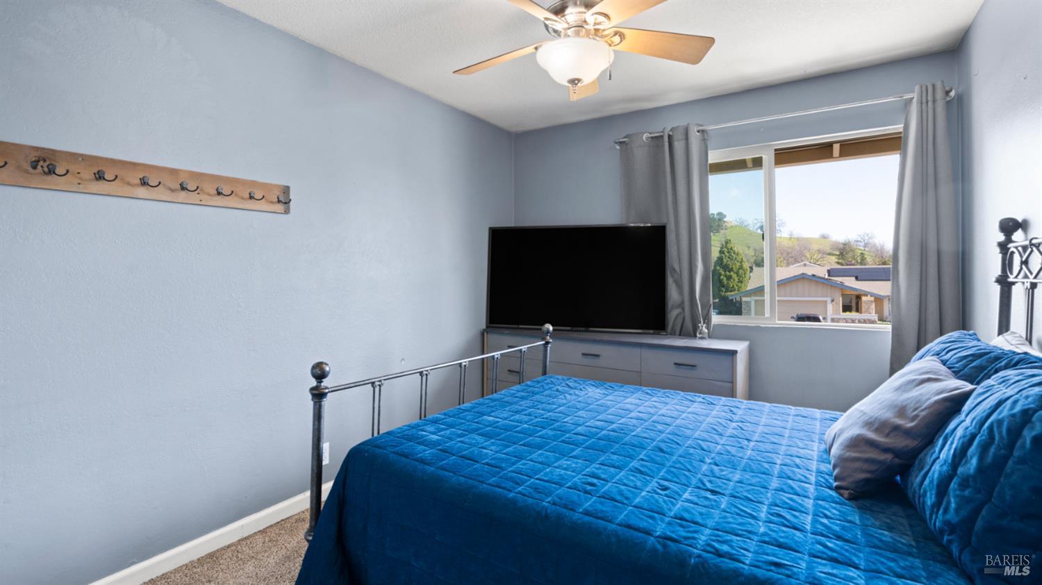Welcome to this stunning home nestled in the highly desirable North Alamo area of Vacaville. This beautifully maintained residence offers 5 bedrooms and 3.5 bathrooms with over 2,344 square feet of thoughtfully designed living space. The main level features a full bedroom and bathroom, ideal for guests or multi-generational living. The spacious primary suite has been tastefully remodeled and showcases a custom walk-in closet with built-ins, shiplap accent wall, barn door, waterproof vinyl flooring in the closet and bathroom, and a new shower door for a modern touch. The kitchen is equipped with granite countertops, a new dishwasher, and luxury vinyl plank flooring that flows seamlessly through the kitchen and living room areas. Plantation shutters enhance the front-facing windows, while the newly remodeled entryway creates a welcoming first impression. Notable upgrades include owned solar, a sub-panel ready for generator connection, and a newer roof installed in 2017 and newly installed HVAC system. Parking is abundant with an attached two-car garage and additional RV parking along the side of the home. Situated on a generous 7,840 square foot lot, the backyard is tastefully landscaped and features an irrigation system throughout, perfect for outdoor enjoyment and entertaining. This home offers an exceptional combination of comfort, upgrades, and functionality in a sought-after neighborhood.
