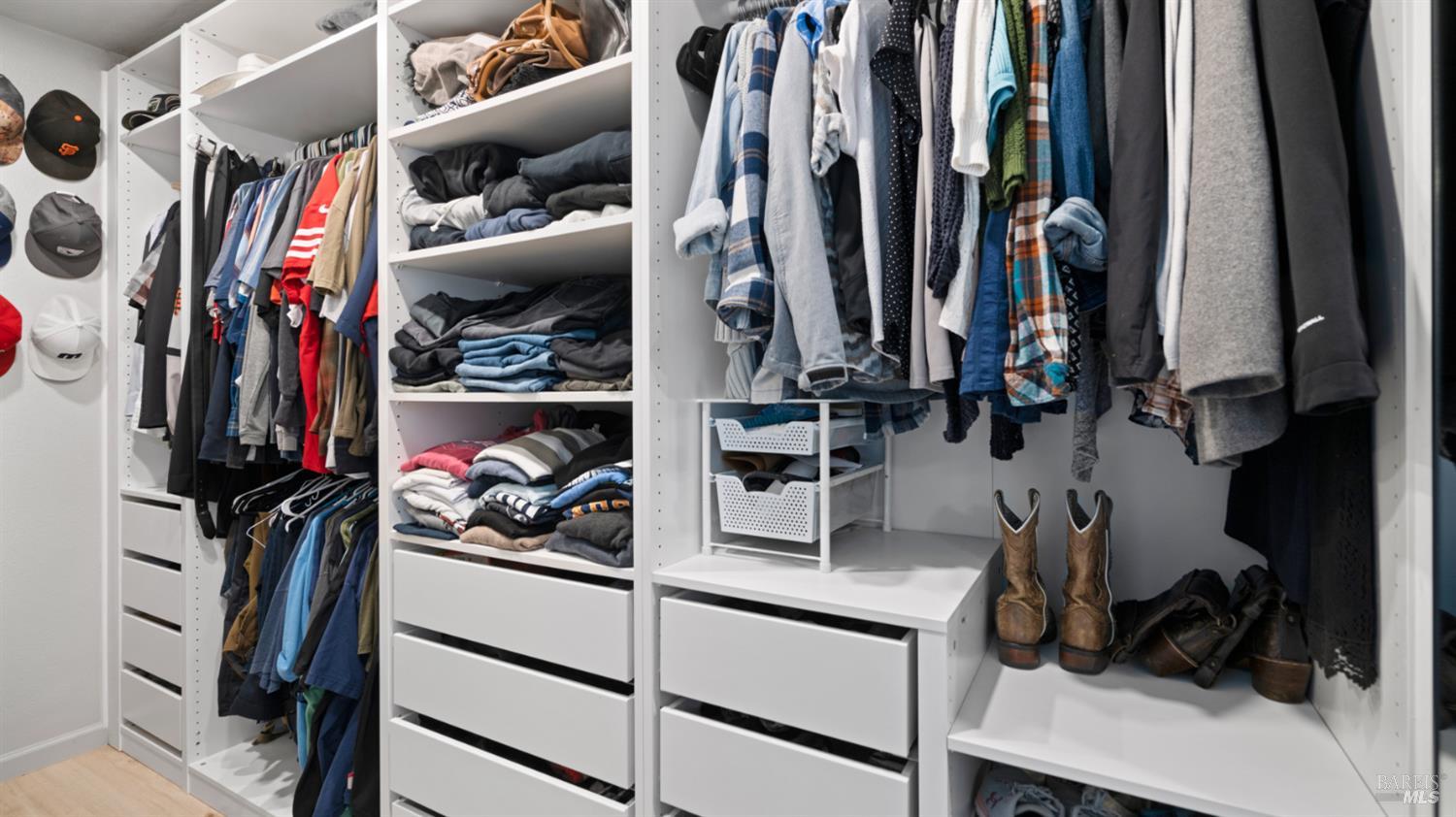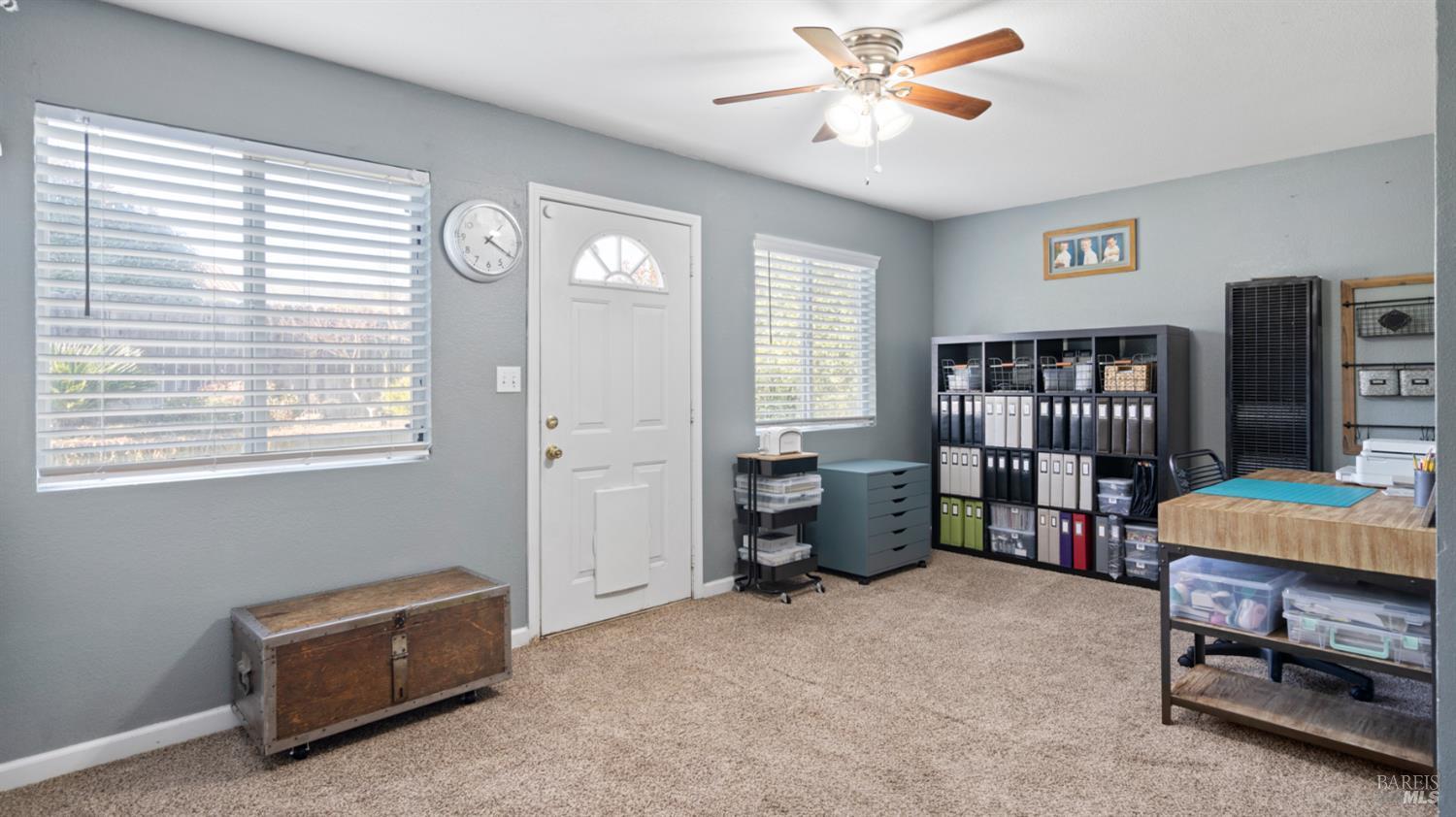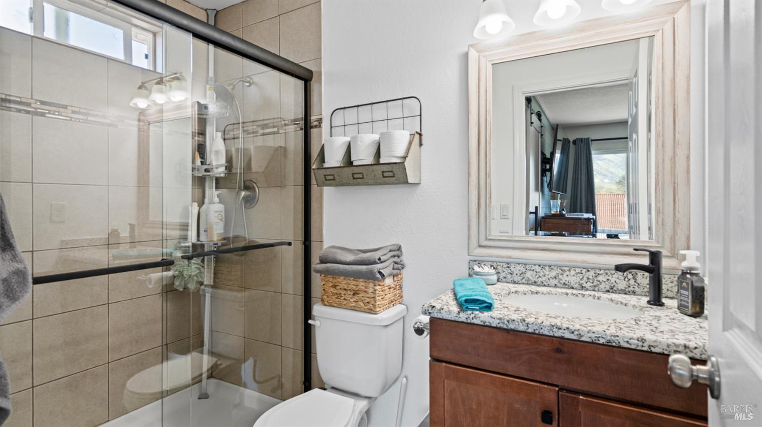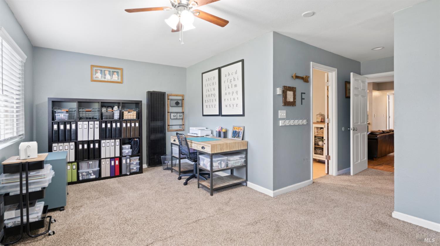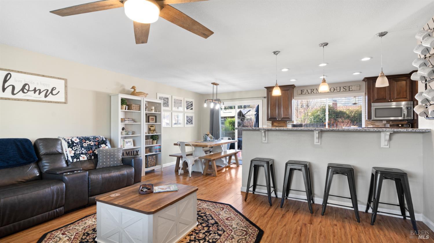 Welcome to this stunning home nestled in the highly desirable North Alamo area of Vacaville. This beautifully maintained residence offers 5 bedrooms and 3.5 bathrooms with over 2,344 square feet of thoughtfully designed living space. The main level features a full bedroom and bathroom, ideal for guests or multi-generational living. The spacious primary suite has been tastefully remodeled and showcases a custom walk-in closet with built-ins, shiplap accent wall, barn door, waterproof vinyl flooring in the closet and bathroom, and a new shower door for a modern touch. The kitchen is equipped with granite countertops, a new dishwasher, and luxury vinyl plank flooring that flows seamlessly through the kitchen and living room areas. Plantation shutters enhance the front-facing windows, while the newly remodeled entryway creates a welcoming first impression. Notable upgrades include owned solar, a sub-panel ready for generator connection, and a newer roof installed in 2017 and newly installed HVAC system. Parking is abundant with an attached two-car garage and additional RV parking along the side of the home. Situated on a generous 7,840 square foot lot, the backyard is tastefully landscaped and features an irrigation system throughout, perfect for outdoor enjoyment and entertaining. This home offers an exceptional combination of comfort, upgrades, and functionality in a sought-after neighborhood.