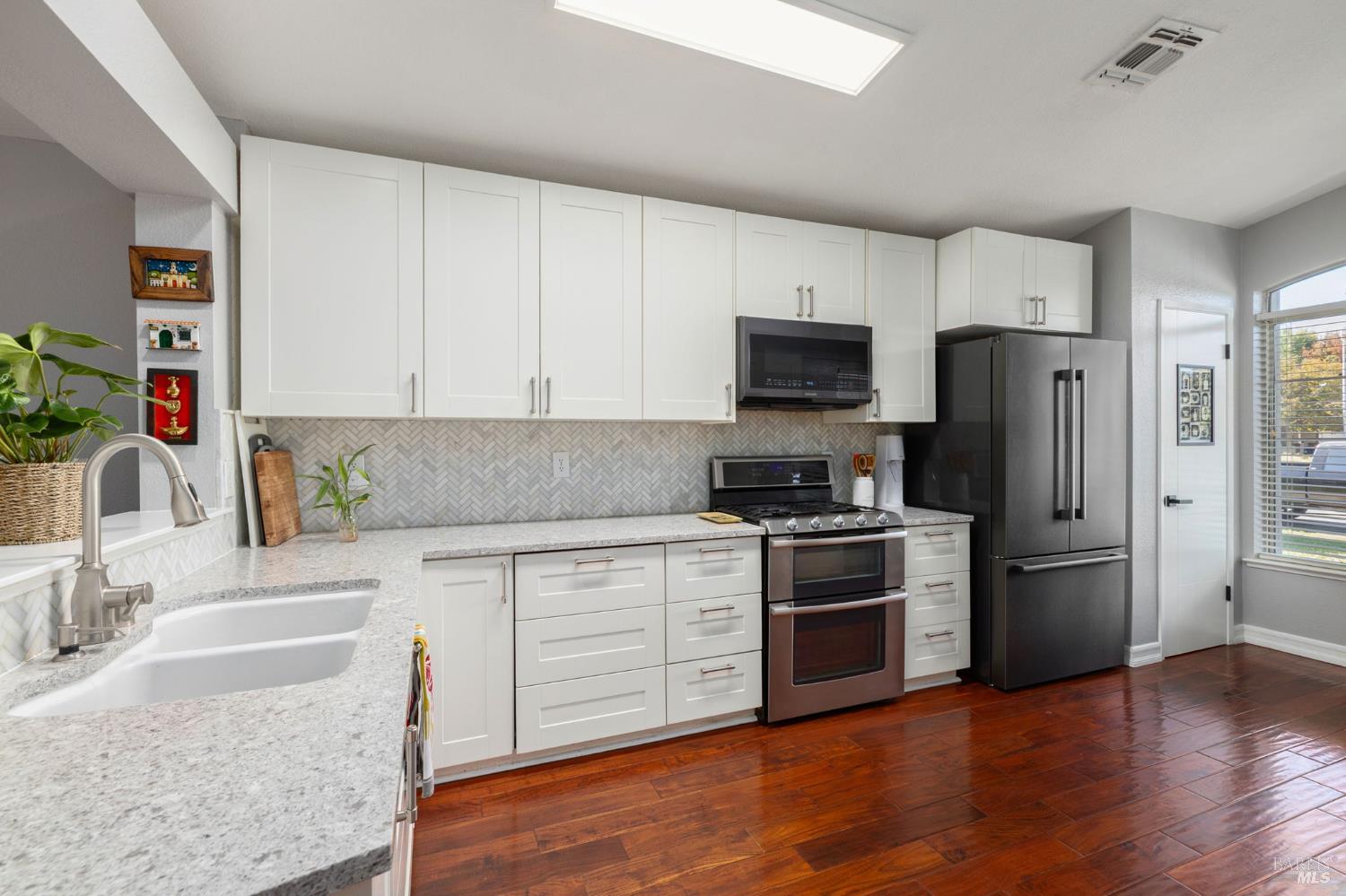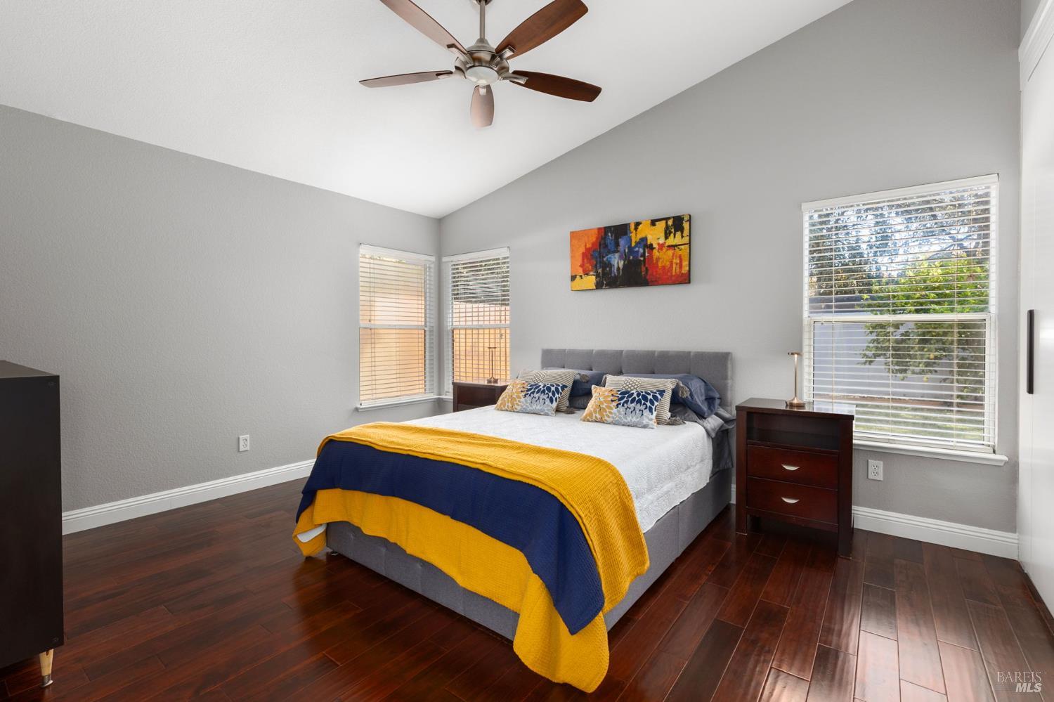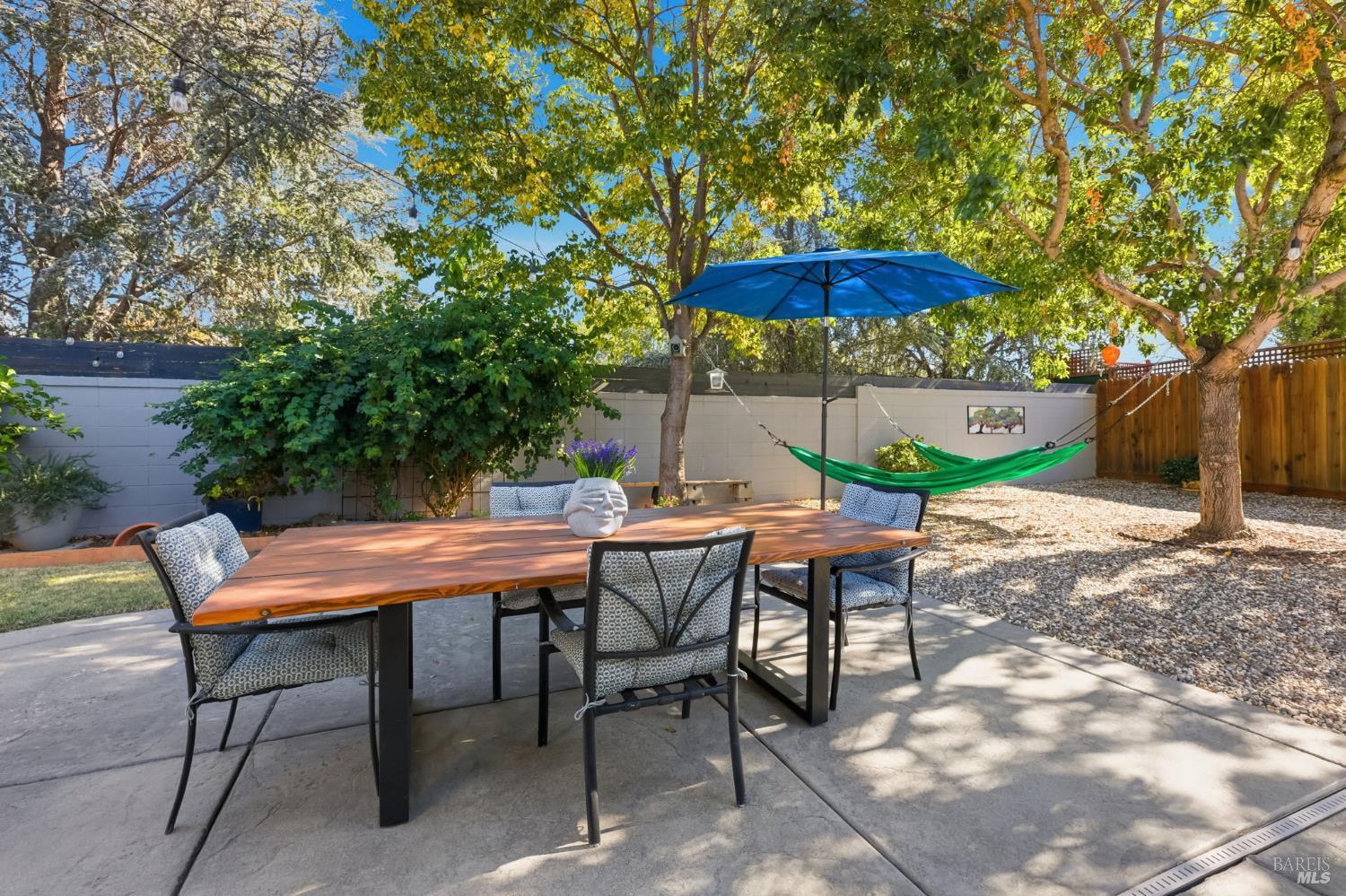 You've been looking for a home that checks every box with modern updates, move-in ready, and a neighborhood you'll love. This stunning Dixon sanctuary delivers exactly that. Picture yourself in the dream kitchen with pristine white cabinets, granite counters, and stainless steel appliances opening to a spacious living area where vaulted ceilings and rich flooring create the perfect backdrop for your life. Both bathrooms with floating vanities and illuminated mirrors. Primary bathroom has a luxurious shower featuring decorative tile accents. Your private backyard oasis awaits with mature shade trees, dining patio, and a peaceful hammock corner. Located minutes from downtown Dixon's beloved Rosemarys, Bud's Pub & Grill, and Solano Baking Company, plus the convenience of Safeway just blocks away. The primary suite offers a wall of custom closets while the 2-car garage provides ample storage. This isn't just another house, it's where your next chapter begins. Schedule your private tour today and discover why this meticulously updated three bedroom, two bath home with its perfect blend of style and comfort is exactly what you've been searching for.