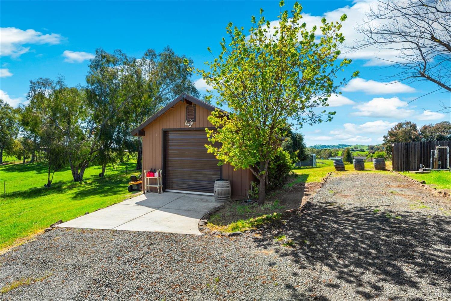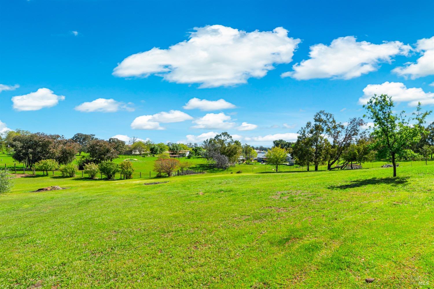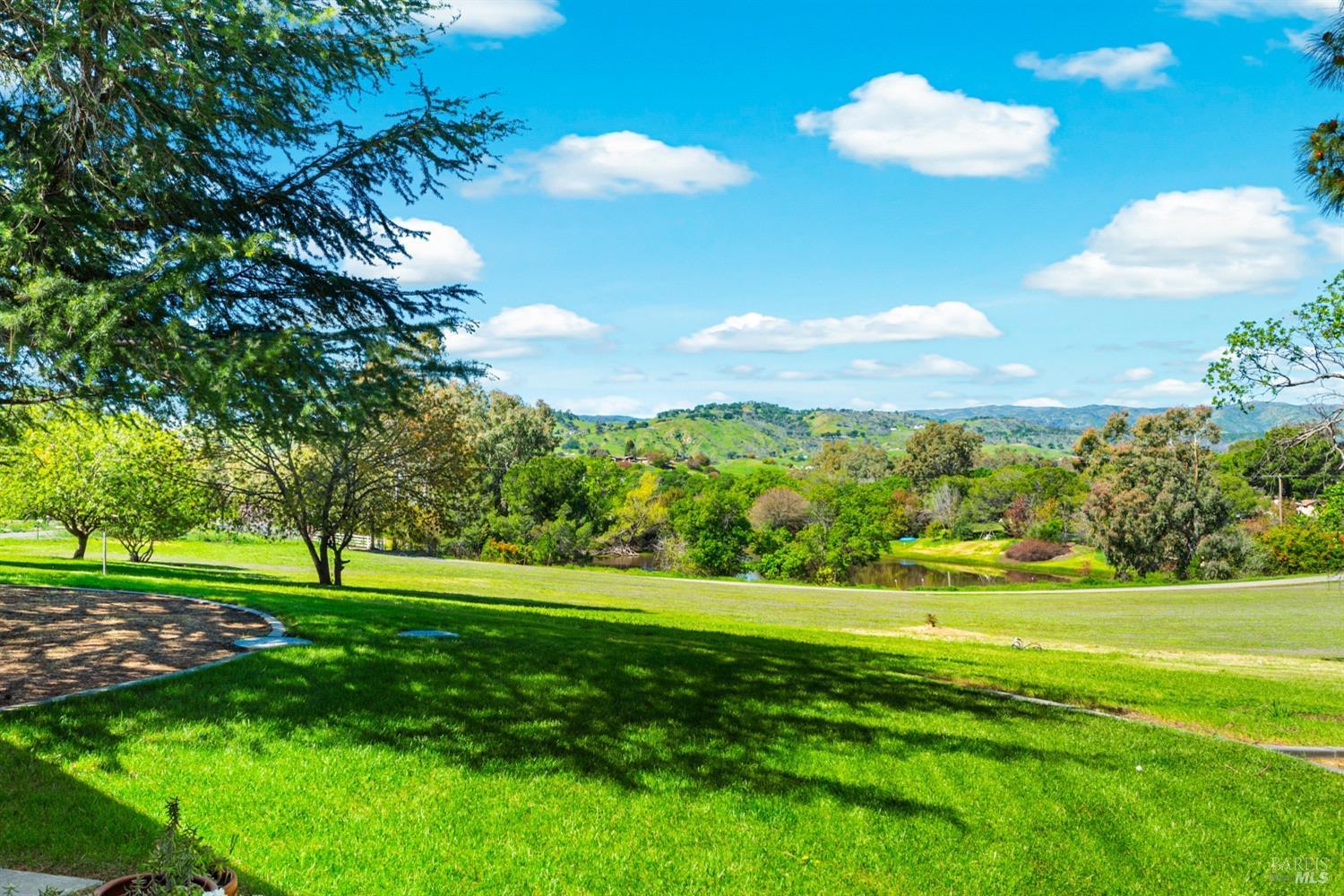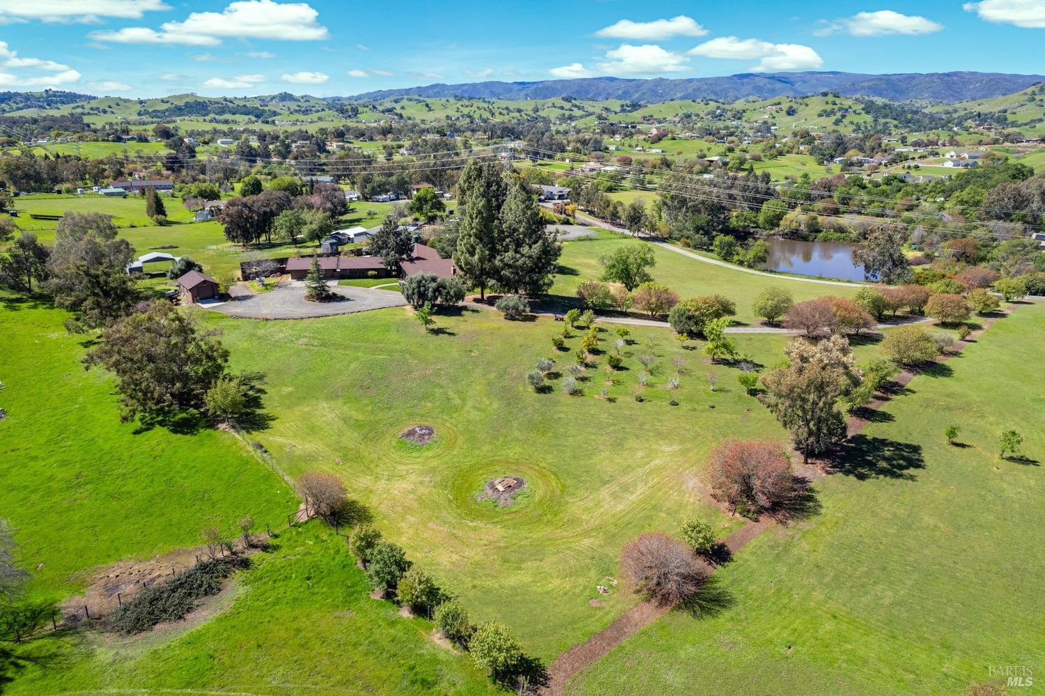 Welcome to this coveted Vacaville country estate nestled on 5 usable acres, offering the perfect blend of peaceful rural living and modern comfort with a spacious custom single-story home, a newly developed 720 sq. ft. ADU, a sparkling in-ground pool, owned solar, well water, RV parking and garage with workshop. Private tree-lined driveway leads to breathtaking panoramic views of rolling hills, surrounding a circular driveway that sets the tone for this incredible property. Inside, the main home features newly installed luxury vinyl plank flooring and carpet in the bedrooms, fresh interior paint, exposed wood beam vaulted ceilings, a stone fireplace and large windows that flood the home with natural light and views. Kitchen has an island with cooktop, double ovens, granite counters backsplash, pantry cabinets and large breakfast dining area with views. Massive bonus room is ideal for entertaining with a fireplace and sliding glass doors leading to the backyard retreat. Spacious primary suite has outdoor access, a walk-in closet and huge shower, while all additional large bedrooms provide crown molding and one with an ensuite bathroom. The ADU has a full kitchen, large living area, bedroom and full bathroom ideal for guests, extended family or rental potential. Home has newer dual-pane windows, recessed lighting, 2024 pergola, lawn and huge fenced garden area and endless views from every angle, making this a rare and versatile property.