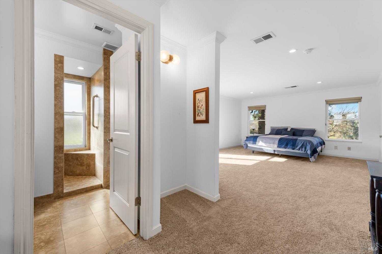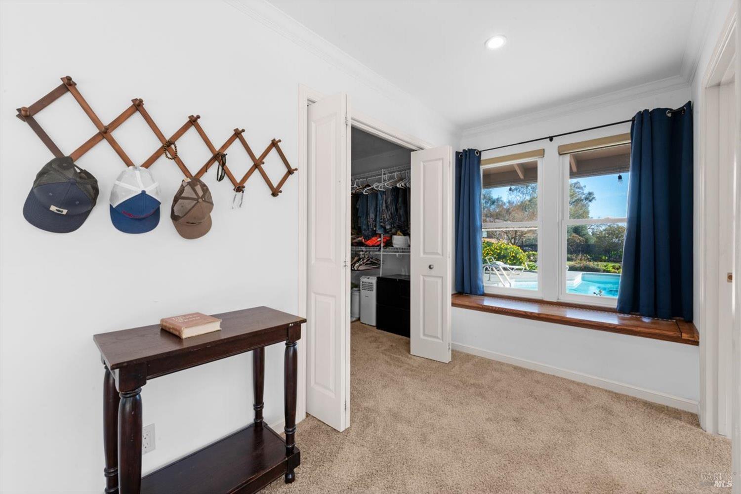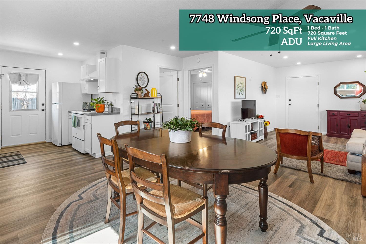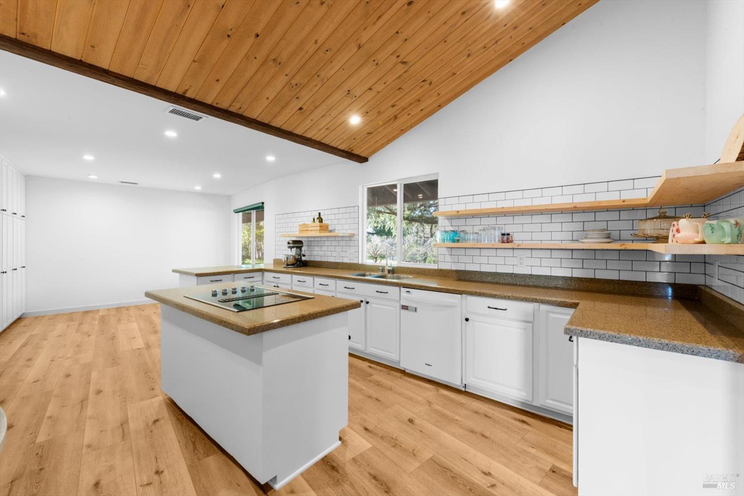 Welcome to this coveted Vacaville country estate nestled on 5 usable acres, offering the perfect blend of peaceful rural living and modern comfort with a spacious custom single-story home, a newly developed 720 sq. ft. ADU, a sparkling in-ground pool, owned solar, well water, RV parking and garage with workshop. Private tree-lined driveway leads to breathtaking panoramic views of rolling hills, surrounding a circular driveway that sets the tone for this incredible property. Inside, the main home features newly installed luxury vinyl plank flooring and carpet in the bedrooms, fresh interior paint, exposed wood beam vaulted ceilings, a stone fireplace and large windows that flood the home with natural light and views. Kitchen has an island with cooktop, double ovens, granite counters backsplash, pantry cabinets and large breakfast dining area with views. Massive bonus room is ideal for entertaining with a fireplace and sliding glass doors leading to the backyard retreat. Spacious primary suite has outdoor access, a walk-in closet and huge shower, while all additional large bedrooms provide crown molding and one with an ensuite bathroom. The ADU has a full kitchen, large living area, bedroom and full bathroom ideal for guests, extended family or rental potential. Home has newer dual-pane windows, recessed lighting, 2024 pergola, lawn and huge fenced garden area and endless views from every angle, making this a rare and versatile property.