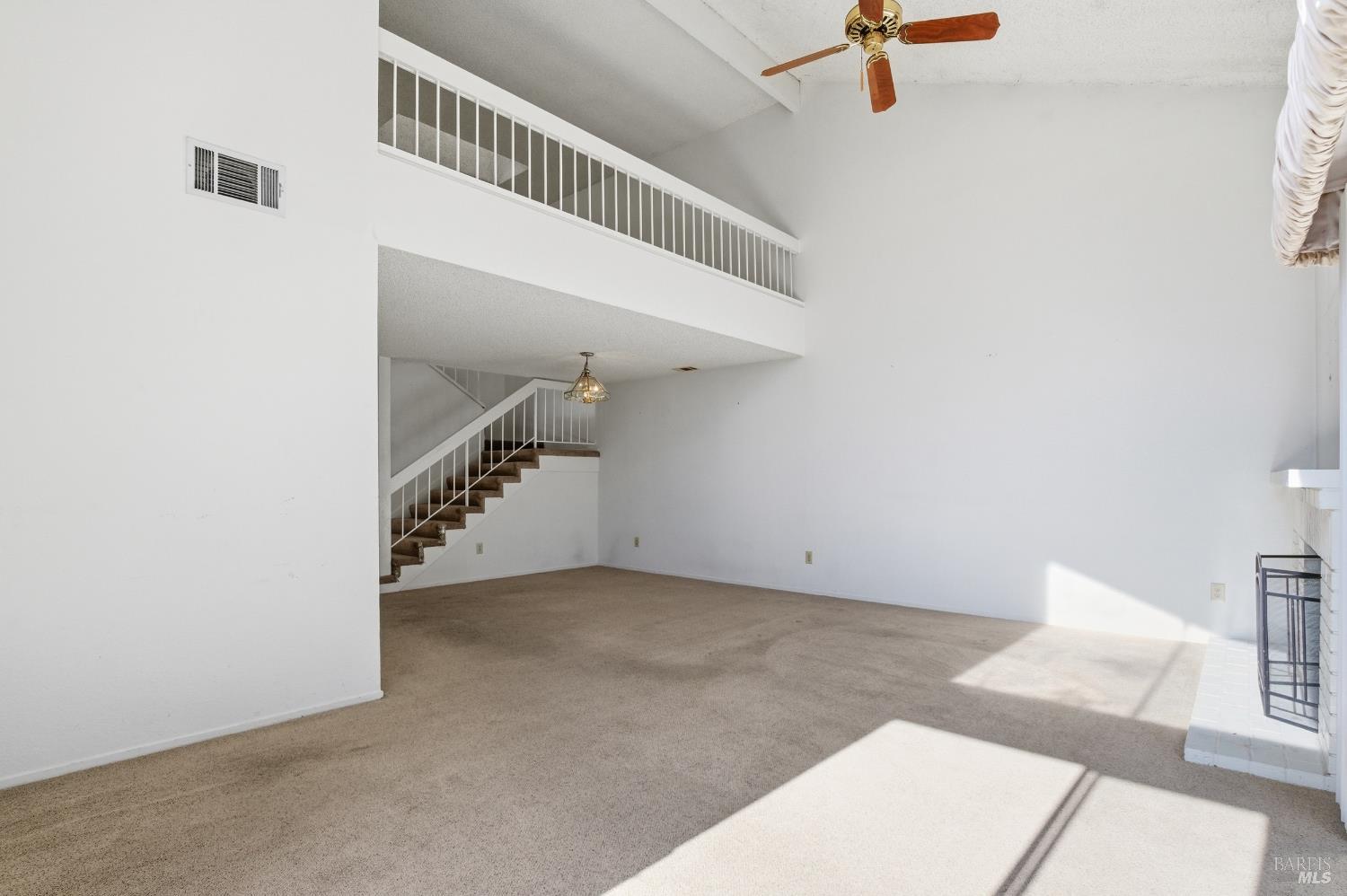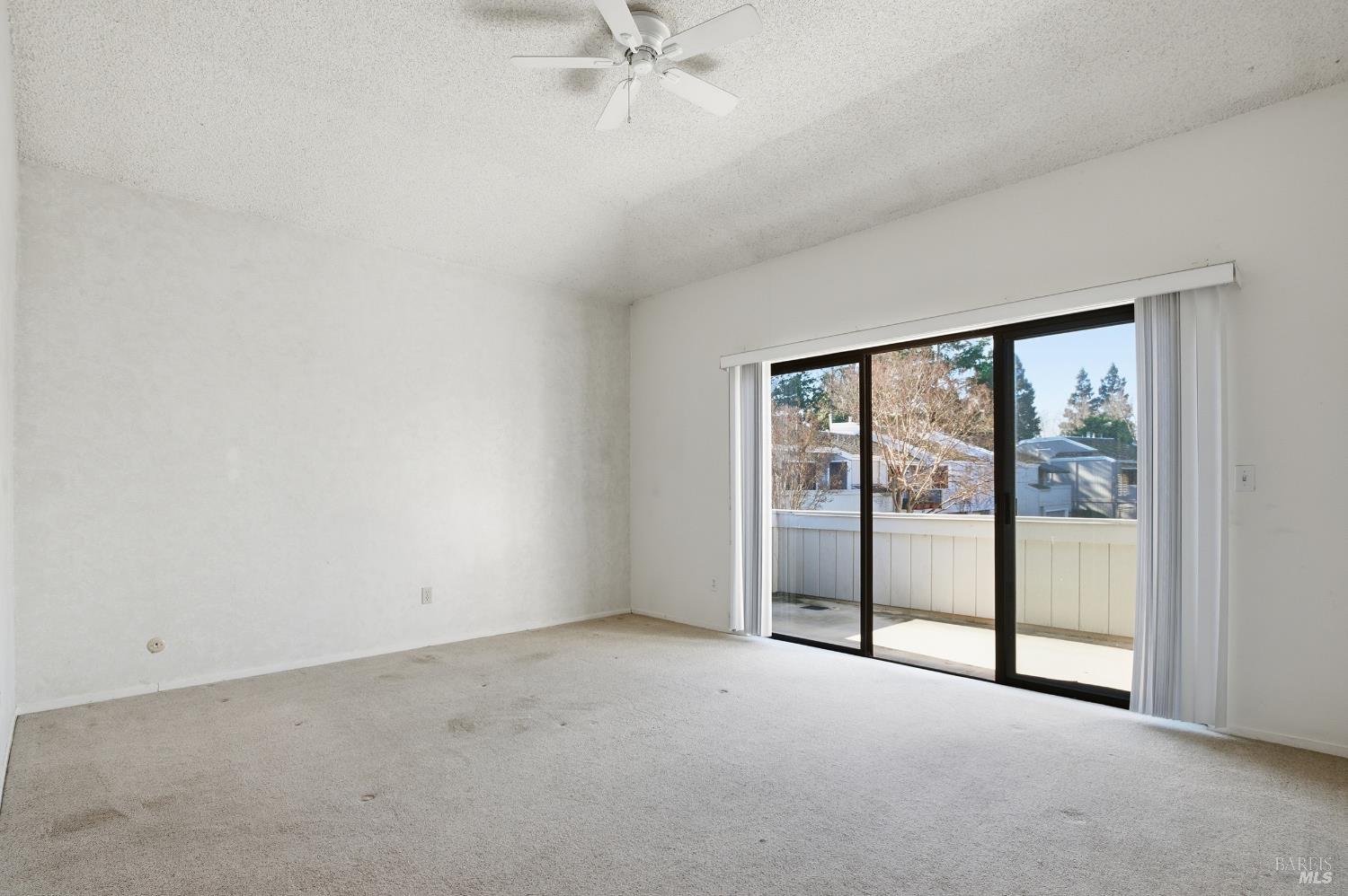 One of the best locations in the community, this home backs to open space and the Napa River Trail bordering the Napa River, offering privacy and a serene setting. The spacious backyard features pavers and enjoys morning sun, making it an ideal outdoor retreat. The home is ready for your personal touches and design vision. High ceilings allow for abundant natural light, while two sliding patio doors create an inviting indoor-outdoor flow perfect for entertaining. The fireplace presents an opportunity to install an energy-efficient gas insert, and the adjacent kitchen offers space for casual dining. Upstairs, a versatile loft is ideal for a home office or flex space, along with two bedrooms. The primary bedroom faces the front of the unit and is complemented by a charming balcony that captures the afternoon sun. Indoor laundry adds everyday convenience, and the rare two-car attached garage provides the extra parking and storage buyers appreciate. This planned unit development includes a community pool and is conveniently located near North Napa shopping and amenities.