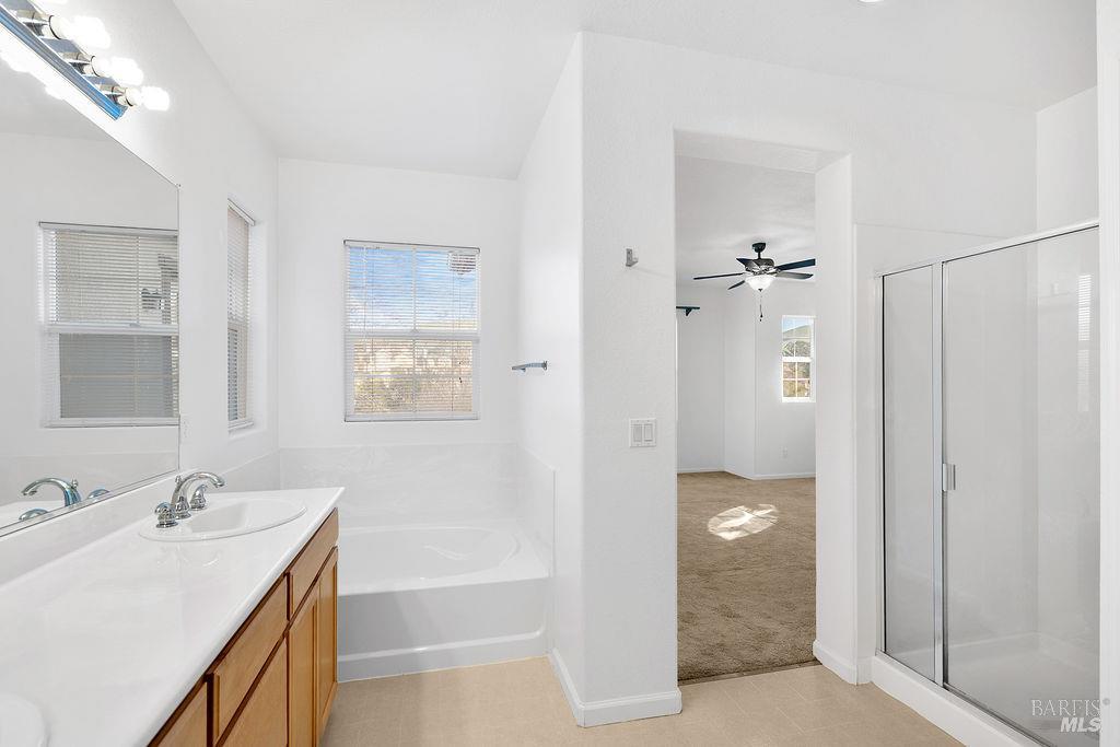 Welcome to Reflections in the desirable Hiddenbrooke community. This beautifully maintained 3-bedroom, 2.5-bath home is bright, inviting, and move-in ready. Tile flooring leads you into the light-filled living room featuring a gas fireplace and a stylish cutout ideal for an entertainment center or TV display. The open kitchen offers a gas cooktop, ample counter space, abundant cabinetry, and seamless flow to the dining area with direct access to the backyardperfect for everyday living and entertaining. Upstairs, you'll find a convenient laundry room and a spacious primary suite with a private balcony, dual sinks, a separate shower, a soaking tub, and a walk-in closet, along with two additional bedrooms. Additional highlights include a 2-car garage and a low-maintenance backyard showcasing scenic views of rolling hills and grazing cows. Enjoy the convenience of being within walking distance to J&O's Market & Deli, Pike's Fitness, The Mat Yoga Studio, and the Michelin-recognized Michael Warring restaurant.