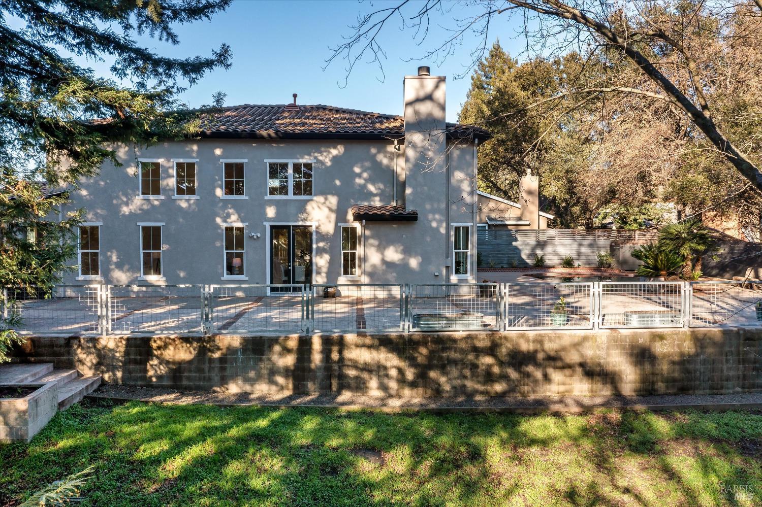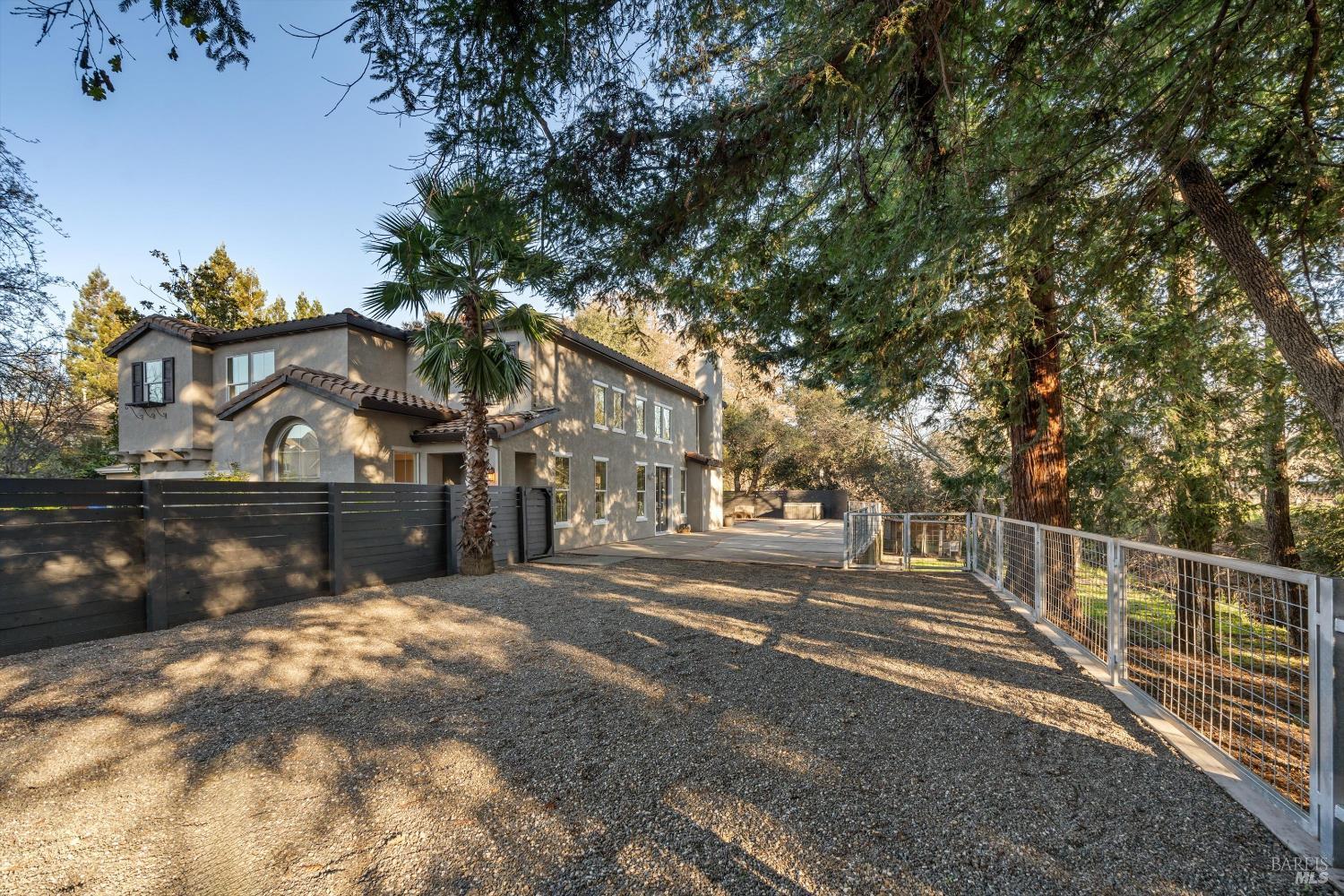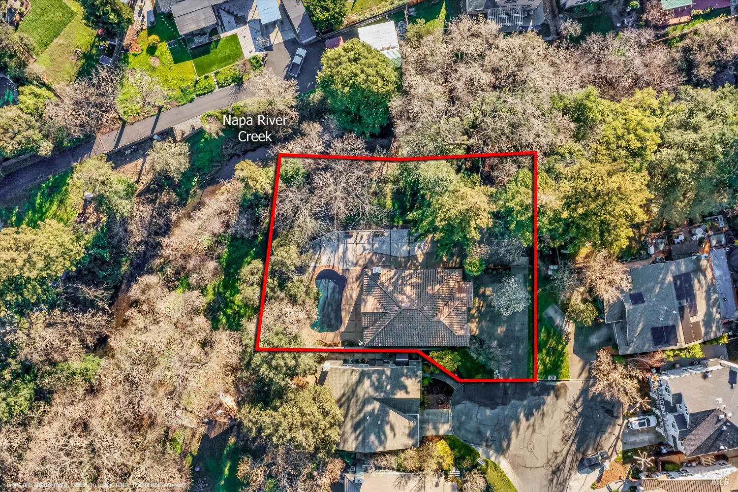 An inviting Napa sanctuary, this luminous retreat offers a rare blend of privacy, natural beauty, and effortless luxury, quietly tucked at the end of a peaceful cul-de-sac on nearly half an acre. Surrounded by mature trees and an extraordinary amount of usable outdoor space, the property feels immersed in nature while remaining comfortably within the city. The expansive residence spans approximately 3,132 square feet with 3 bedrooms, 2.5 bathrooms, plus a versatile additional room ideal for a home office or 4th bedroom. A dramatic formal living room with soaring two-story ceilings creates a joyful sense of arrival, filled with natural light that makes the space feel open, uplifting, and welcoming.The kitchen and family room form the heart of the home, thoughtfully designed by professional chefs to support both relaxed daily living and memorable gatherings. A generous central island, perfect for hands on projects like ravioli production, invites connection and creativity, with ample room for shared cooking and conversation. The great room opens directly to the backyard with views of the pool, creating seamless indoor outdoor flow and an easy rhythm between home and garden. Upstairs, a secondary family room provides flexible living space, while the expansive primary suite offers a serene private retreat. Bathed in natural light, the suite features a spacious sitting area, oversized walk-in closet, and a luxurious en-suite bath, an ideal place to unwind and recharge. Outdoors, the property unfolds like a private garden oasis with multiple environments to enjoy. Lounge by the pool, gather on the patio, play on grassy lawns, or wander down to the tranquil creekside setting along Napa River Creek. Mature redwood trees frame a meadow like setting, a chicken coup, and natural spaces perfect for relaxing, reading, or simply enjoying the sights and sounds of nature. With space for recreation, RV or additional parking, and a three-car garage, this exceptional Napa property offers a rare opportunity to live surrounded by beauty, light, and nature. without sacrificing comfort or convenience.