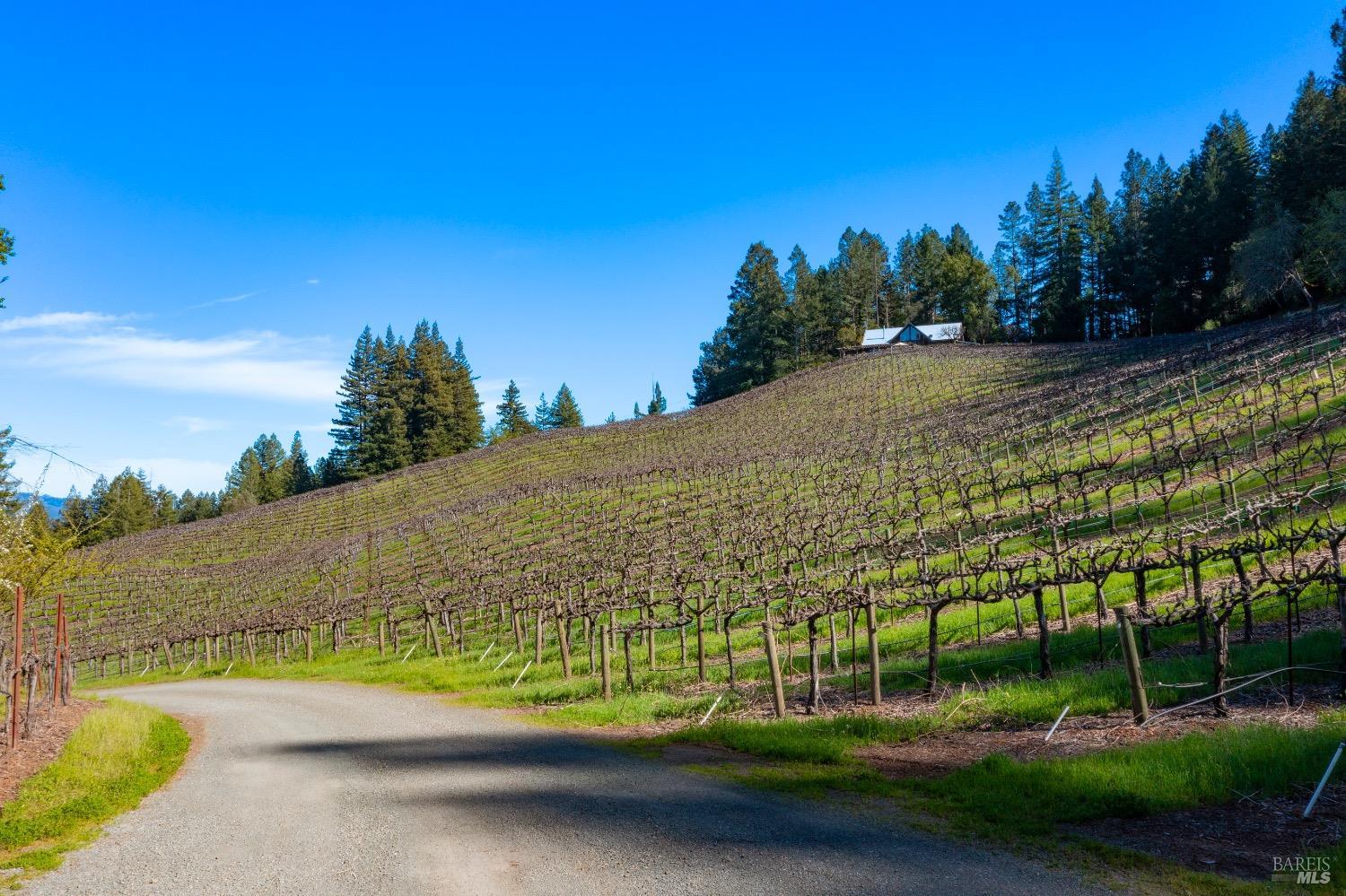 Nestled in Sonoma County's prestigious Knights Valley AVA, Pelkan Ranch spans 66.7 acres just six miles from downtown Calistoga. Acquired by John and Carolyn Pelkan in 1985, the estate features 21.31 acres of meticulously planted vineyards known for world-class viticulture. Set against Mount St. Helena, it shares a prized ridgeline with Peter Michael Estate Vineyard. At elevations up to 950 feet, vines thrive in iron-rich volcanic soils, producing bold, expressive fruit. Pelkan Ranch grapes appear in acclaimed wines from Chiron, Keplinger, Carlisle, and Trinitas, offering intense red berry, bramble, plum, leather, graphite, and mineral notes. The property includes a charming guest or manager's home and a flat building pad with extraordinarily expansive views. Surrounded by boutique wineries, rolling vineyards, and rural estates, Pelkan Ranch is a rare opportunity for vintners or collectors to own a piece of California wine country heritage.